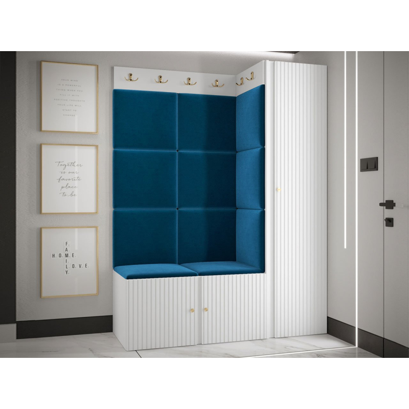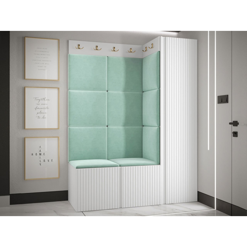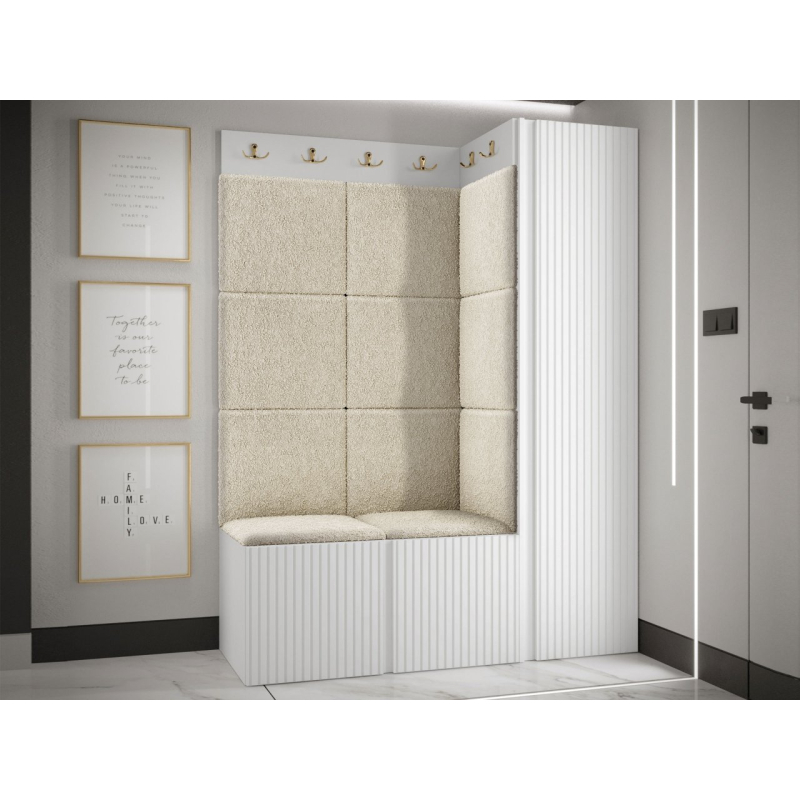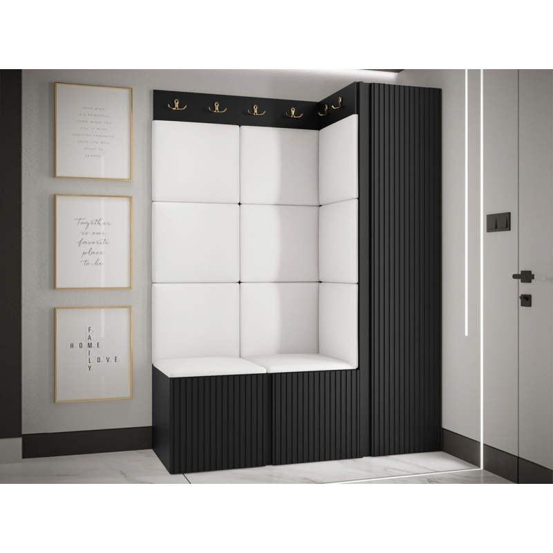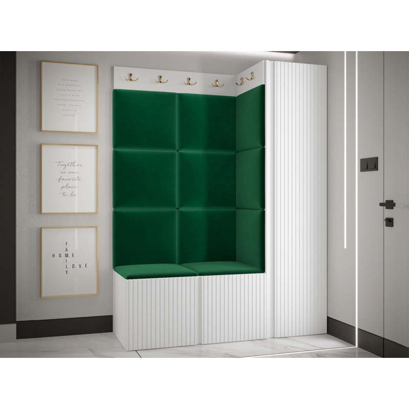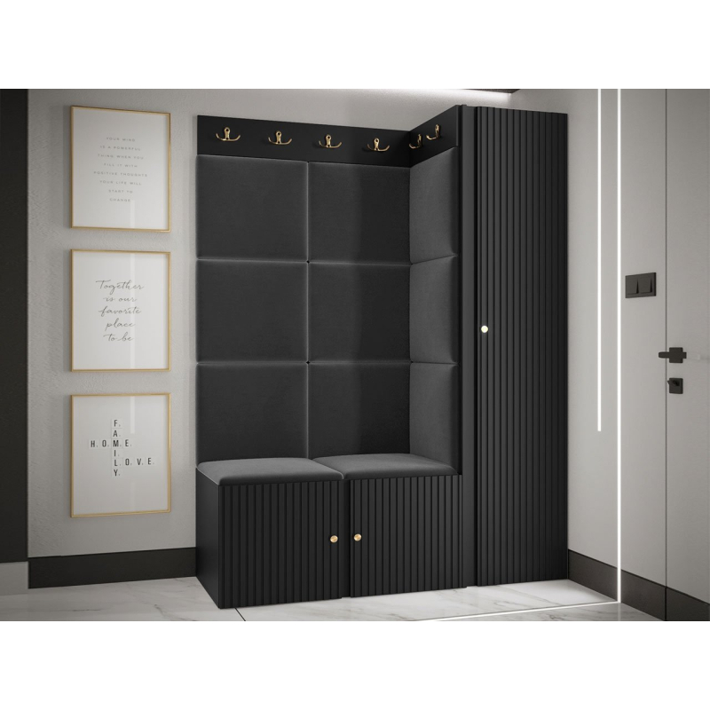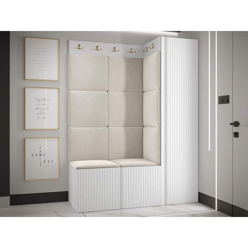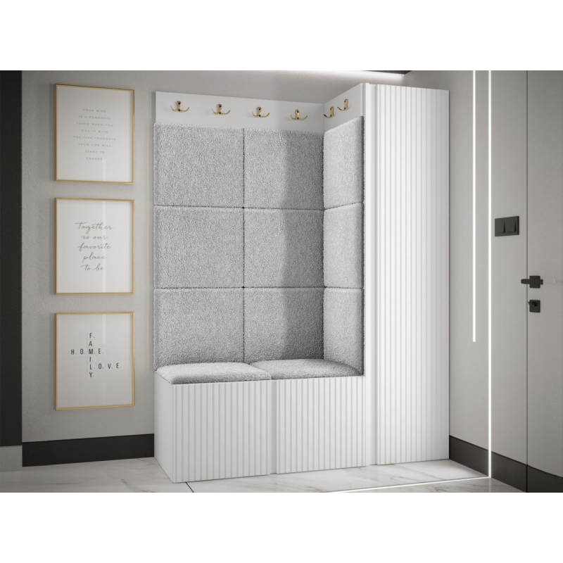 Towiro Slim IX je ideální volbou pro moderní předsíň s posezením. Dokonale zapadne do glamour a loftových aranžmá. Součástí sady je pološatní skříň, botník, věšáky na oblečení a krásný čalouněný panel dostupný v mnoha barvách, který dodá interiéru jedinečnou atmosféru.