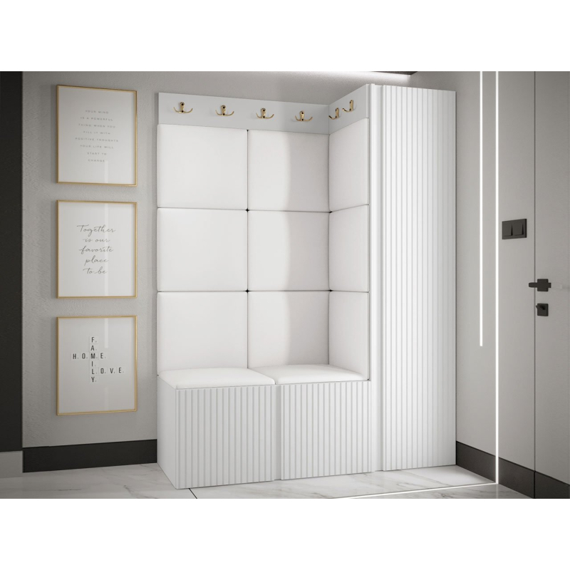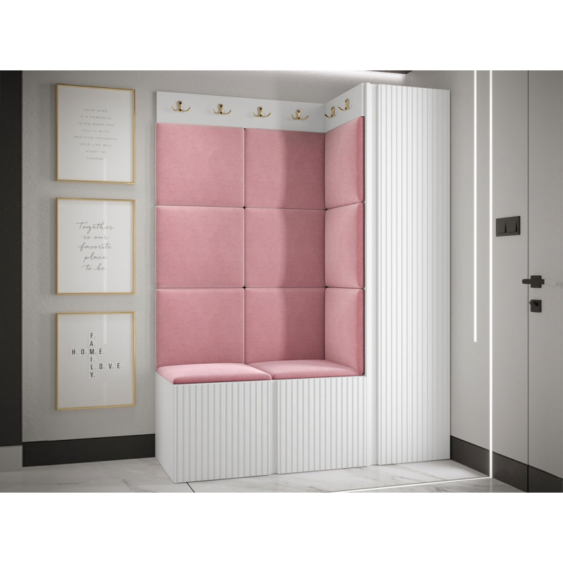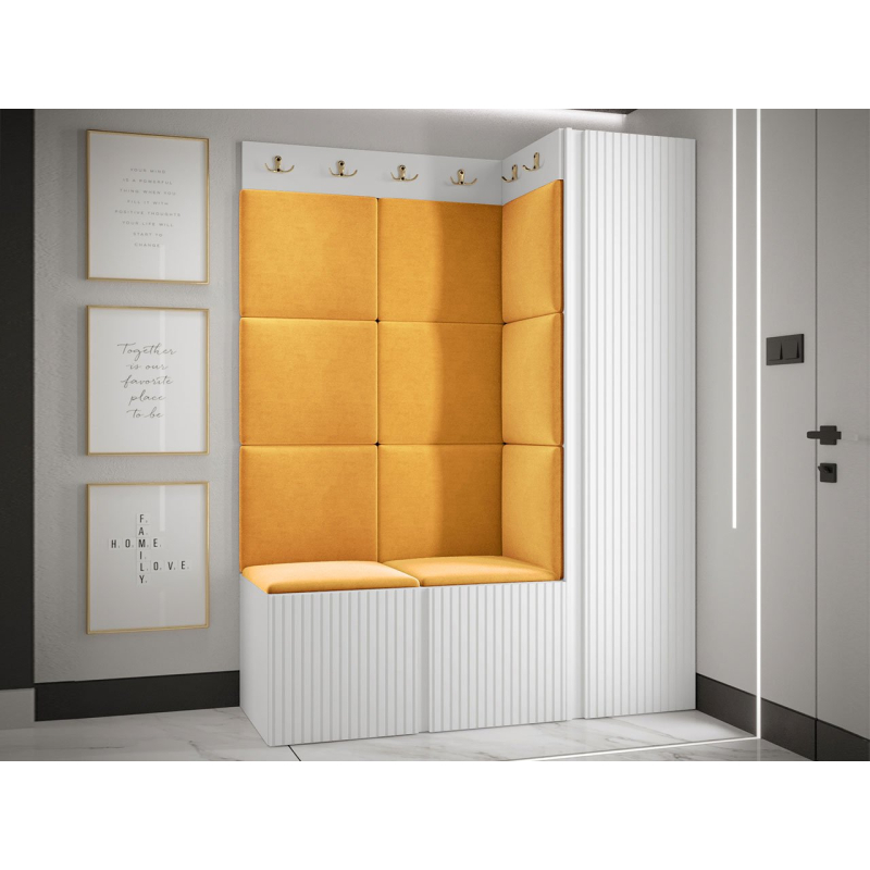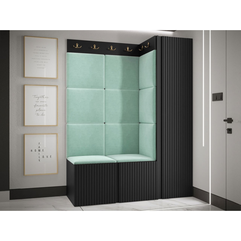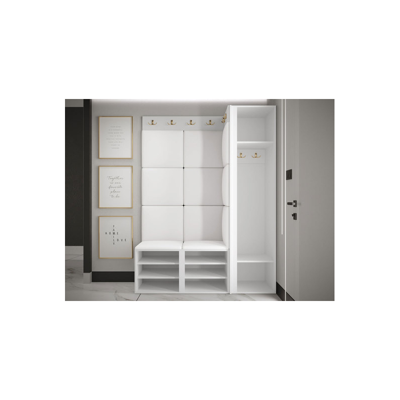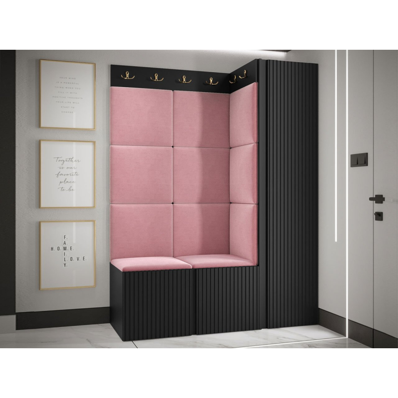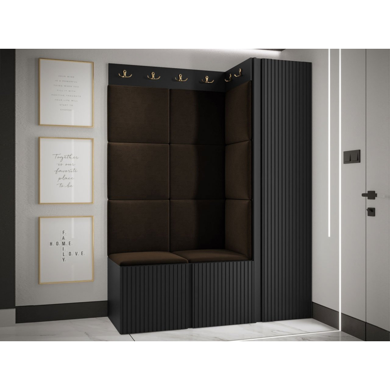 Towiro Slim IX je ideální volbou pro moderní předsíň s posezením. Dokonale zapadne do glamour a loftových aranžmá. Součástí sady je pološatní skříň, botník, věšáky na oblečení a krásný čalouněný panel dostupný v mnoha barvách, který dodá interiéru jedinečnou atmosféru.