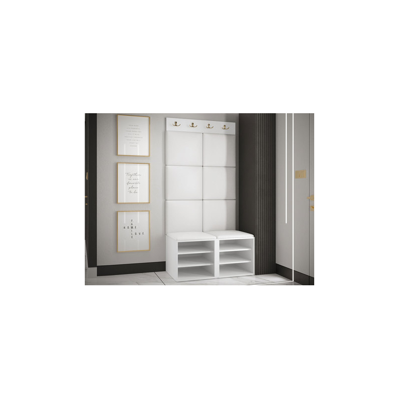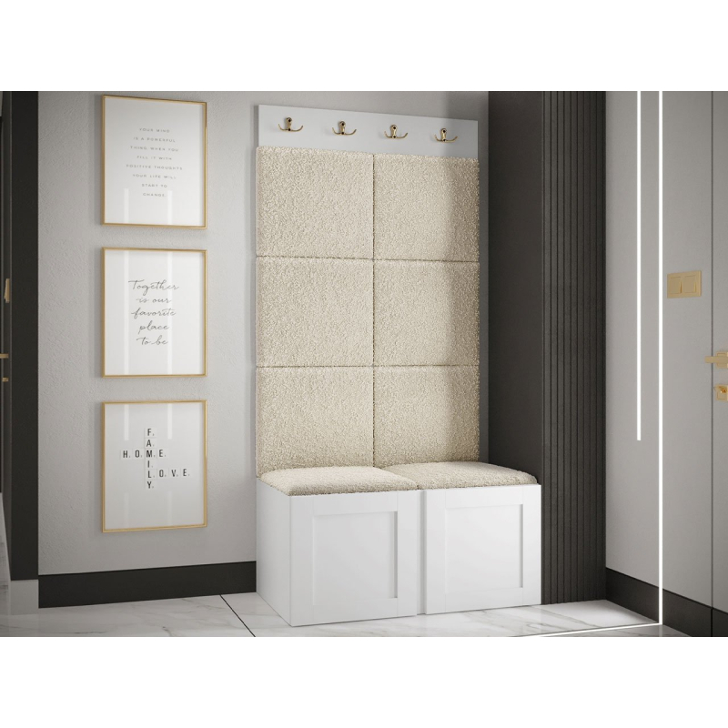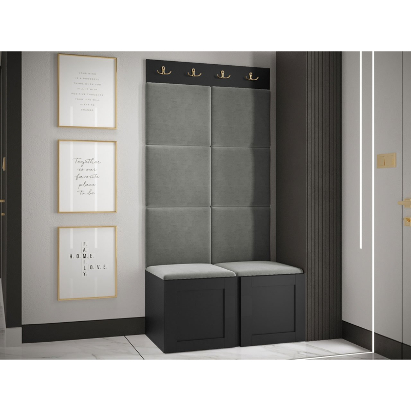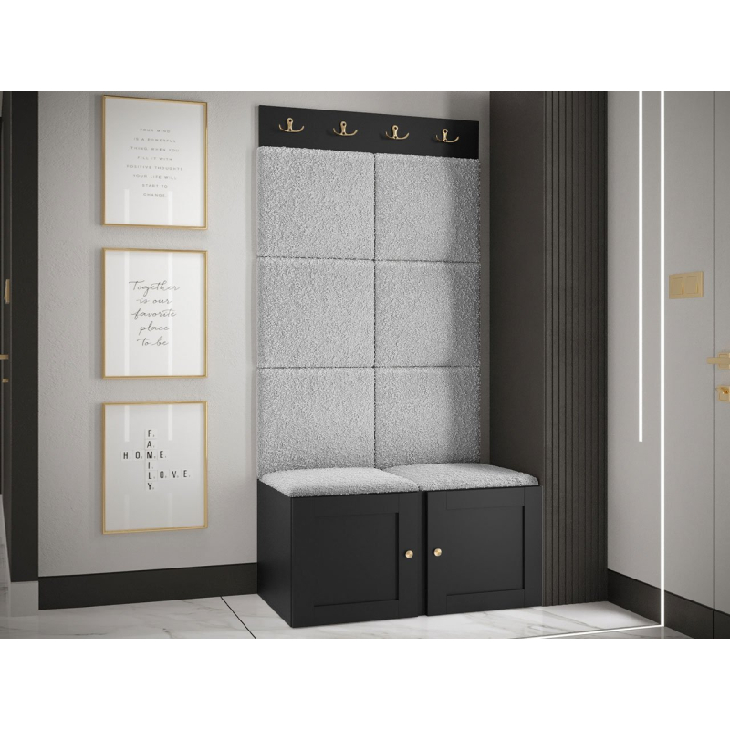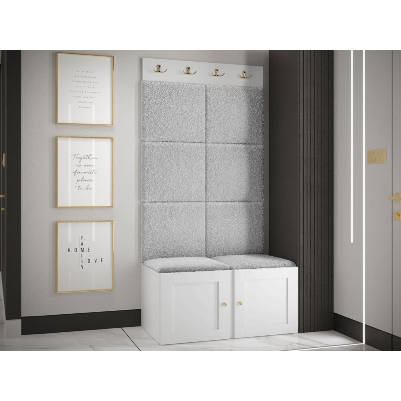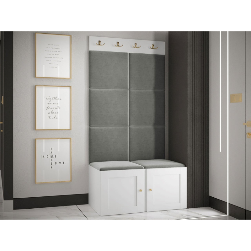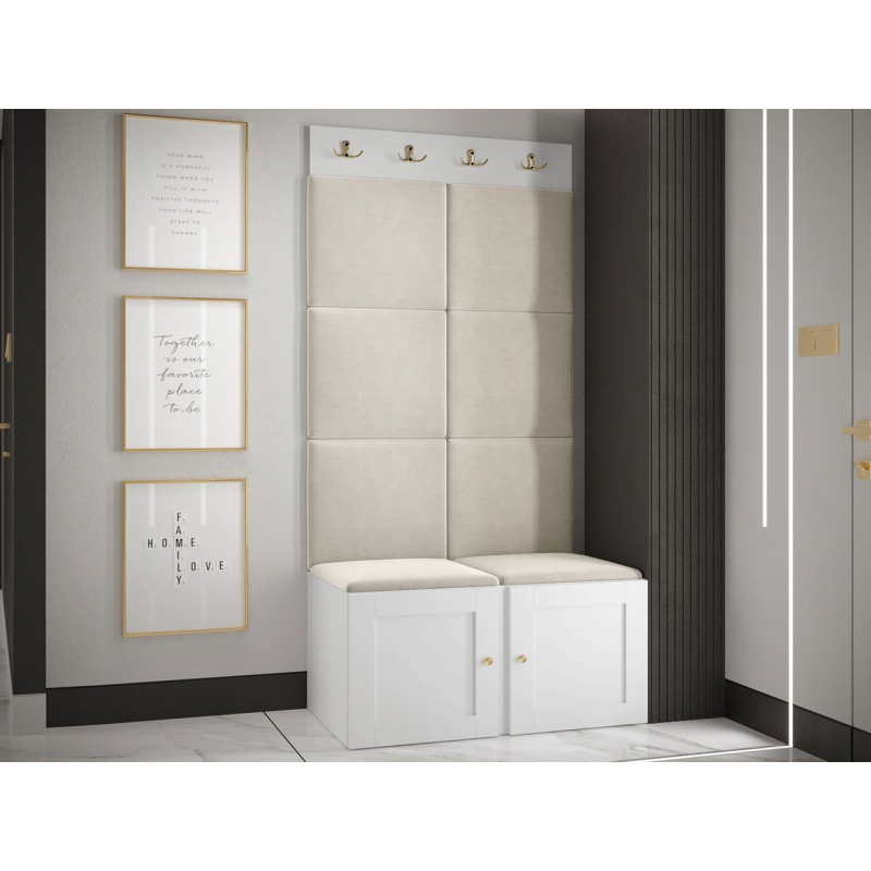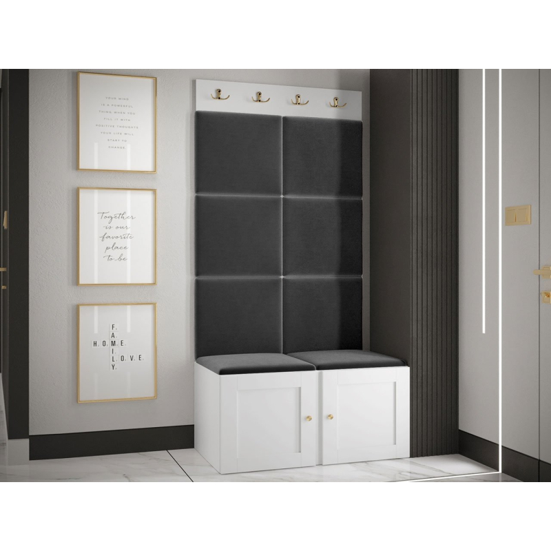 Funkční předsíň je mimořádně důležitou součástí našeho bytu. Praktická předsíňová sestava Terospito IV s čalouněnými panely, věšáky a skříňkou na boty vám umožní uložit boty a svrchní oblečení. Díky zajímavým čelům a elegantním doplňkům obohatí interiér a potěší oči členů domácnosti i hostů.