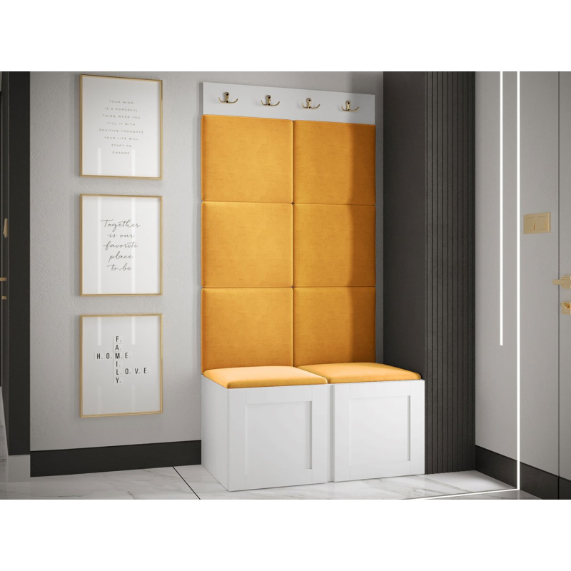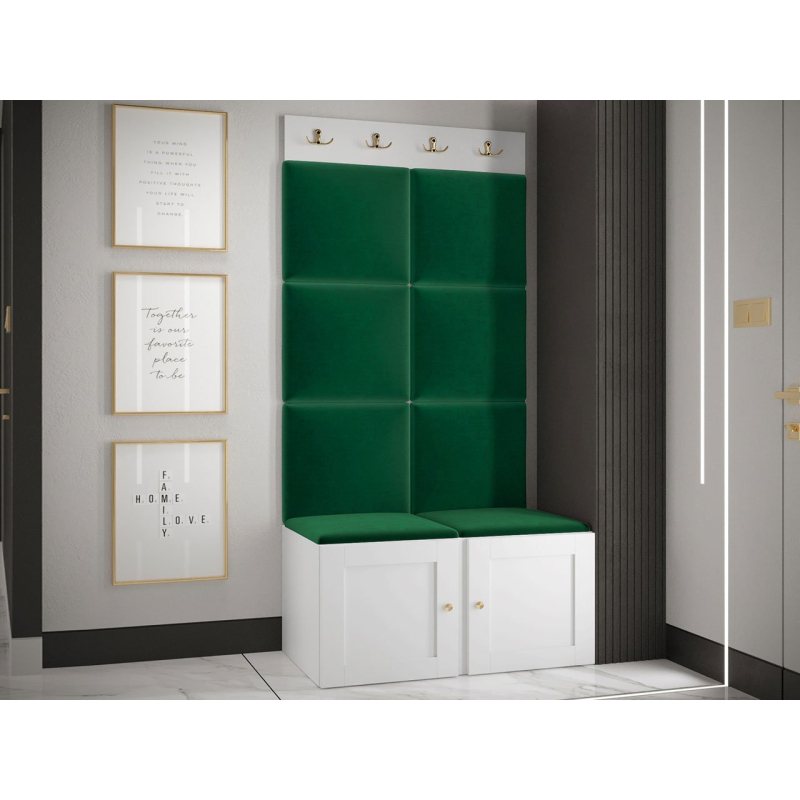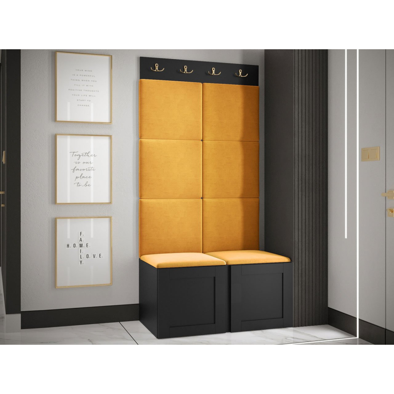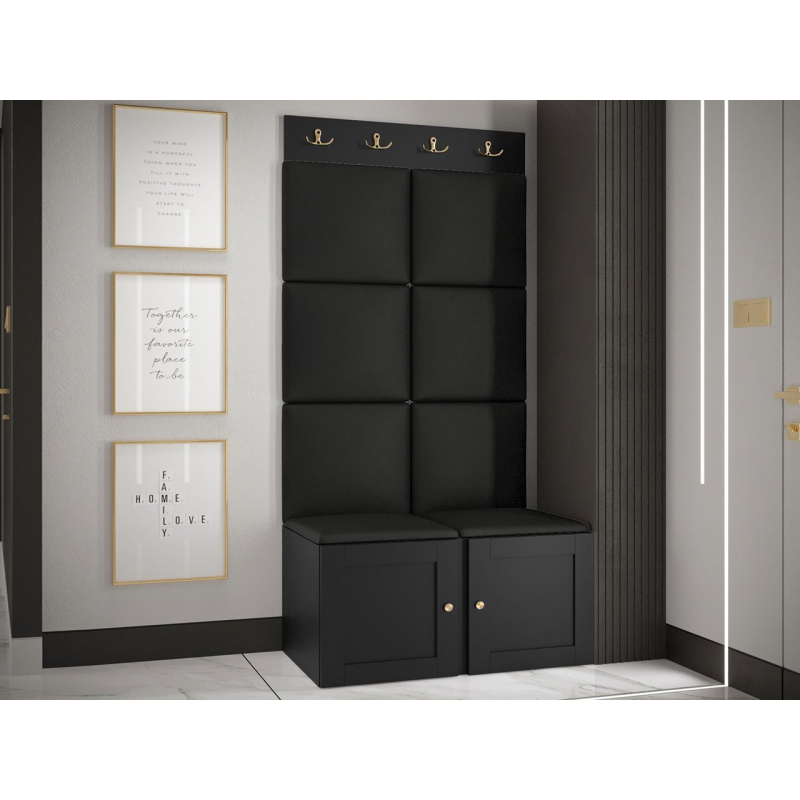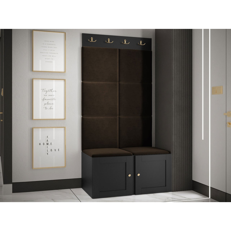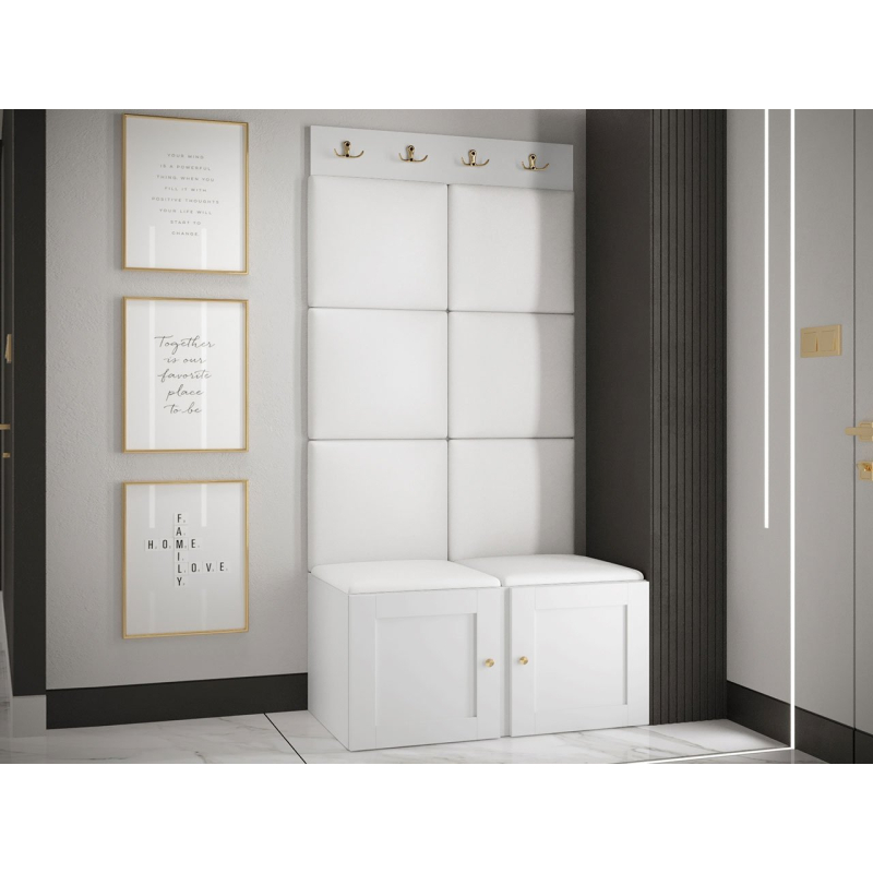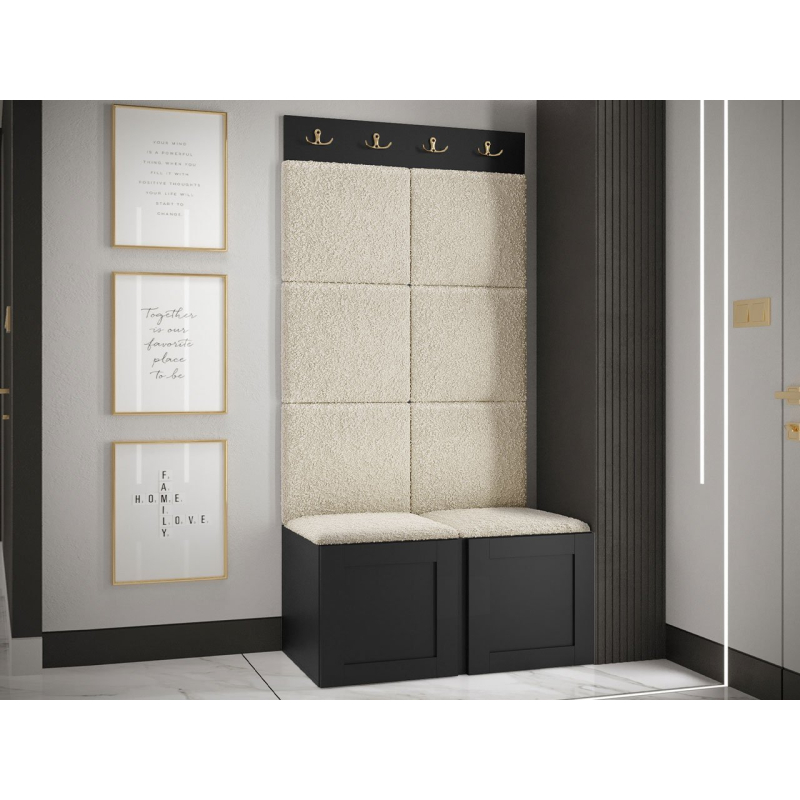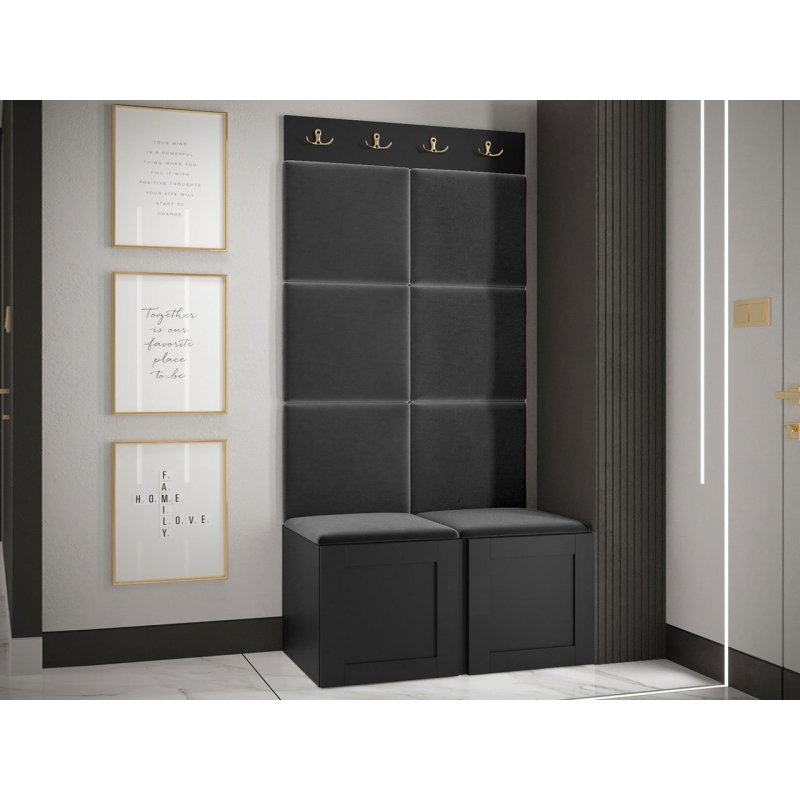 Funkční předsíň je mimořádně důležitou součástí našeho bytu. Praktická předsíňová sestava Terospito IV s čalouněnými panely, věšáky a skříňkou na boty vám umožní uložit boty a svrchní oblečení. Díky zajímavým čelům a elegantním doplňkům obohatí interiér a potěší oči členů domácnosti i hostů.