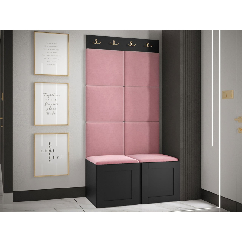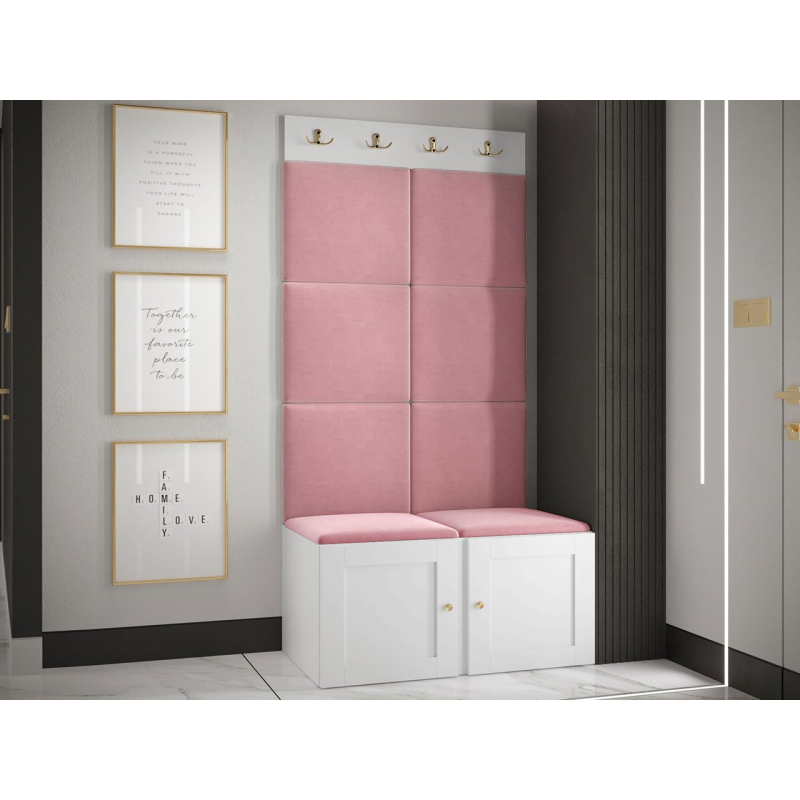 Mezi nepochybné výhody této varianty patří čalouněné panely, které mají dekorativní funkci, ale zároveň chrání stěny před poškozením a nečistotami. Toto je obzvláště důležité, když jsou v našem domě děti. Skříň je vybavena také věšáky, které jsou ideálním základem pro svrchní oblečení. Spodní část tohoto modelu je skříňka na boty. Všechny prvky nábytku jsou vyrobeny z kvalitních materiálů, které zajišťují odolnost a estetický vzhled.