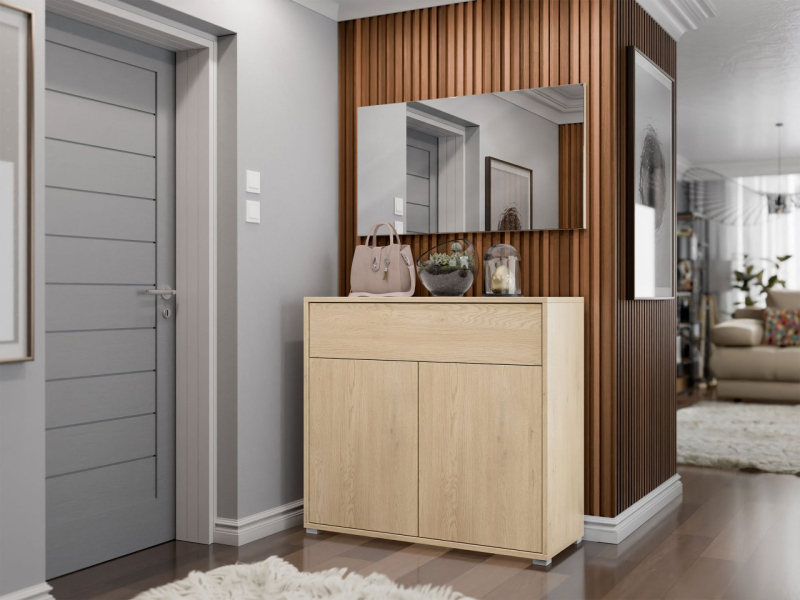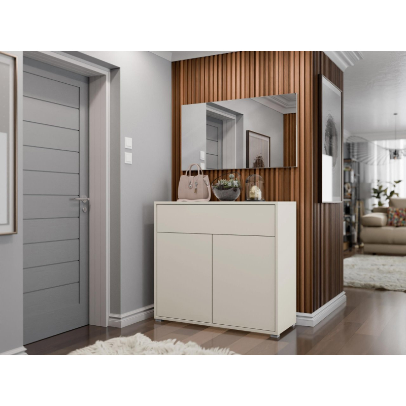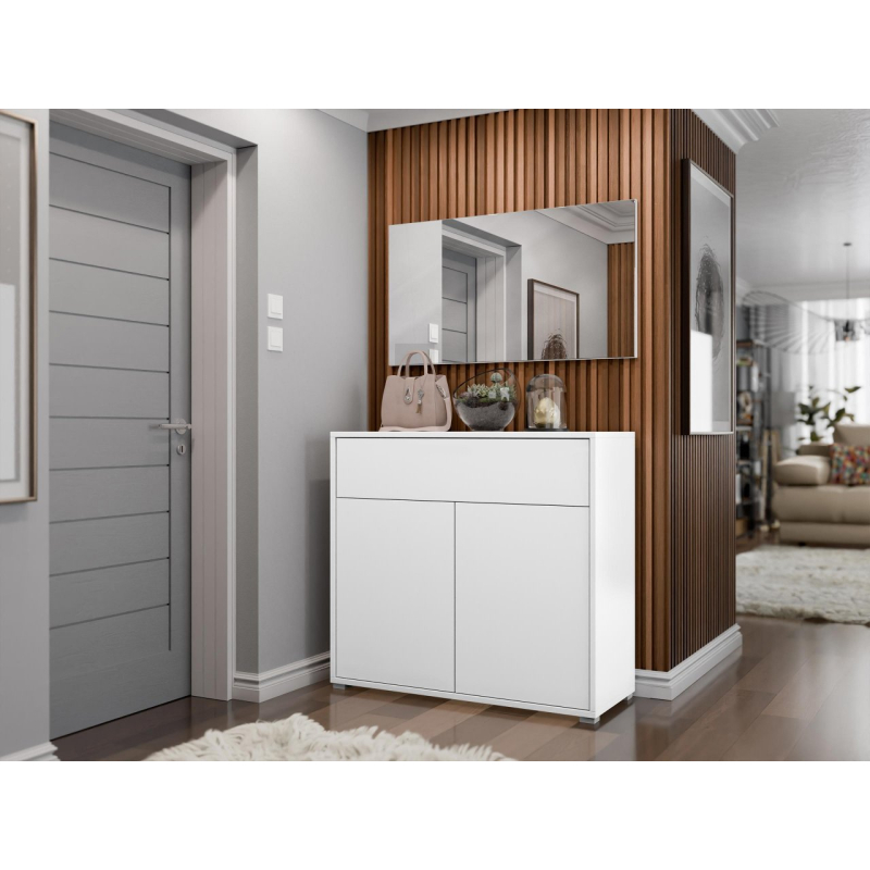 Sestava nábytku do malé předsíně Alekto VI nabízí moderní design a vysokou funkčnost. Souprava, která se skládá z prostorné komody a zrcadla, je harmonickým duetem. Její popularita je způsobena minimalistickým vzhledem v kombinaci s nejmodernějšími barvami. V takové rafinované verzi vypadá síňový nábytek skvěle ve spojení s jakoukoli dekorací stěn a vzorem podlahy.