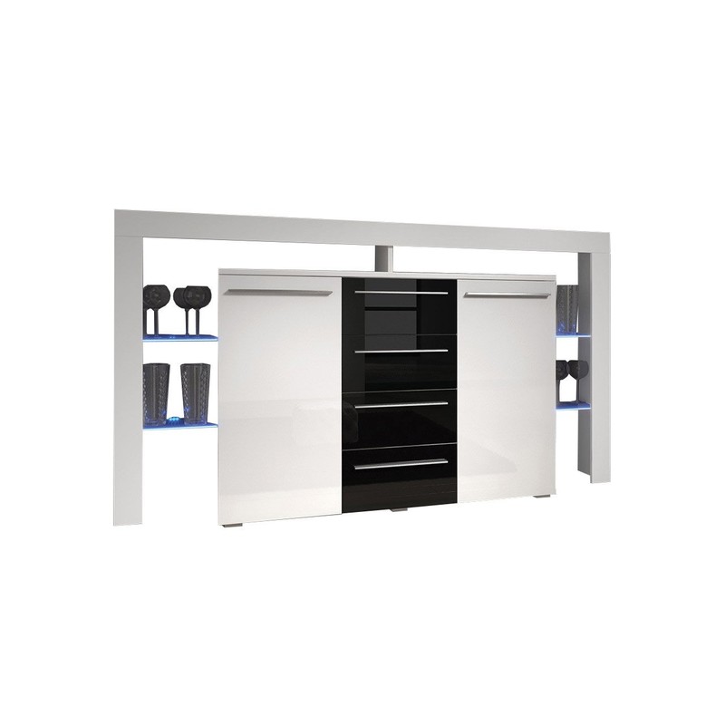 Komoda Ravid Plus jistě zaujme každého. V zasklených částech mohou být uloženy knihy nebo jiné dekorace. LED osvětlení zaručeně dodá neobvyklý efekt. Pro lepší přizpůsobení individuálním potřebám zákazníka je komoda k dispozici ve 4 barvách, takže dokonale vyhovuje každému vkusu. Je třeba zdůraznit, že kombinace matných nábytkových skříněk a lesklých předních částí dává komodě osobitý styl. Povrch laminované desky je odolný proti poškrábání.