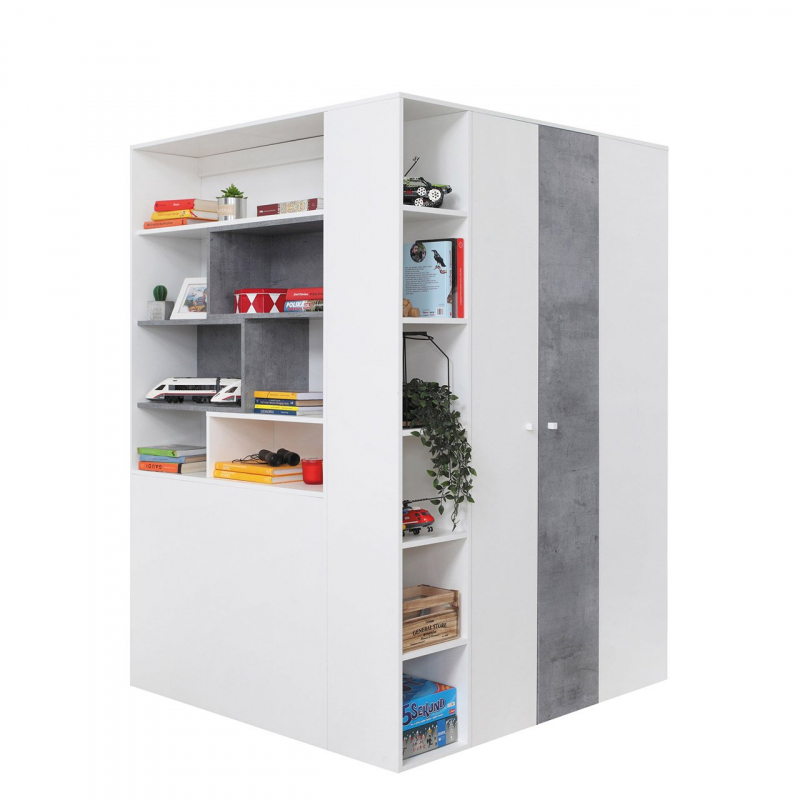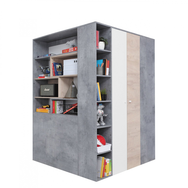Z vnější strany má nábytek řadu polic na knihy, elektroniku a dekorace. Dostupné barevné kombinace dokonale ladí s vybavením chlapeckého i dívčího pokoje. Vzhledem k většímu množství úložného prostoru se rohová šatní skříň doporučuje také jako sourozenecký nábytek.