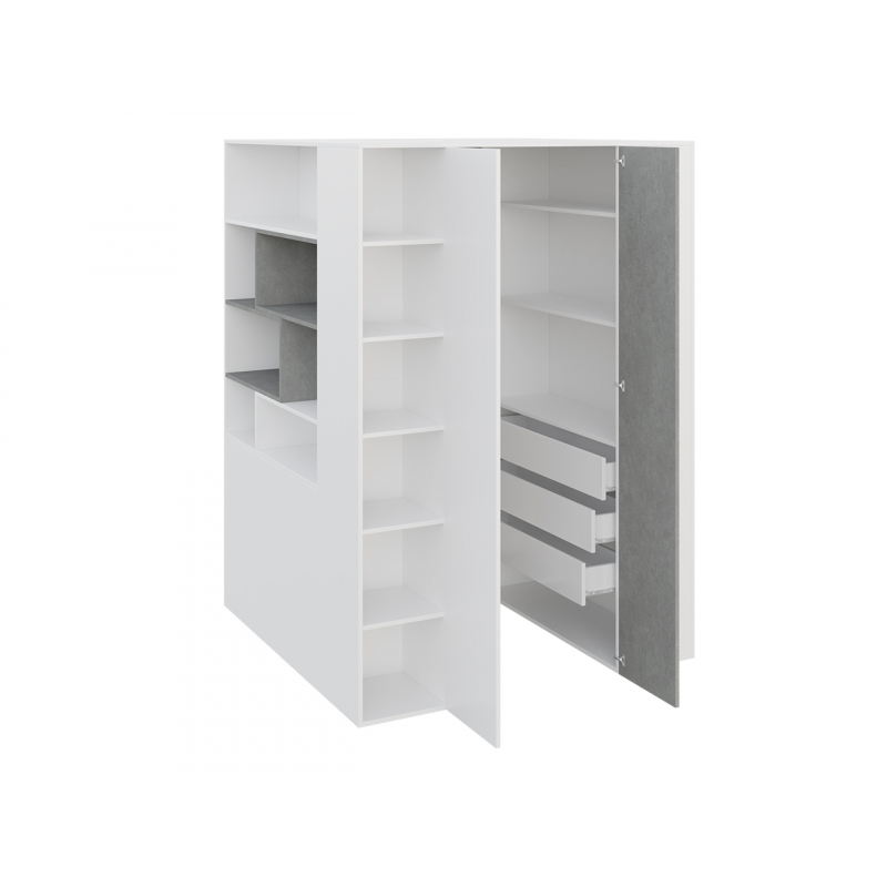 Základem uspořádání šatní skříně pro teenagera a mladší dítě je prostorná, ale maximálně funkční rohová šatní skříň Pardwa. Tento víceúčelový kus nábytku umožňuje shromáždit všechny potřebné úložné předměty na jednom místě.
