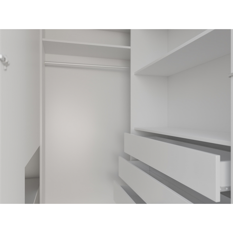 Uvnitř se nacházejí prostorné police na oblečení, tyče na ramínka a hluboké zásuvky. Šatní skříň pro mládež má také otevřený prostor, kde si dítě může uspořádat sportovní vybavení, batoh a větší doplňky.