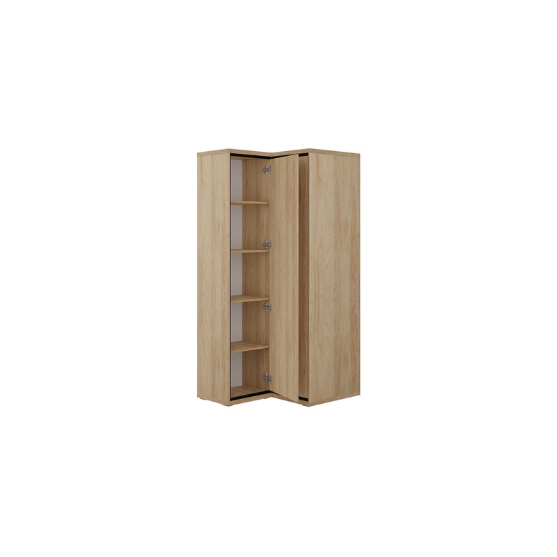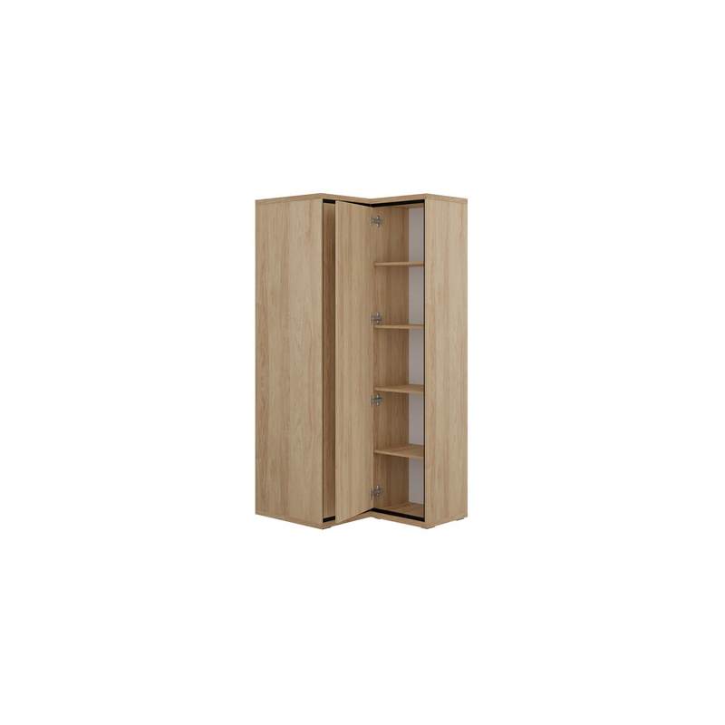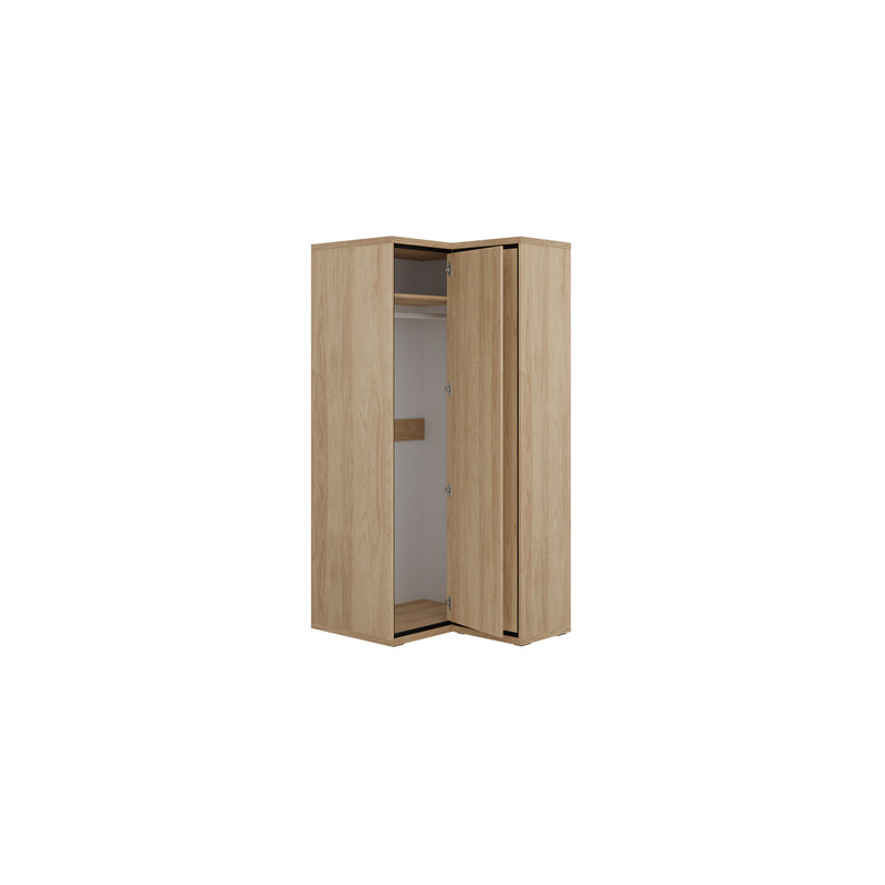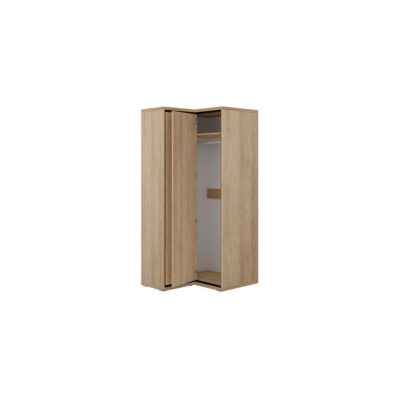 Rohová šatní skříň Sarged SR14 je vyrobena z pevných materiálů a její barvy se hodí téměř ke každému aranžmá.