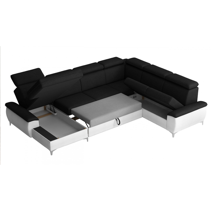 Mezi výhody rohové sedačky patří polohovatelná opěrka hlavy na opěradle a funkce spánku. Po rozložení nabízí rohová sedačka spací plochu 275 cm x 128 cm.
