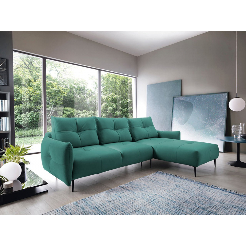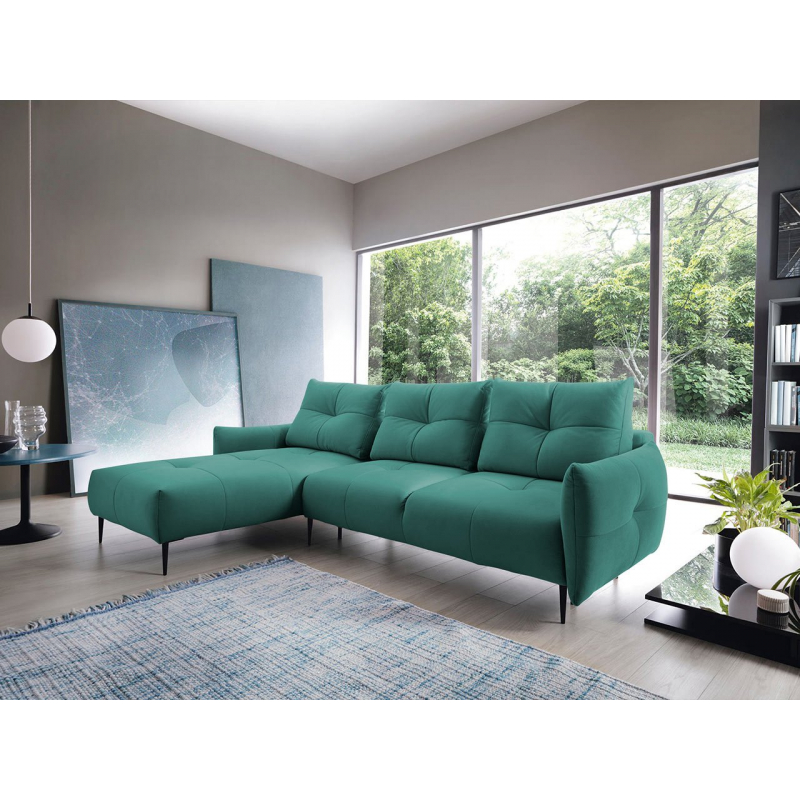 Rohová sedačka Surmia je dokonalým modelem do současných obýváků, které se zaměřují na moderní design. Rohová sedačka Surmia má lehkou a elegantní konstrukci, jejímž základem jsou vysoké kovové nohy. Ozdobným detailem rohové sedačky je hluboké prošívání na opěradle, sedáku a opěrkách rukou.