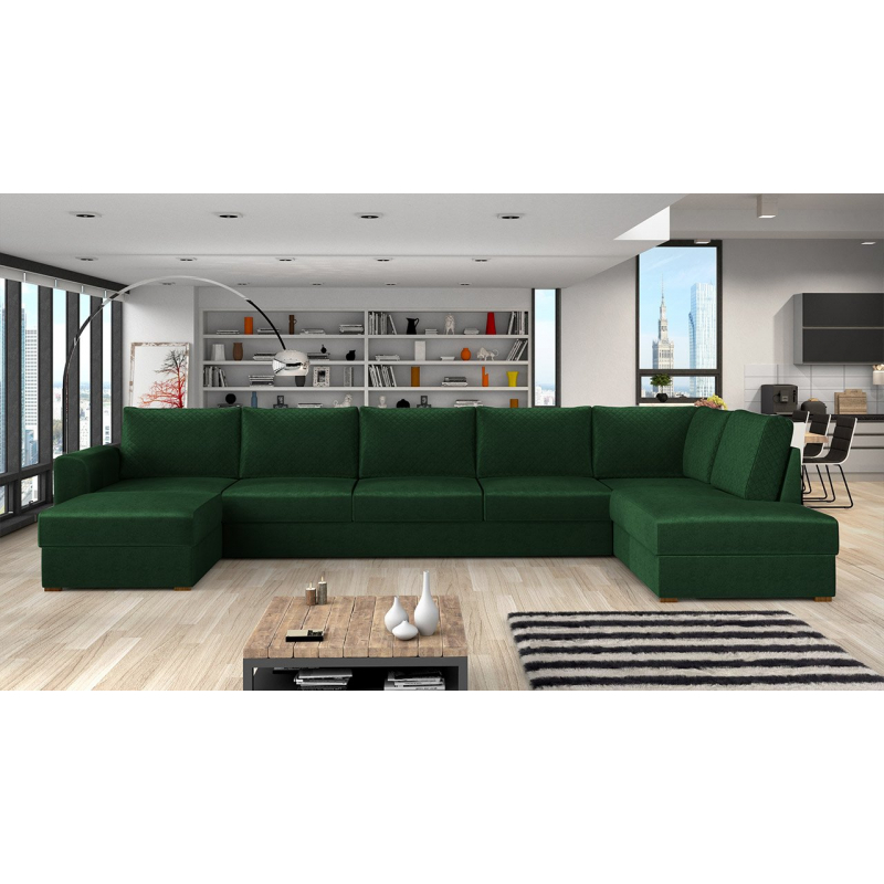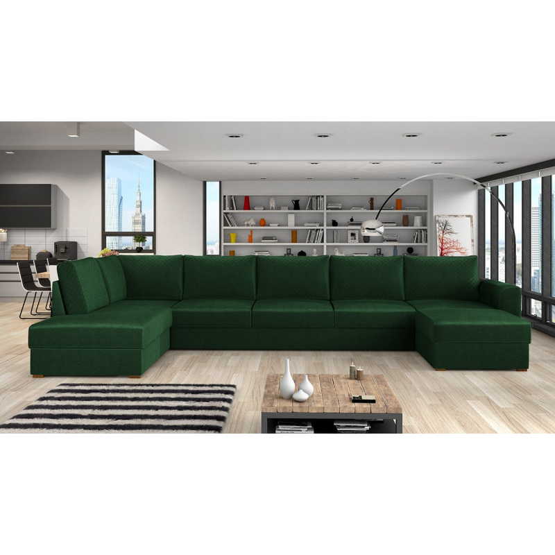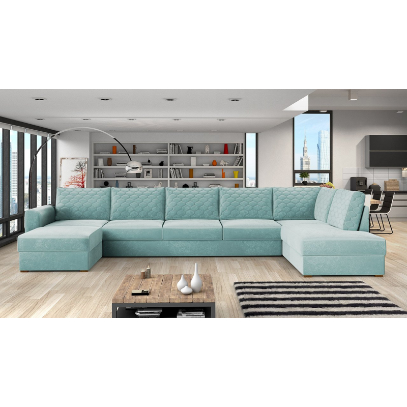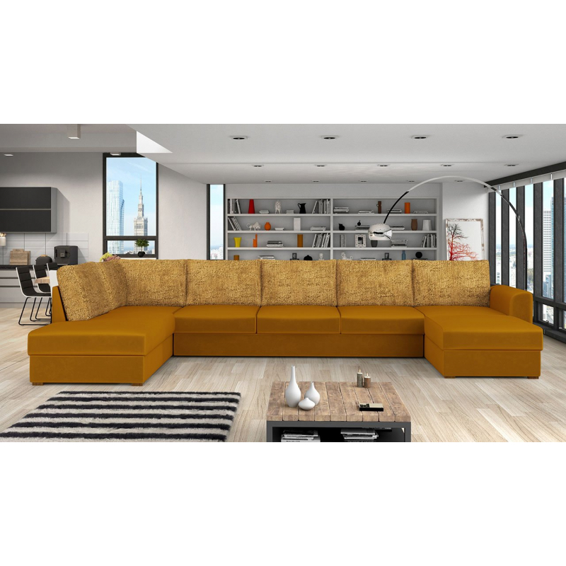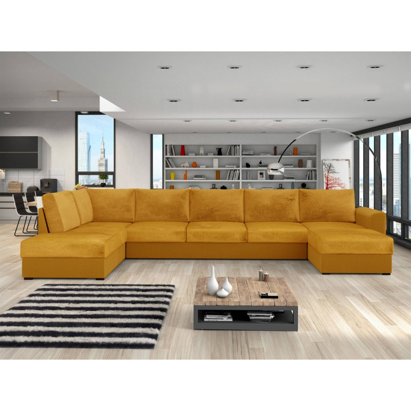 Hledáte velkou a pohodlnou sedačku, která bude ozdobou vašeho obývacího pokoje? Pokud ANO, pak máme pro vás ideální model – rohovou sedačku Szafran Large Premium! Prezentovaná sedačka má design ve tvaru písmene „U“ a nabízí spoustu místa k sezení. Na sedačce si můžete odpočinout i vleže, protože má dvě ležící plochy. Pocit komfortu dodávají použité komponenty. Sedák je vyroben z hrubé pěny T2844 a vlnitých pružin a opěradlo je tvořeno 7 pohyblivými polštáři, které zároveň slouží jako dekorační prvek. Je také třeba dodat, že sedačka má rozkládací funkci. Po rozložení je její plocha na spaní 141 cm, což zajišťuje pohodlný spánek pro dvě osoby. Náhradní ložní prádlo můžete uložit do dvou úložných prostorů umístěných pod sedačkou. Rohová rozkládací sedačka Szafran Large Premium je jedinečný model, neboť na její výrobu byly použity ty nejkvalitnější materiály. Sledují aktuální trendy interiérového designu a jsou příjemné na dotek.