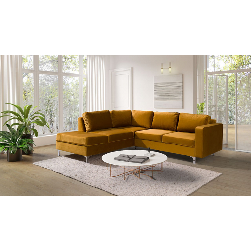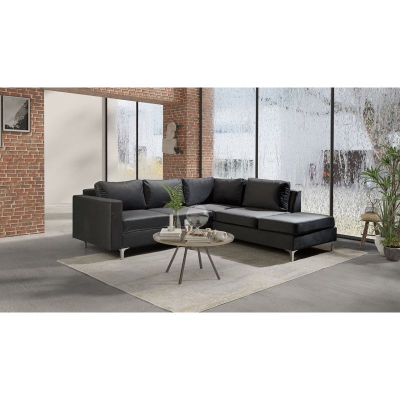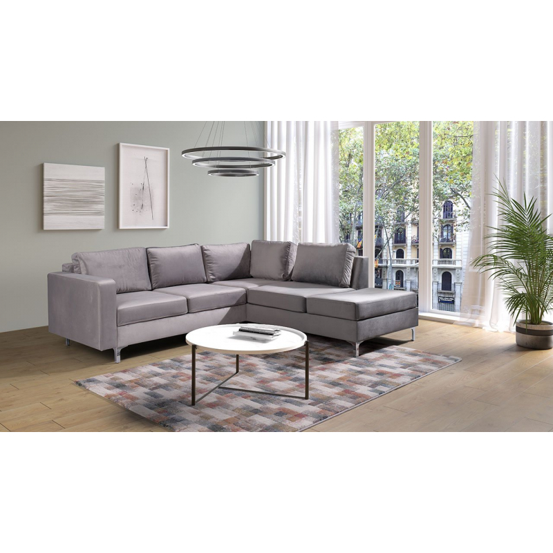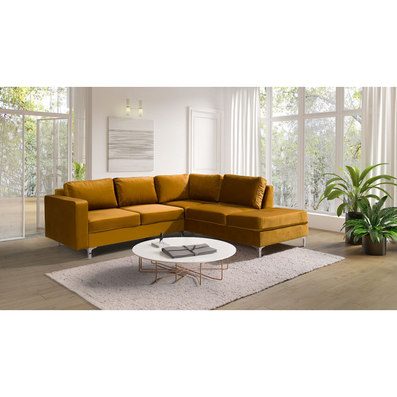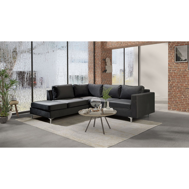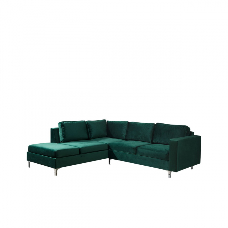 Rohová pohovka Nemezy Velvet je návrh pro lidi, kteří hledají elegantní sedačku v módní sametové tkanině. Tento druh materiálu je na omak velmi příjemný a měkký. Kromě toho má jemný lesk. Použitá látka dokonale zapadá do minimalistické podoby nábytku a kovových nohou. Celý vypadá s nádechem elegance.