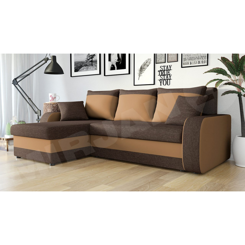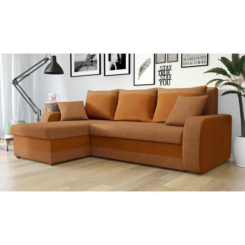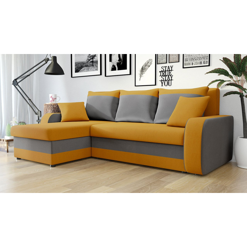 Rohová sedačka Dalmir Lux je vyrobena v zajímavých barvách a s kvalitními komponenty. Rohová sedačka má 3 velké a 2 malé polštáře. Díky rozkládací funkci se nemusíte bát, kde strávíte noc. Prostorný box vám umožní uložit náhradní soupravu ložního prádla. Sedačka je vyrobena jako písmeno L a má pohodlnou lenošku na odpolední spánek.