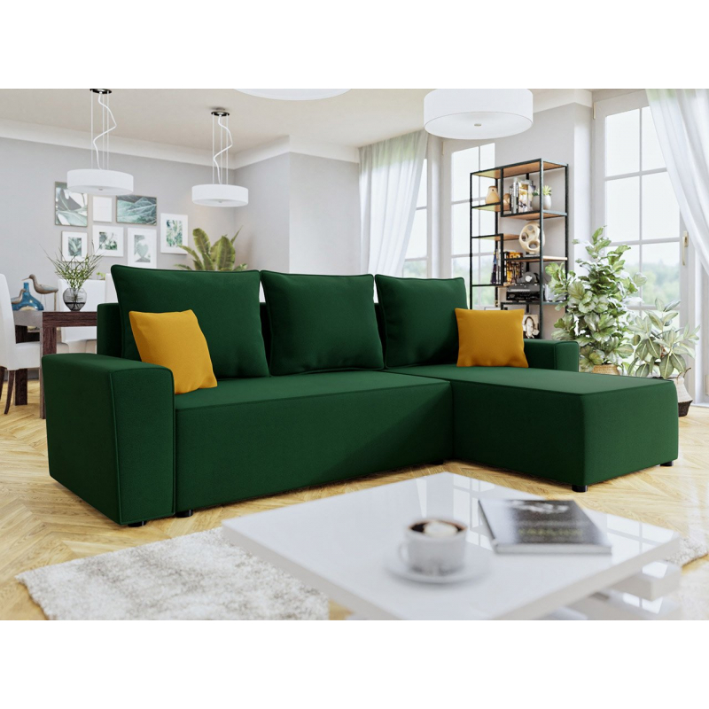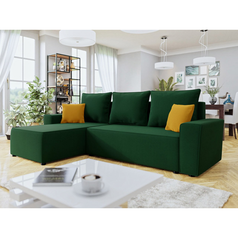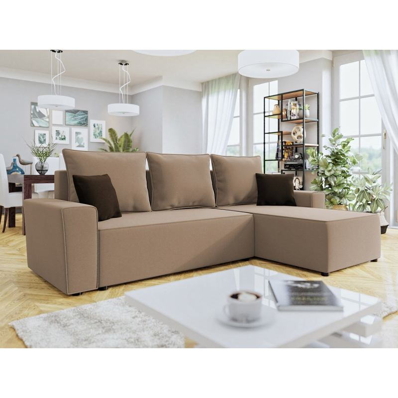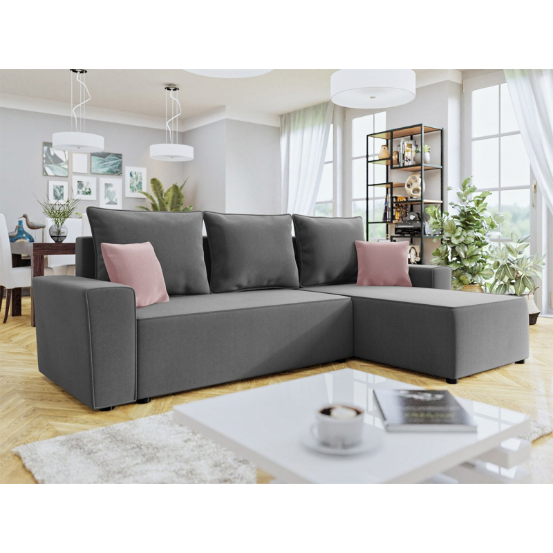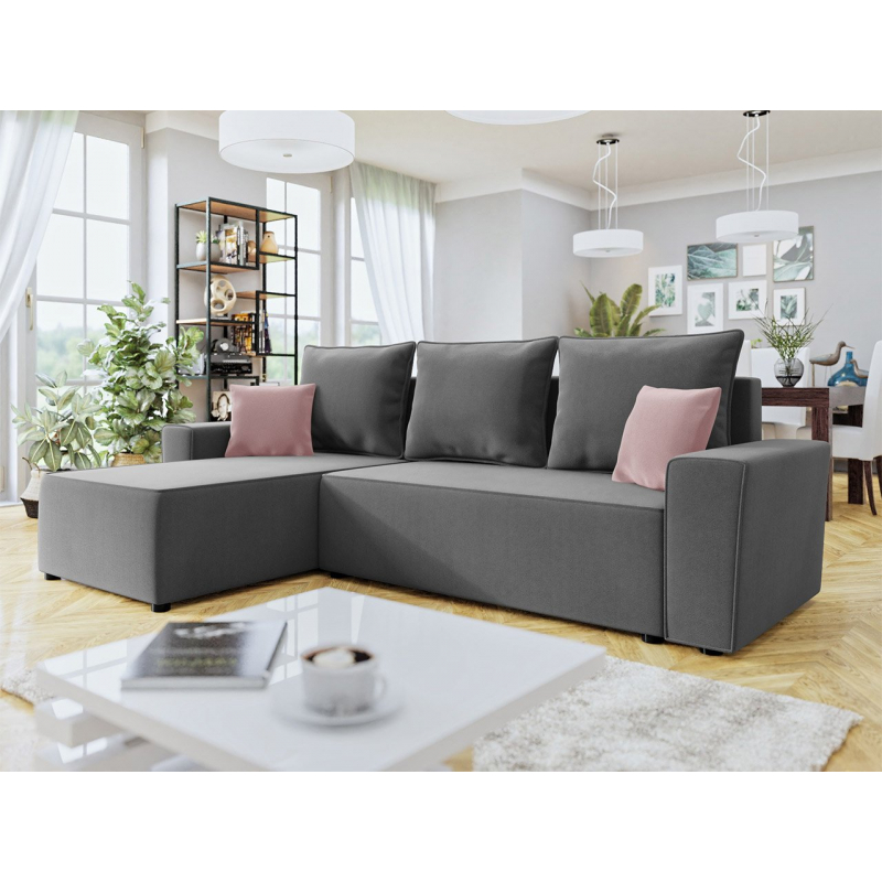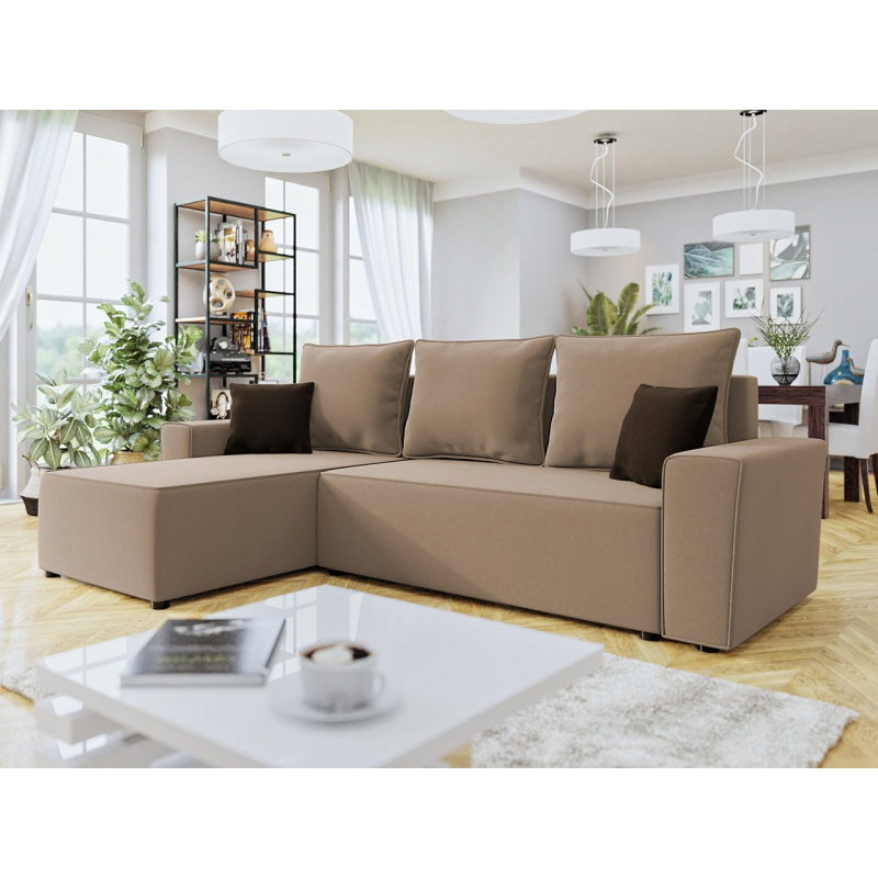 Potřebujete sedačku, která bude jako stvořená pro moderní interiér? Náš návrh je model Eligi. Sedačka je navržena jako písmeno L, nemá prošívané sedadlo a opěradlo. Ozdobné detaily zahrnují větší a menší polštáře, které podpírají nábytek.