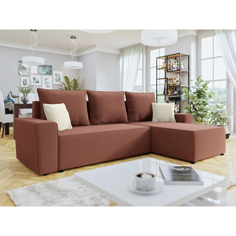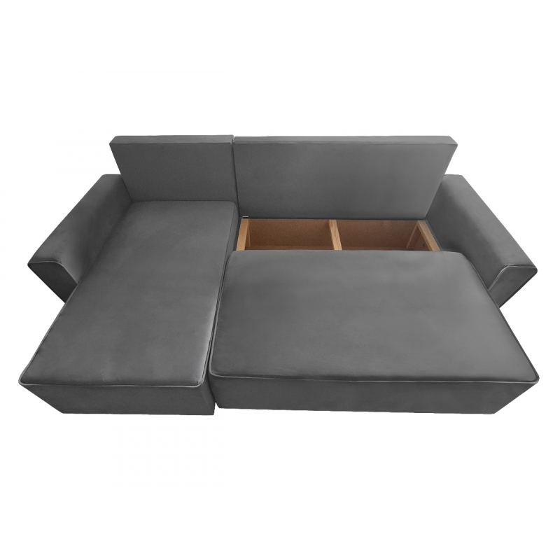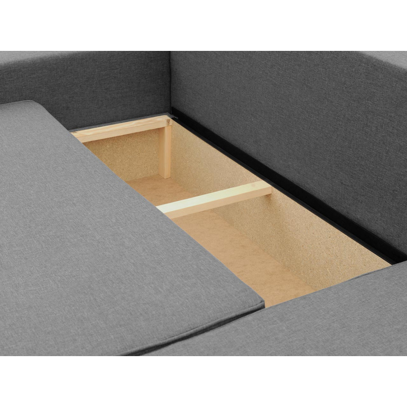 Další výhodou sedačky je funkce spánku. Po rozložení má rohová rozkládací pohovka plochu na spaní 200 x 130 cm. Náhradní lůžkoviny však lze uchovávat v boxu úložného prostoru, který se nachází ve středu nábytku. Sedačku lze navíc nastavit v libovolné konfiguraci, protože má zadní stranu potaženou látkou.