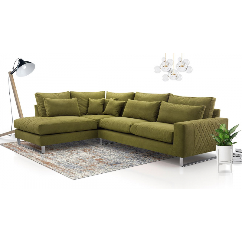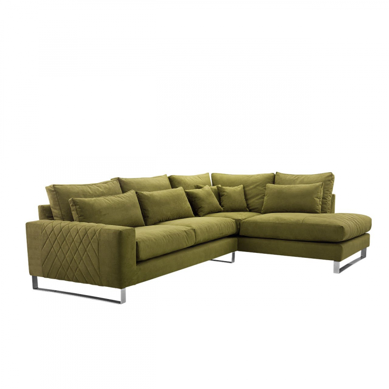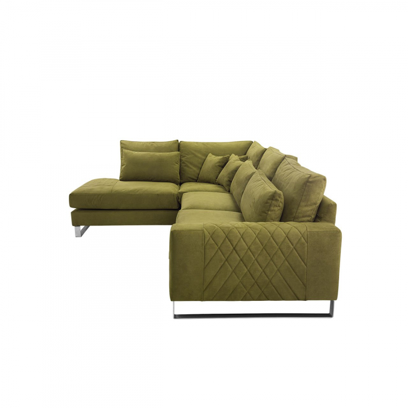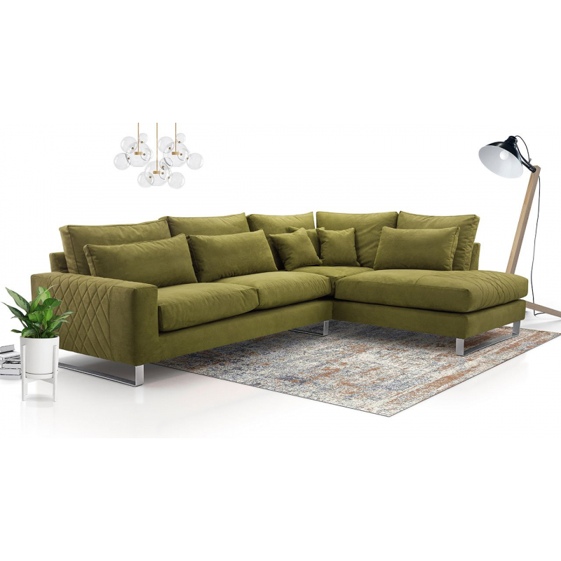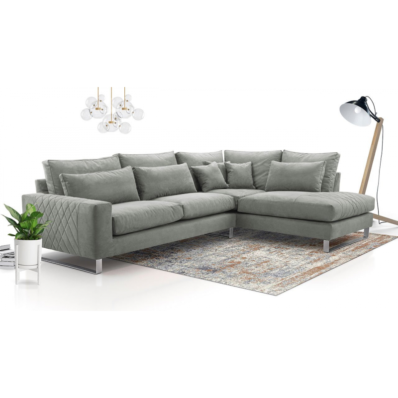 Pryskus je rohová sedačka s moderním charakterem, navržená na způsob písmene "L". Detaily ovlivňují moderní styl nábytku. Mezi ně patří například vysoké kovové nohy v chromové barvě, které sedačce dodávají lehkost. Dalším dekorativním prvkem je prošívání, které vede podél loketní opěrky a gauče.