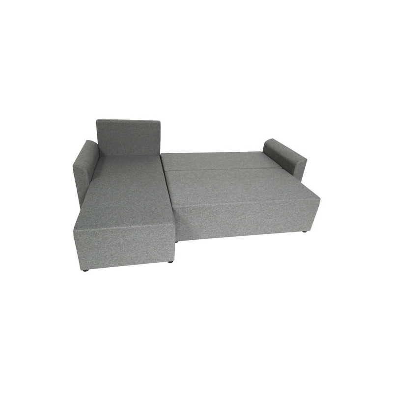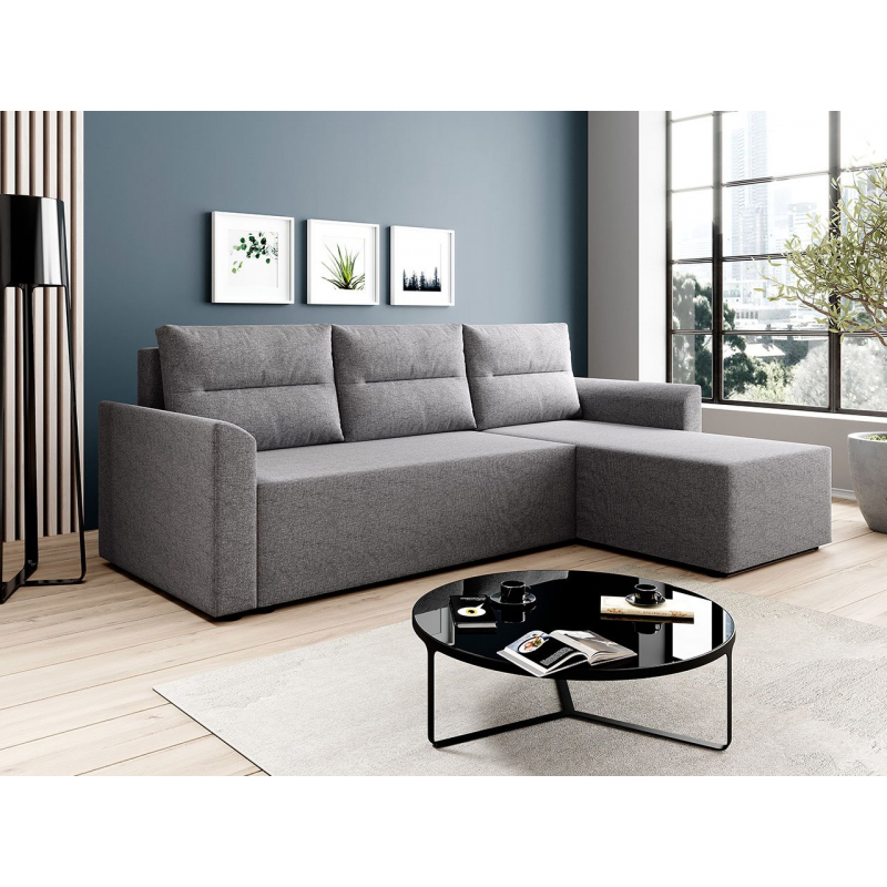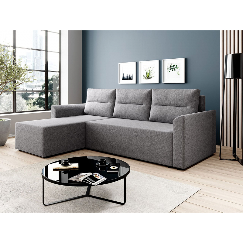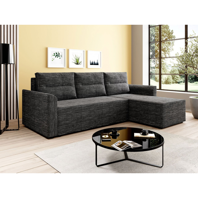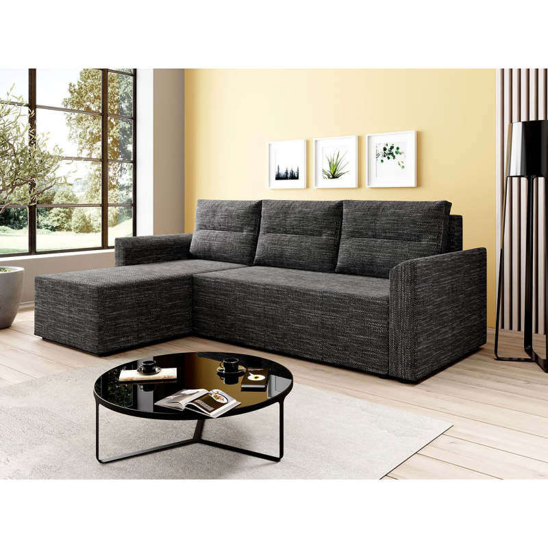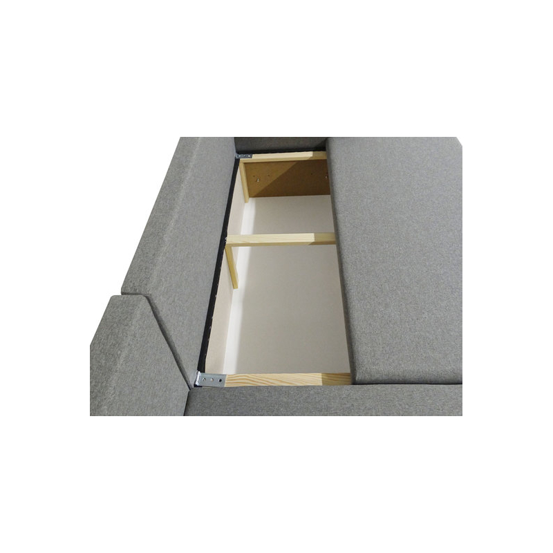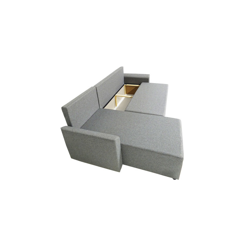 Rohová rozkládací pohovka Palus je navržena tak, aby připomínala písmeno "L". Polštáře jsou vyplněny pěnovými granulemi pro flexibilitu.