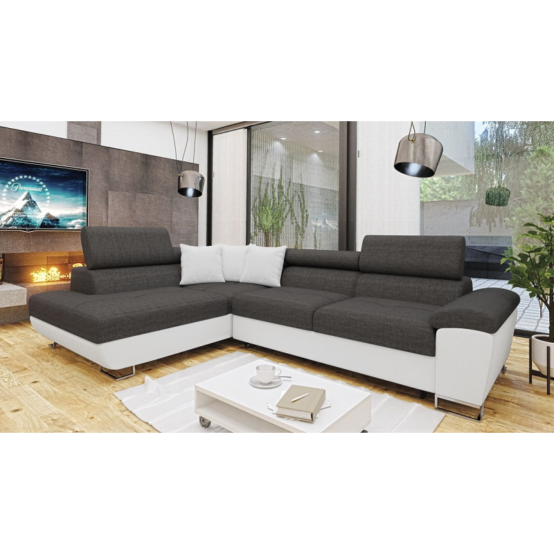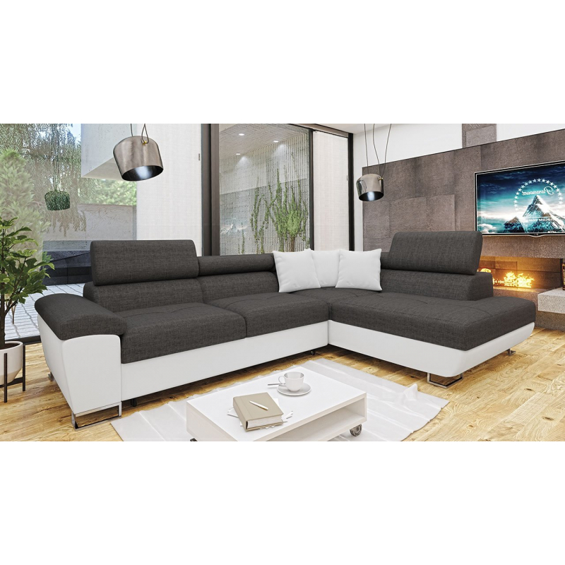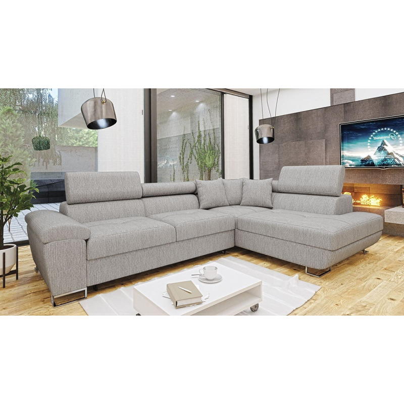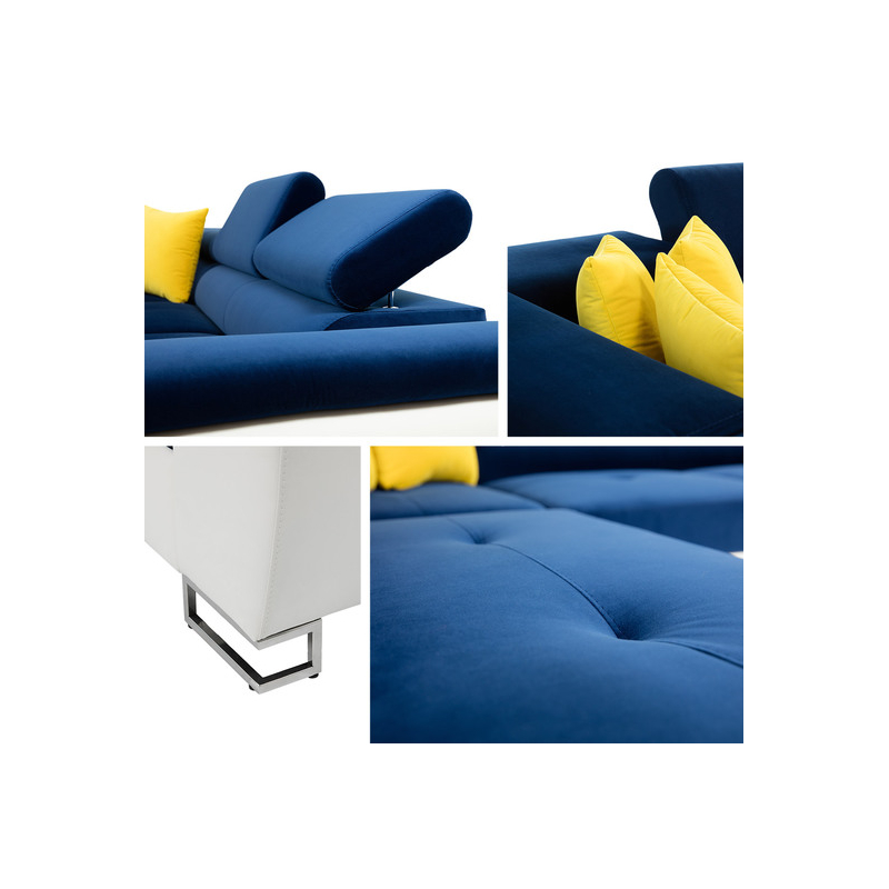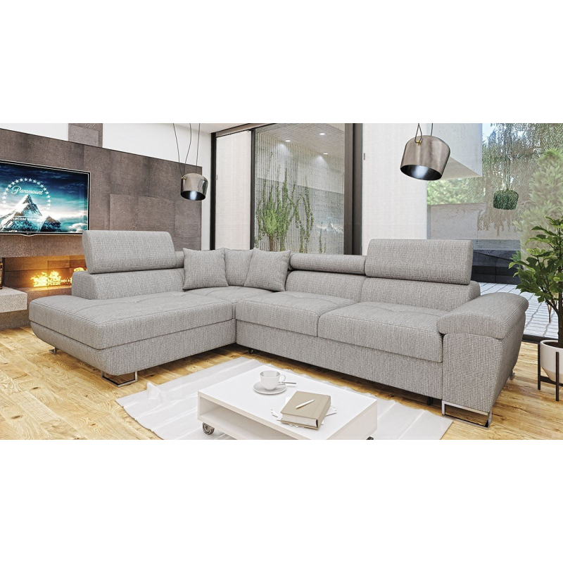 Za zmínku stojí také moderní design nábytku. To je dáno jednoduchým tvarem sedáku, minimalistickým prošíváním a designovými nohami v chromovém provedení. Další výhodou této rohové pohovky jsou nastavitelné opěrky hlavy. Díky nim si uvolníte krční partii. Model má také funkci spaní a úložním prostorem.