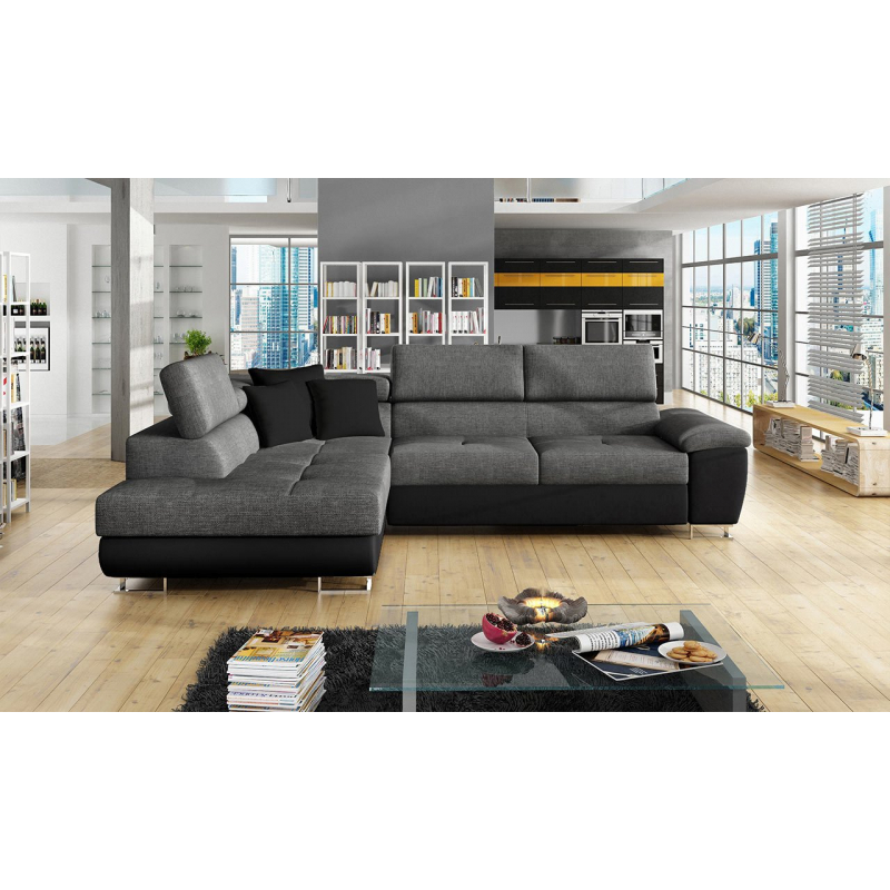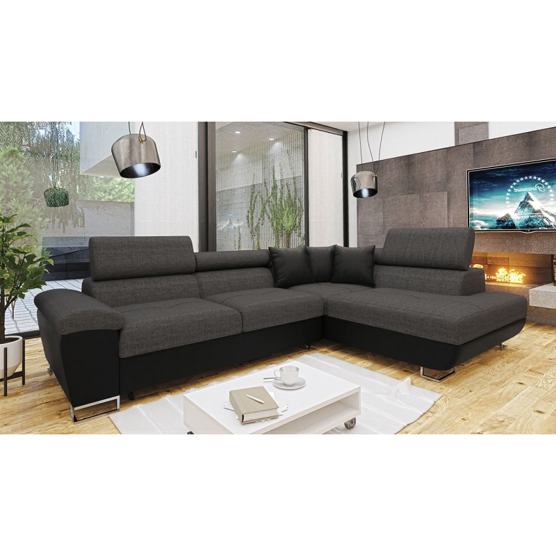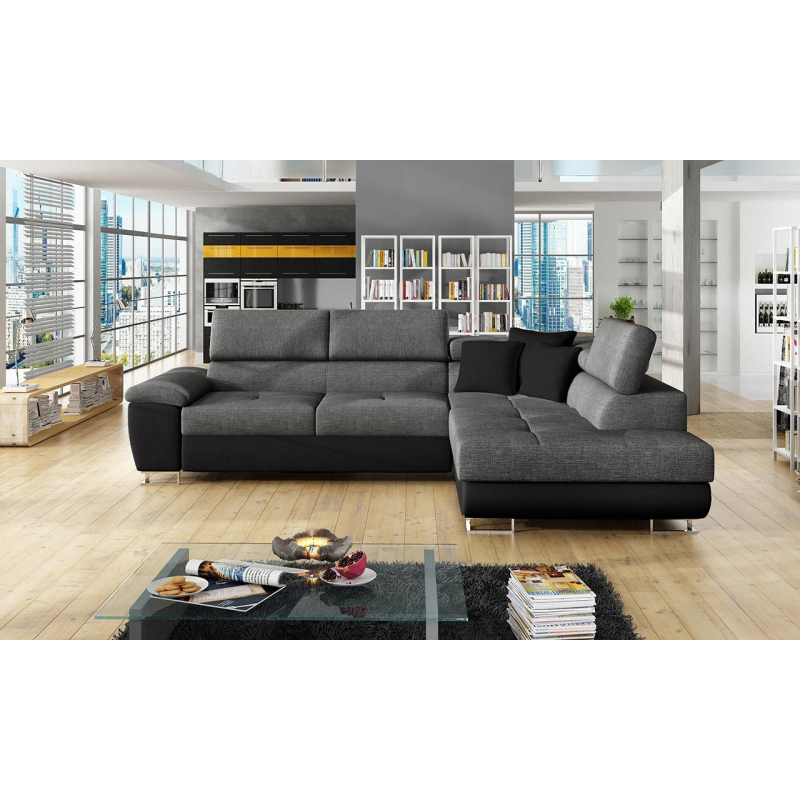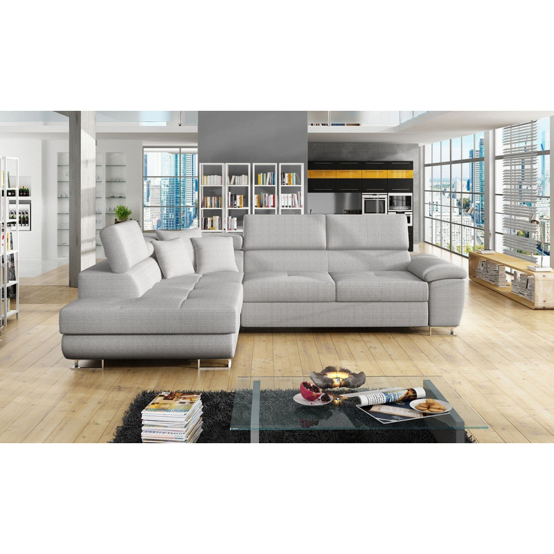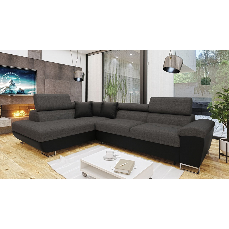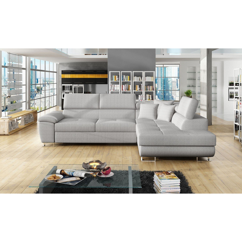 Za zmínku stojí také moderní design nábytku. To je dáno jednoduchým tvarem sedáku, minimalistickým prošíváním a designovými nohami v chromovém provedení. Další výhodou této rohové pohovky jsou nastavitelné opěrky hlavy. Díky nim si uvolníte krční partii. Model má také funkci spaní a úložním prostorem.