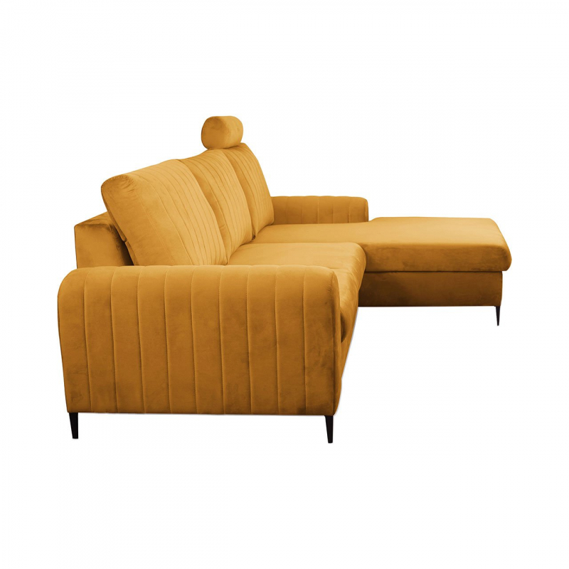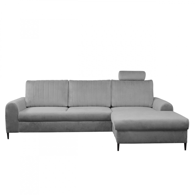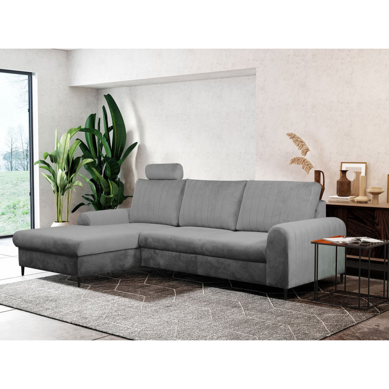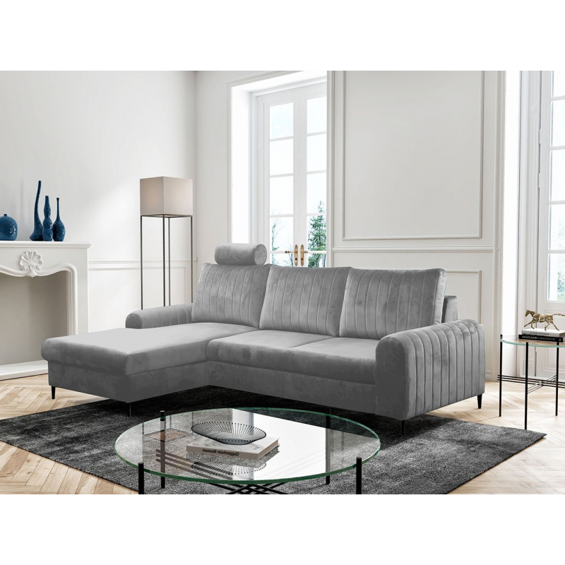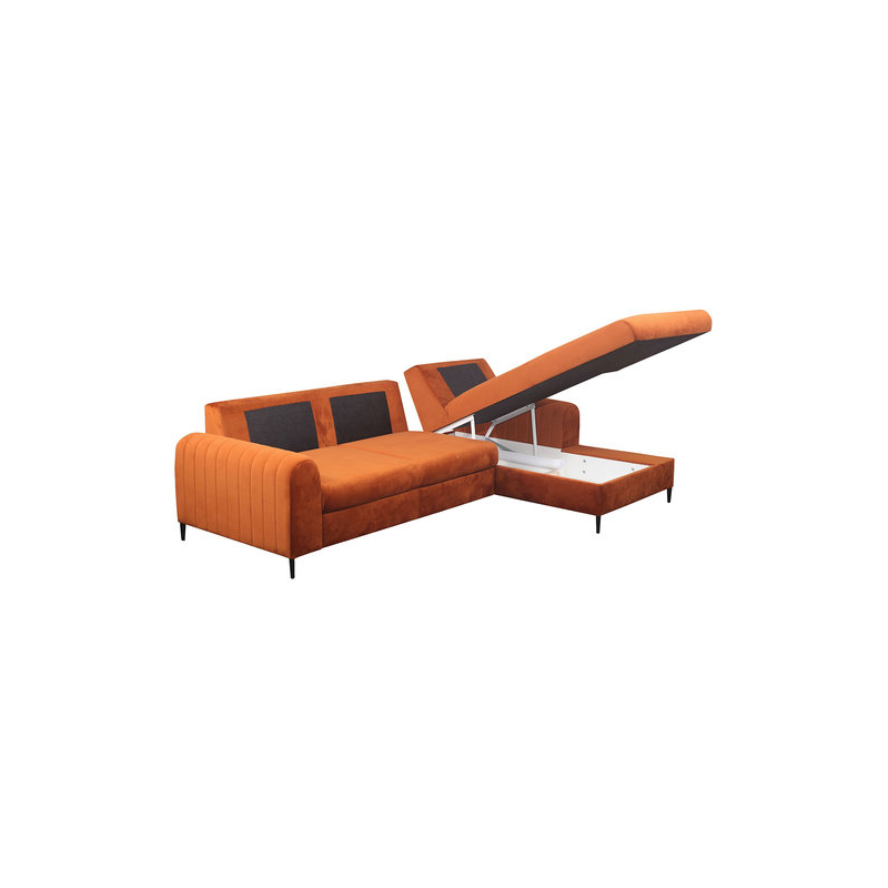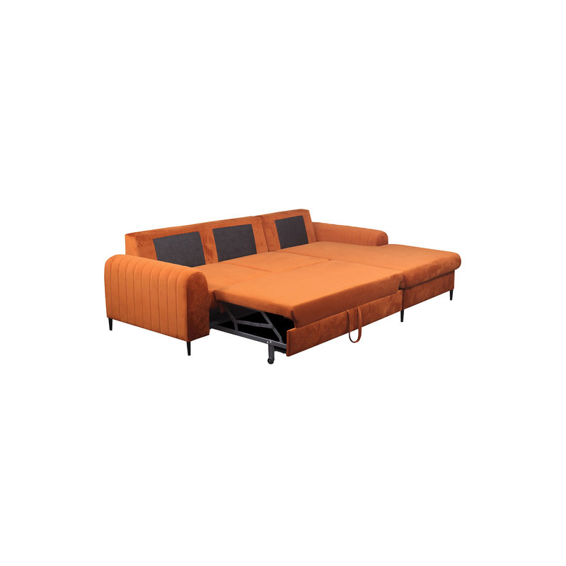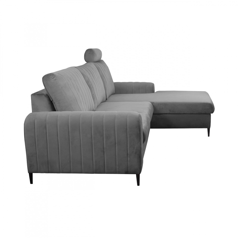 Moderní rohová rozkládací pohovka Olazilla je vyrobena z vysoce kvalitních komponentů, které zajišťují pohodlí během používání. Jemné prošívání podél nastavitelných polštářů v opěradle a na vnějších stranách područek jí dodává estetický vzhled. Vysoké černé kovové nohy jí dodávají stylový nádech.