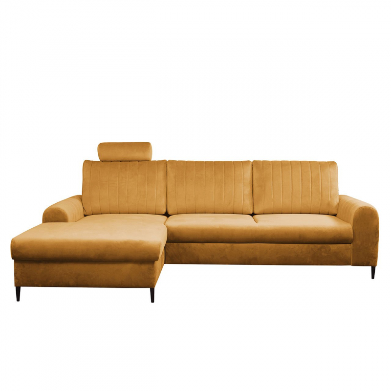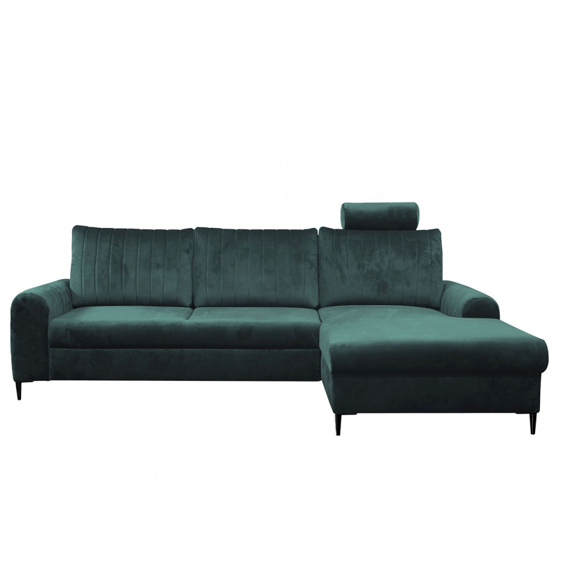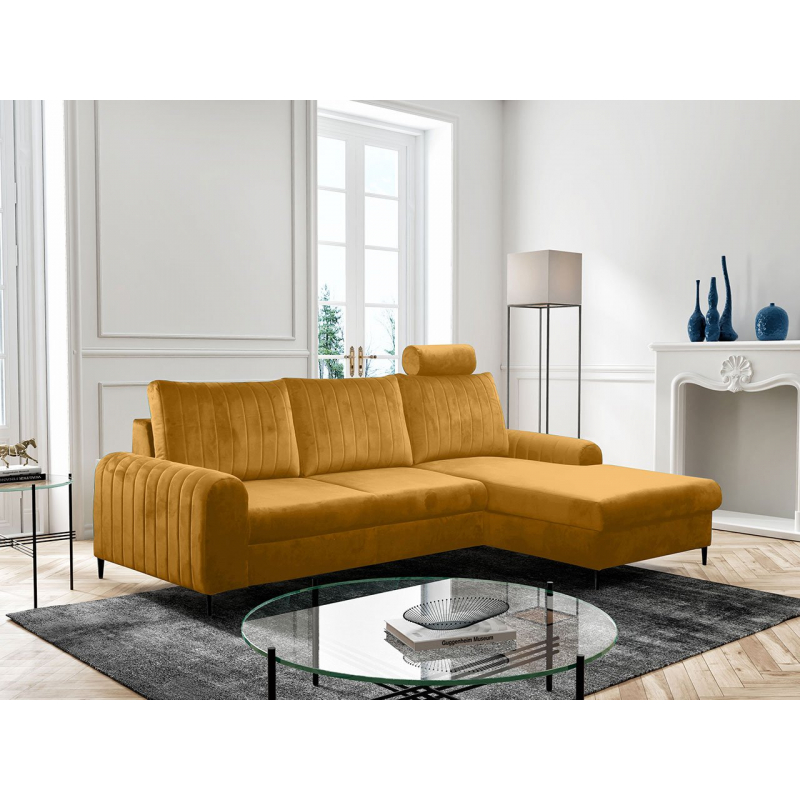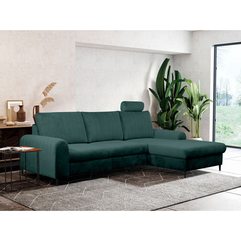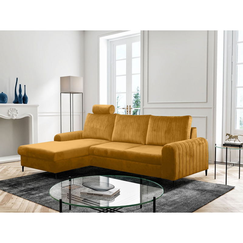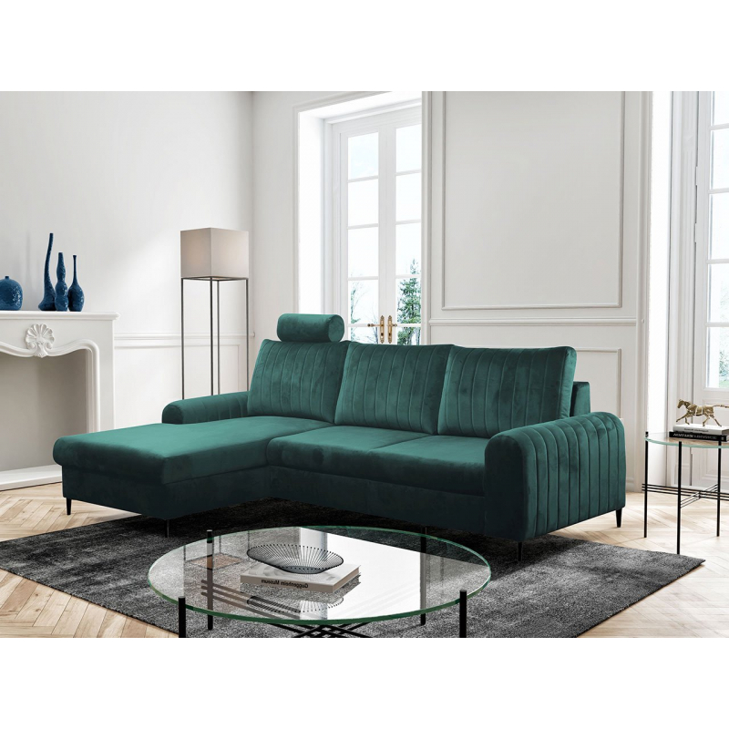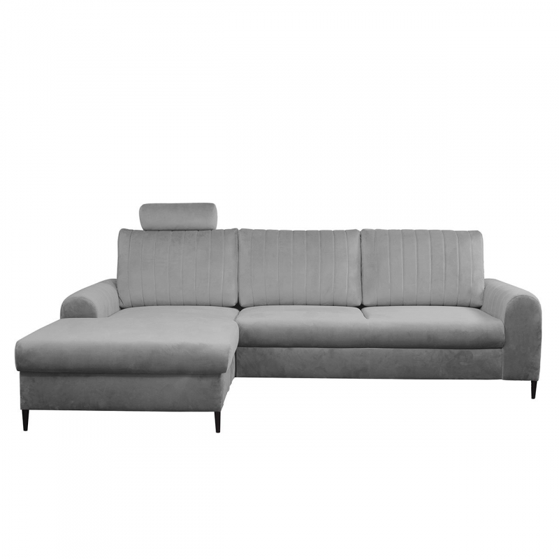 Moderní rohová rozkládací pohovka Olazilla je vyrobena z vysoce kvalitních komponentů, které zajišťují pohodlí během používání. Jemné prošívání podél nastavitelných polštářů v opěradle a na vnějších stranách područek jí dodává estetický vzhled. Vysoké černé kovové nohy jí dodávají stylový nádech.