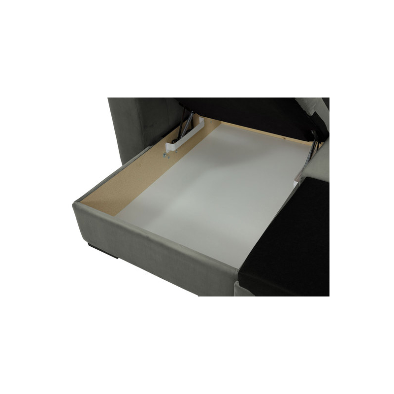 Rohová sedací souprava nabízí funkci spaní. V rozloženém stavu má povrch 225 cm x 125 cm, což zajišťuje pohodlný spánek pro dvě osoby. Náhradní lůžkoviny si však můžete nechat v úložném prostoru, který je umístěn pod sedadlem.