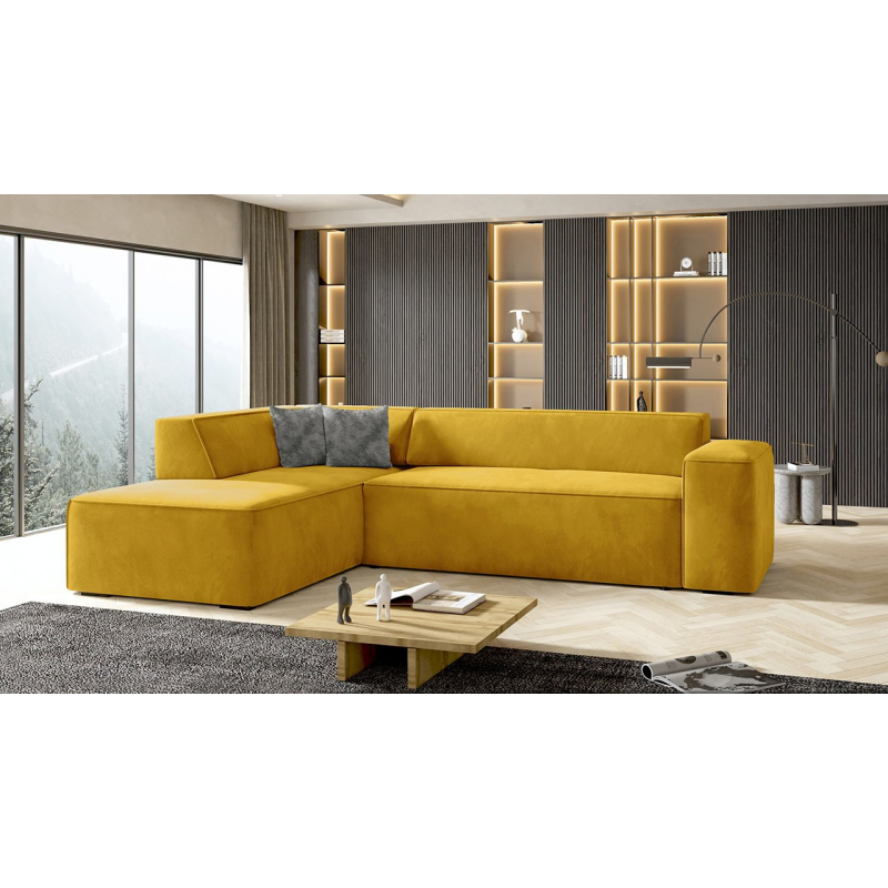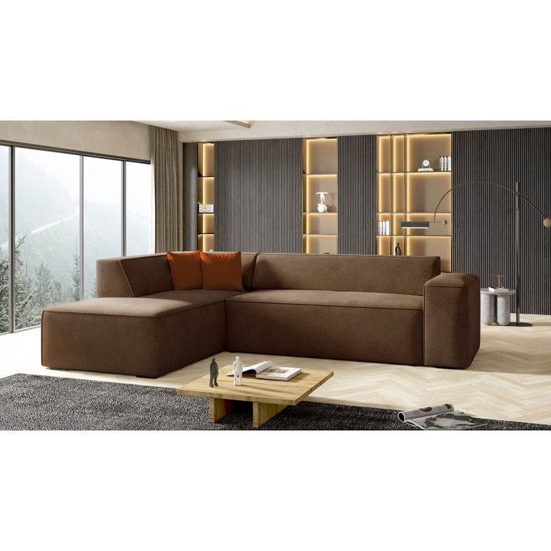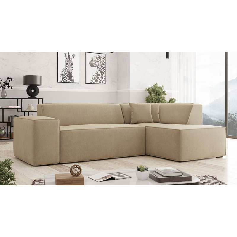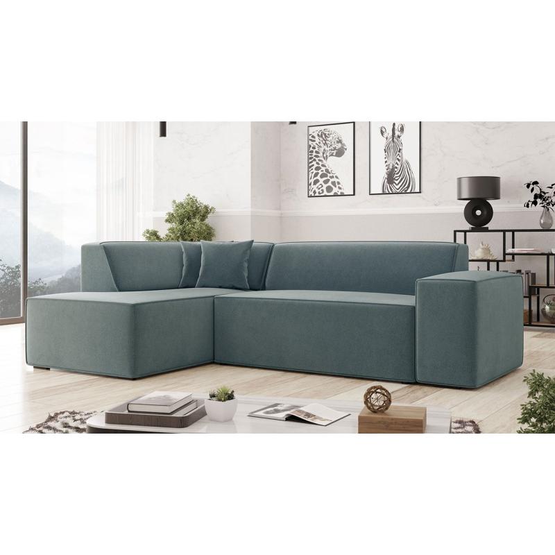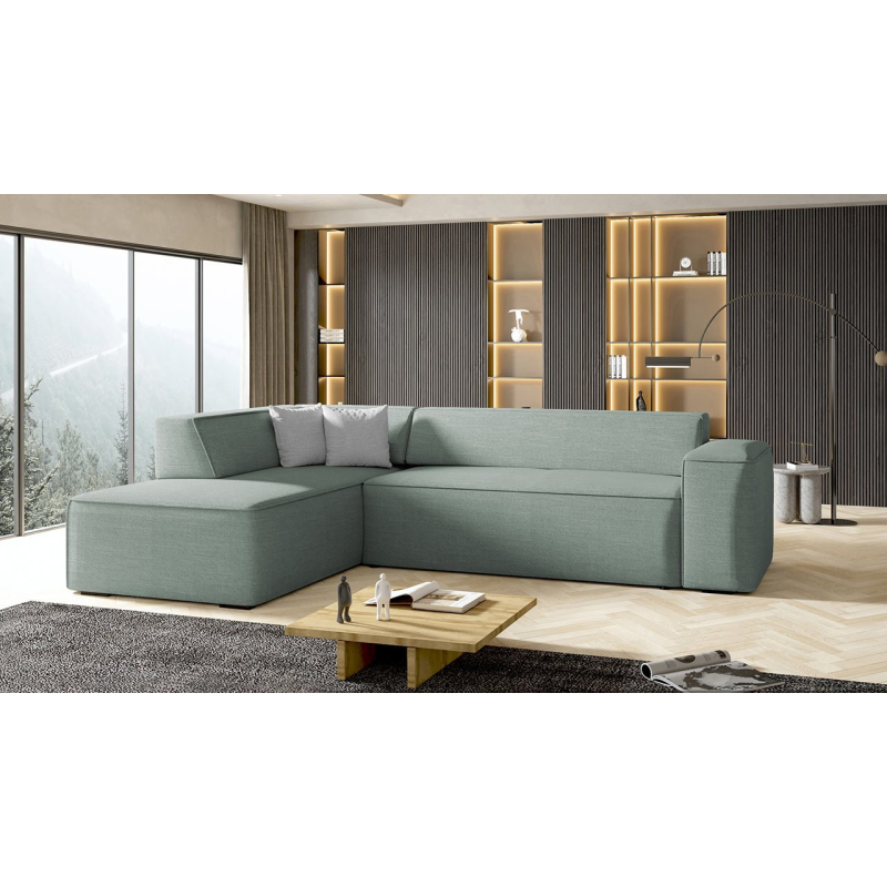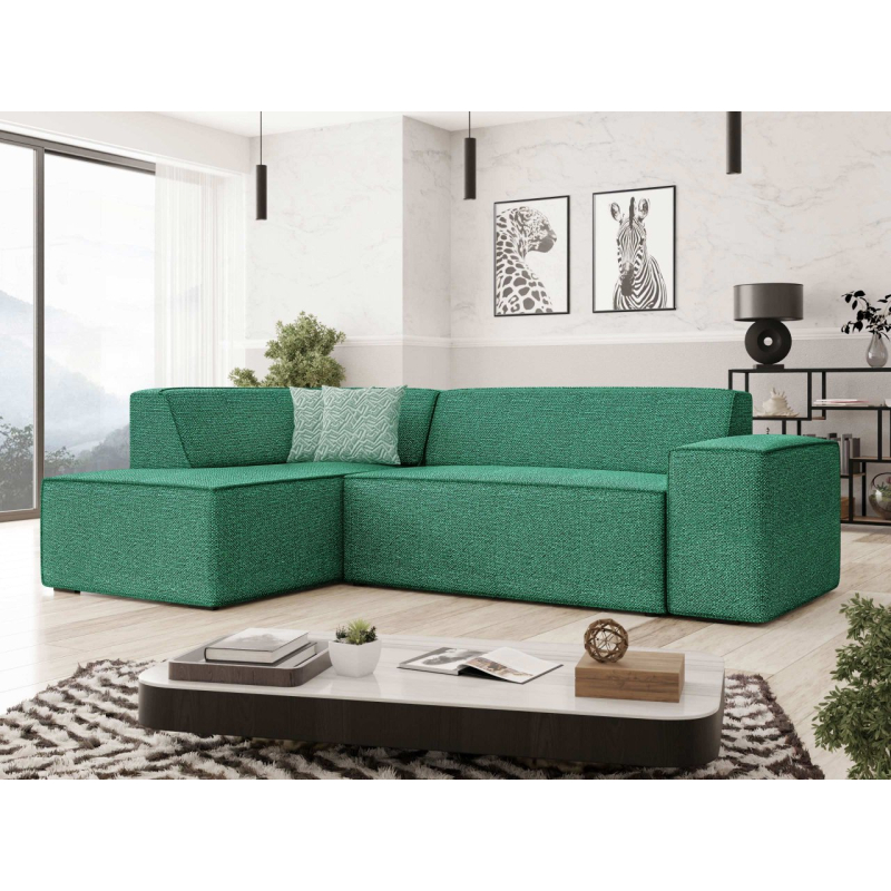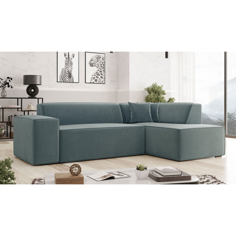 Tento nábytek se vyznačuje solidním zpracováním a kvalitní potahovou látkou. Součástí sady jsou také dva dekorační polštáře na zip a subtilní, černé plastové nožičky. Rohová sedačka do obývacího pokoje je volně stojící varianta, která dává spoustu možností kreativního uspořádání.