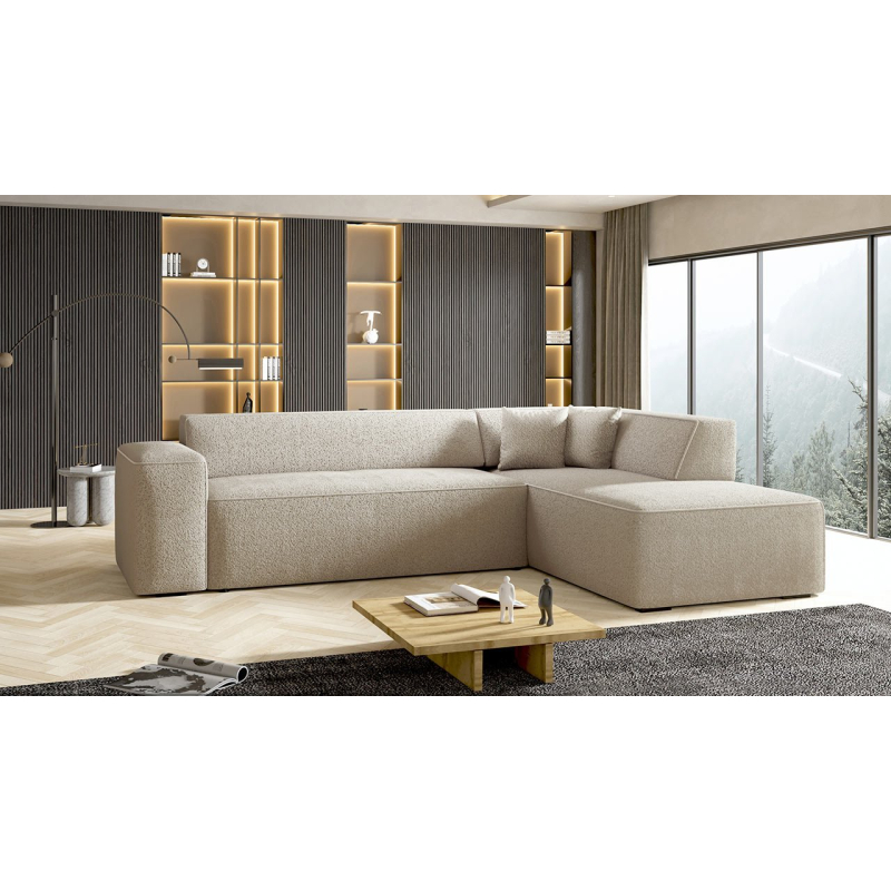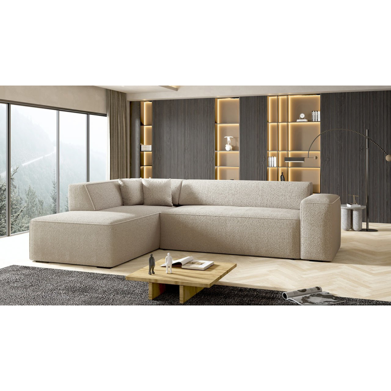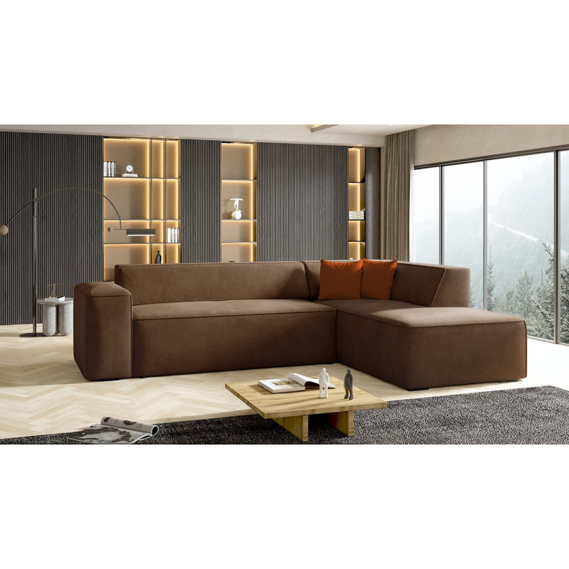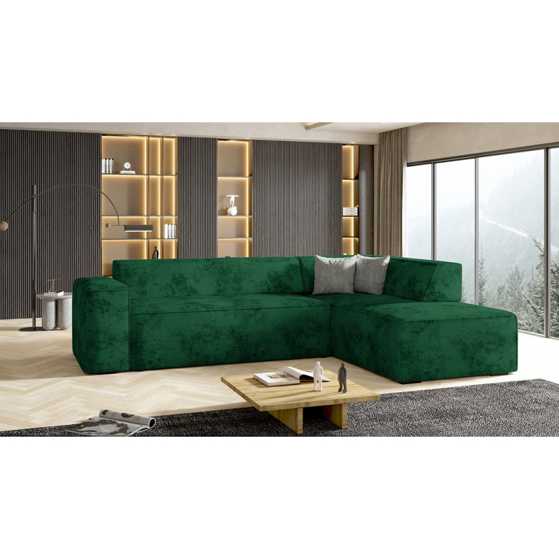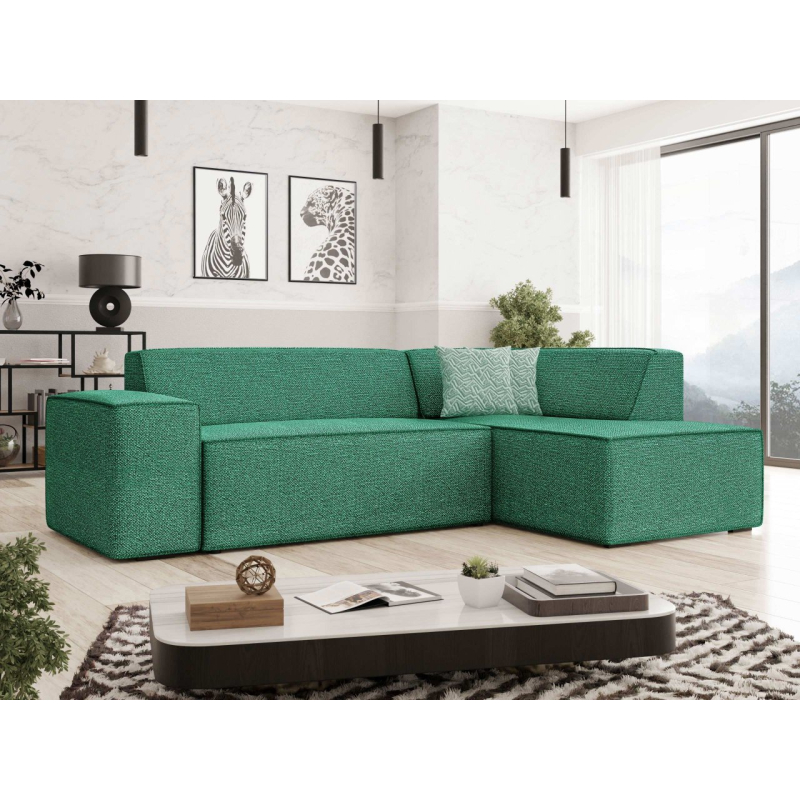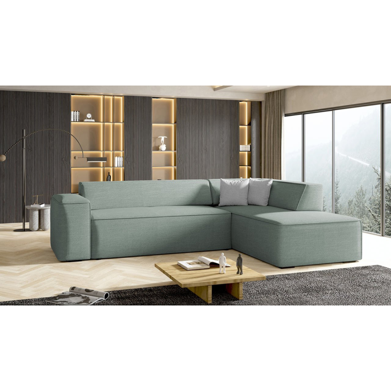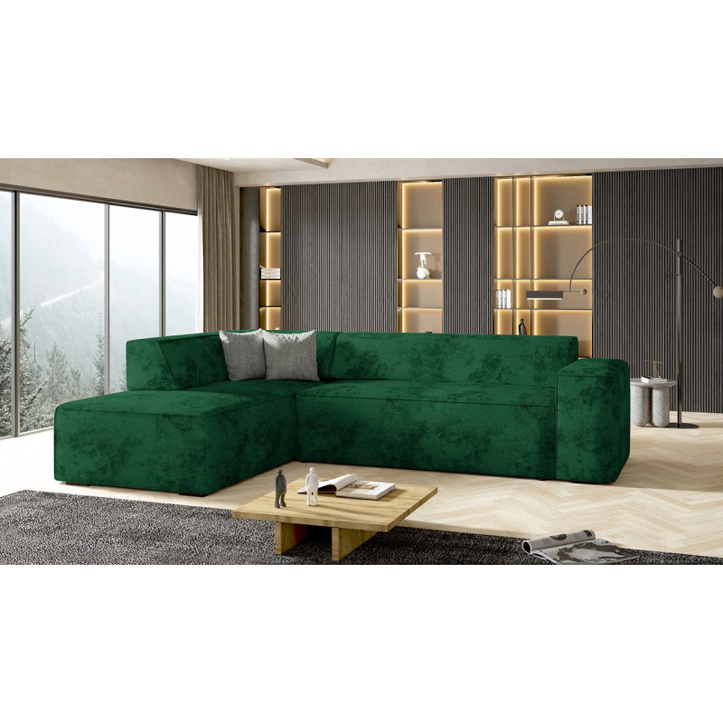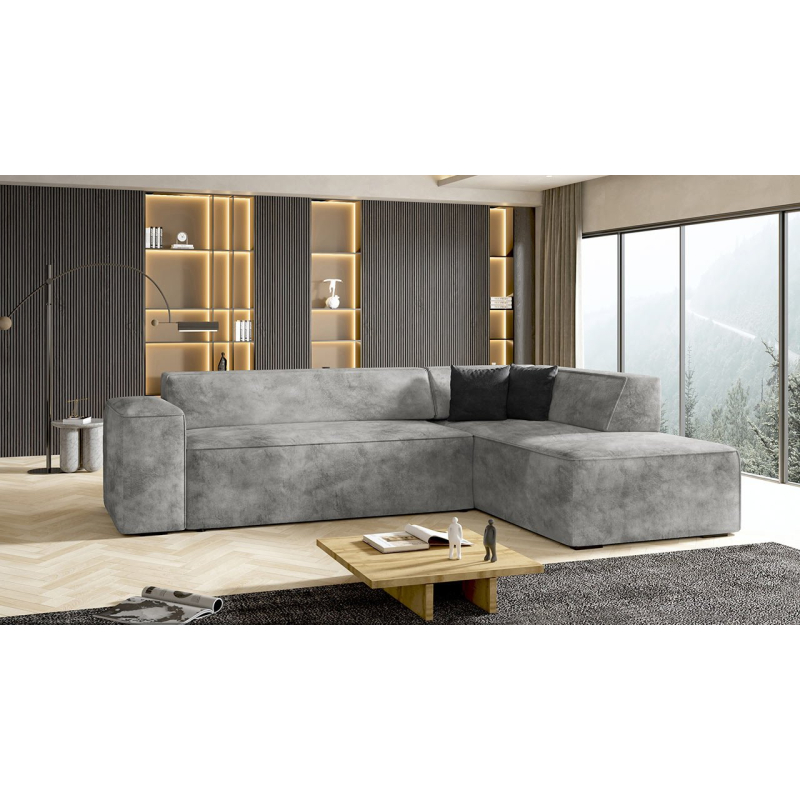 Tento nábytek se vyznačuje solidním zpracováním a kvalitní potahovou látkou. Součástí sady jsou také dva dekorační polštáře na zip a subtilní, černé plastové nožičky. Rohová sedačka do obývacího pokoje je volně stojící varianta, která dává spoustu možností kreativního uspořádání.