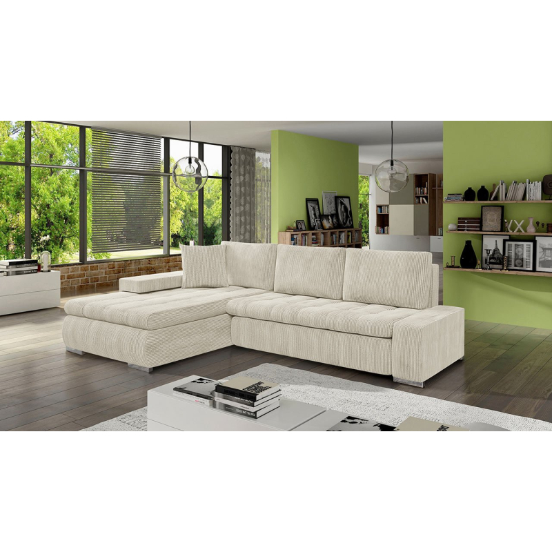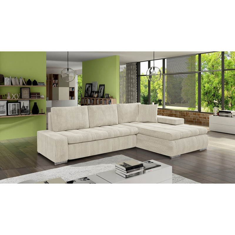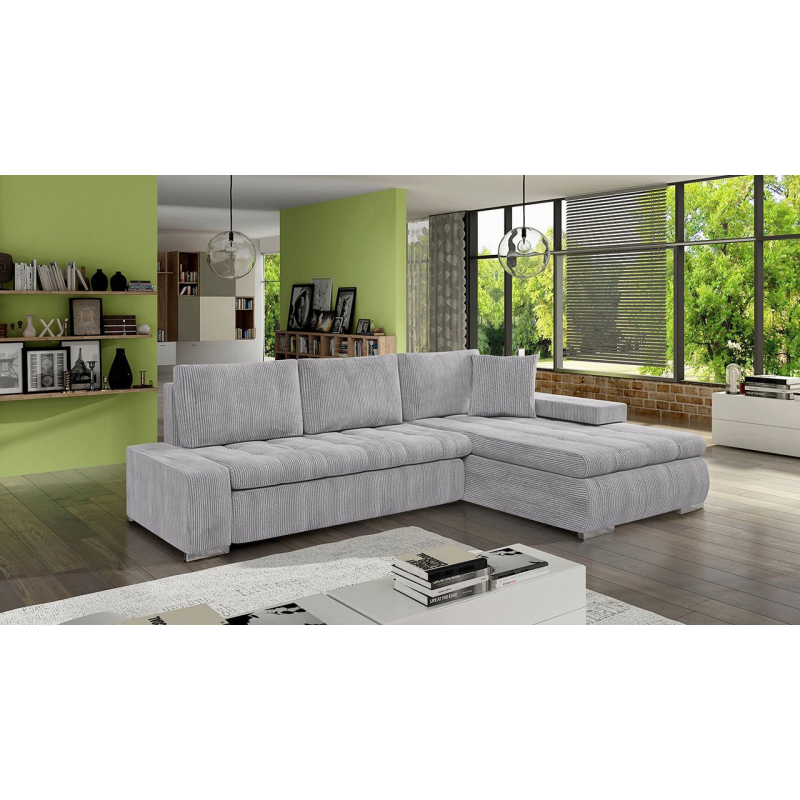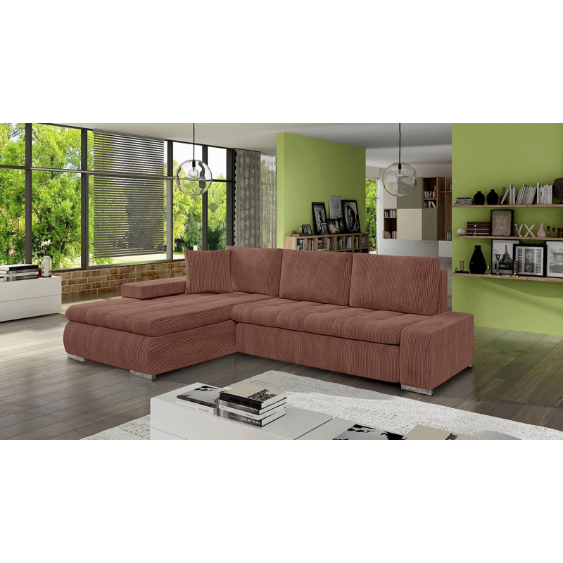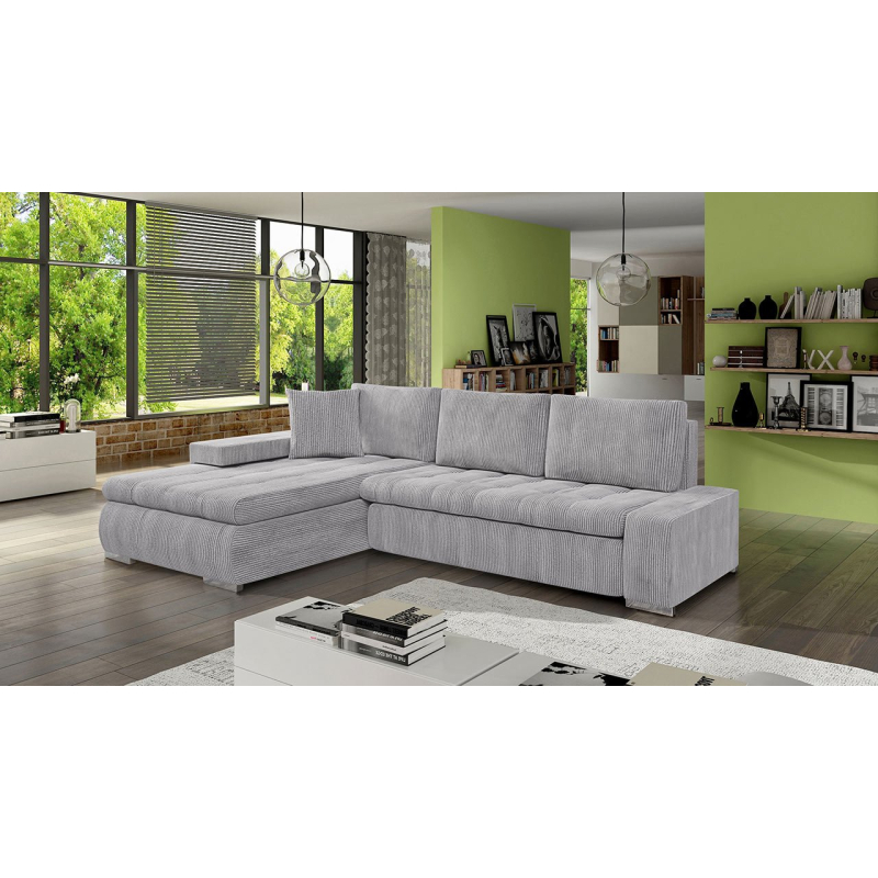 Je vyrobena z vysoce kvalitních komponentů a obohacena o užitečné funkce. Rohová pohovka je rozkládací, má plochu na spaní a úložný prostor na lůžkoviny. Zádová opěrka je tvořena pohyblivými polštáři na zip. Součástí balení je také malý dekorativní polštářek. Celek je doplněn nízkými nožičkami. Jedná se o model, který bude ideální pro návštěvy a jako součást obývacího pokoje kombinovaného s ložnicí.