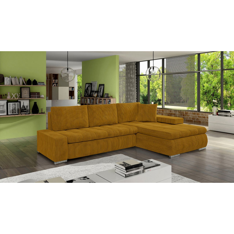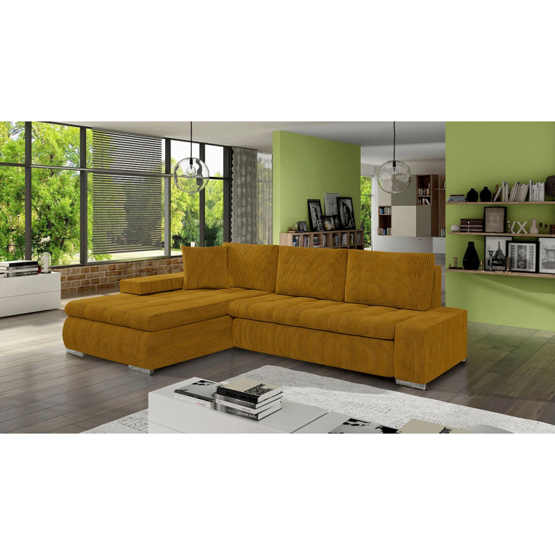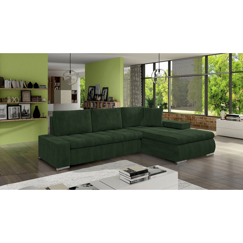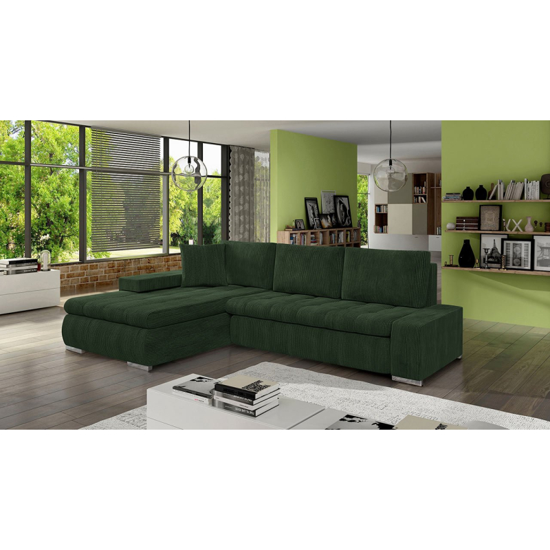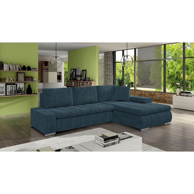 Je vyrobena z vysoce kvalitních komponentů a obohacena o užitečné funkce. Rohová pohovka je rozkládací, má plochu na spaní a úložný prostor na lůžkoviny. Zádová opěrka je tvořena pohyblivými polštáři na zip. Součástí balení je také malý dekorativní polštářek. Celek je doplněn nízkými nožičkami. Jedná se o model, který bude ideální pro návštěvy a jako součást obývacího pokoje kombinovaného s ložnicí.