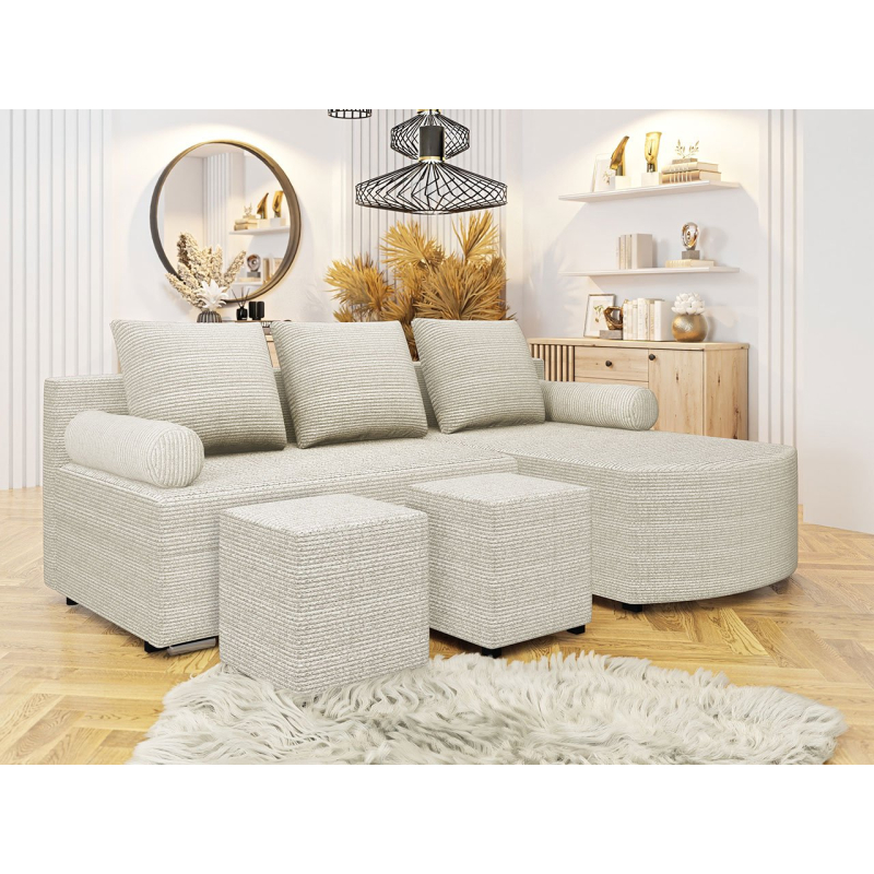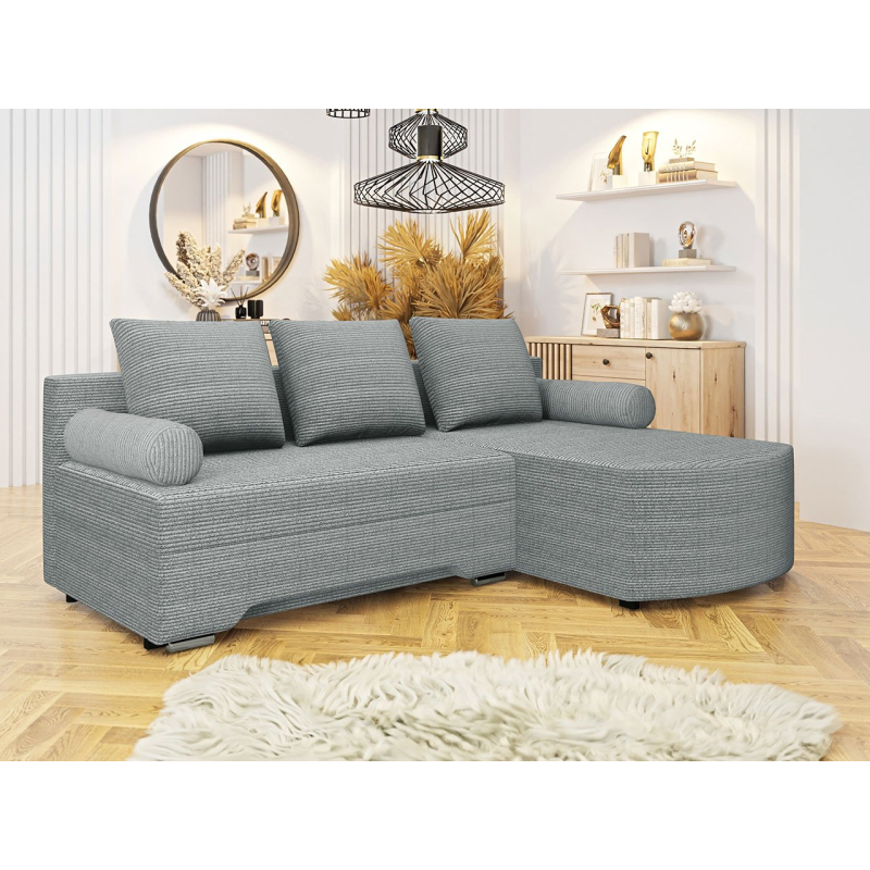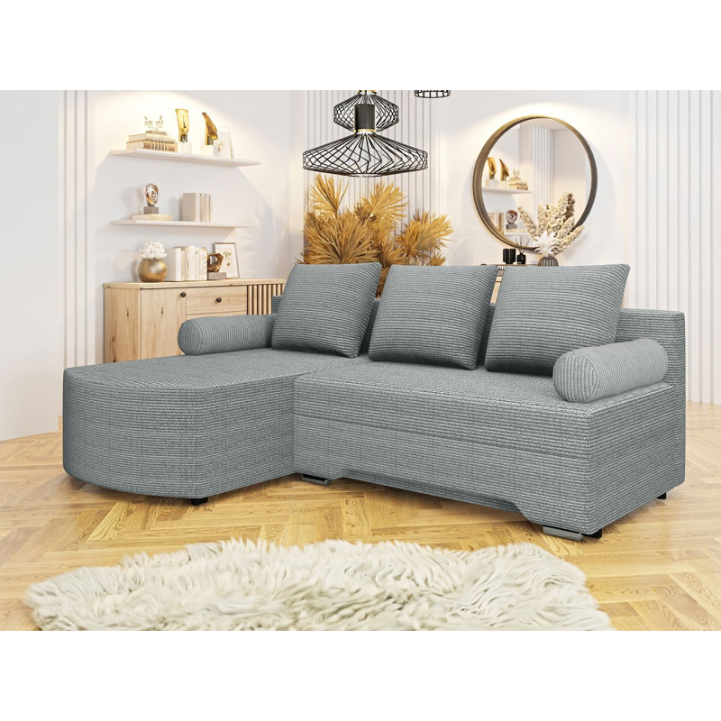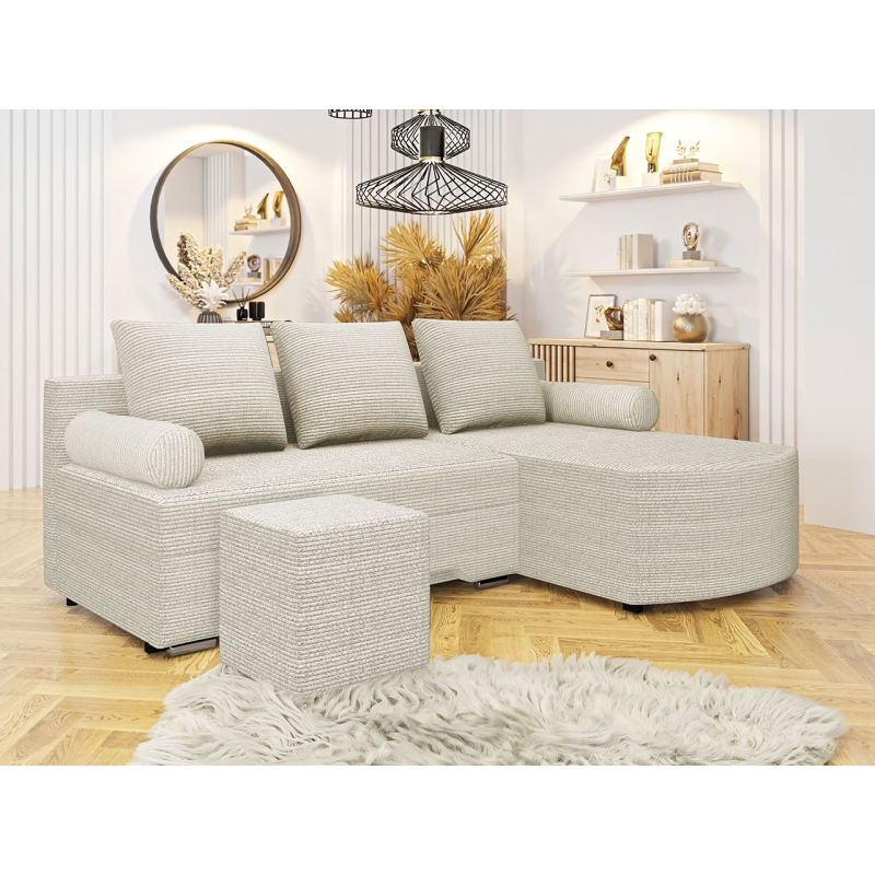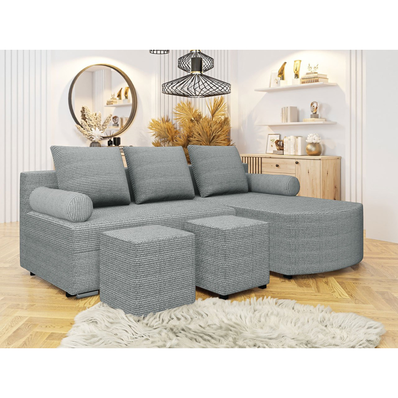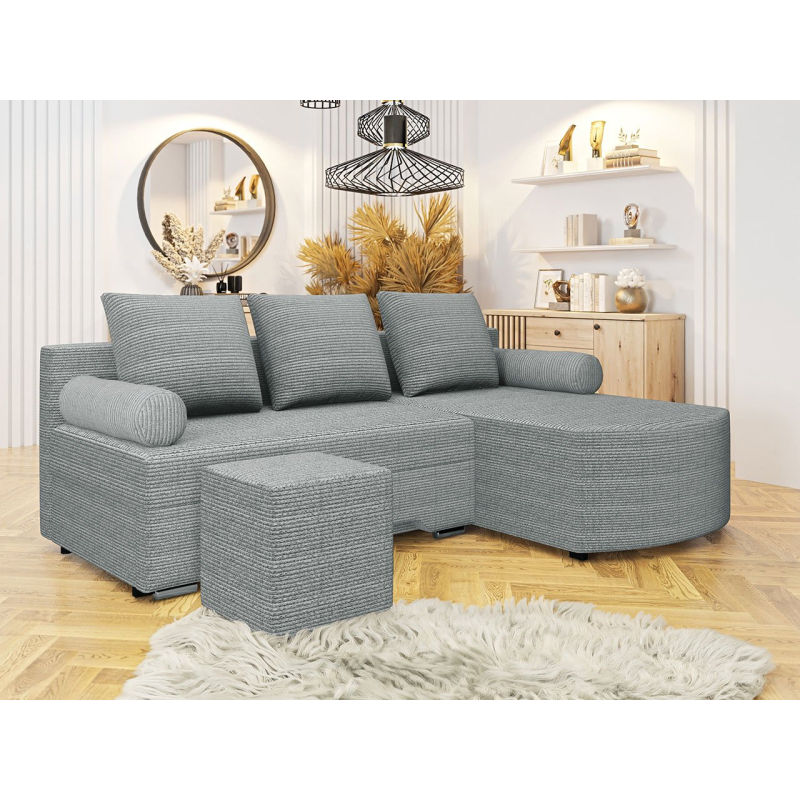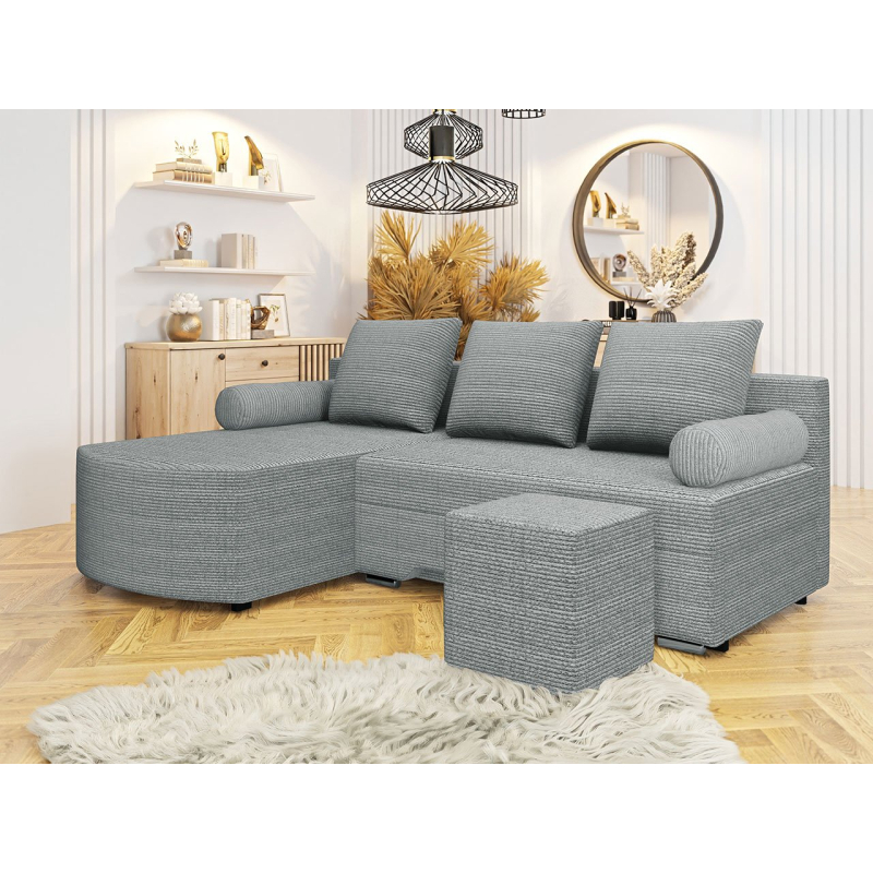 Neobvyklým dekorativním prvkem v obývacím pokoji bude manšestrová rohová pohovka Oski. Její zajímavý design a módní potahová látka vnesou do interiéru moderní charakter. Široká škála odstínů vám umožní sladit nábytek s uspořádáním obývacího pokoje.