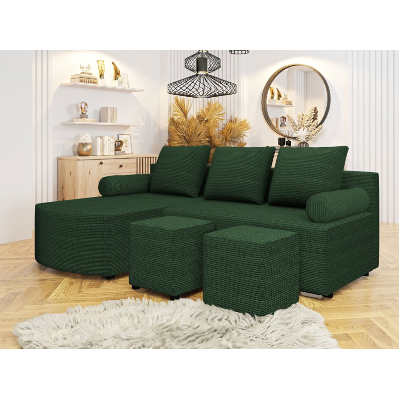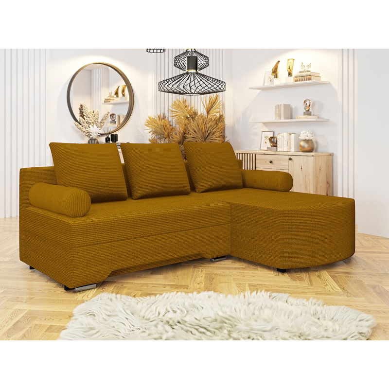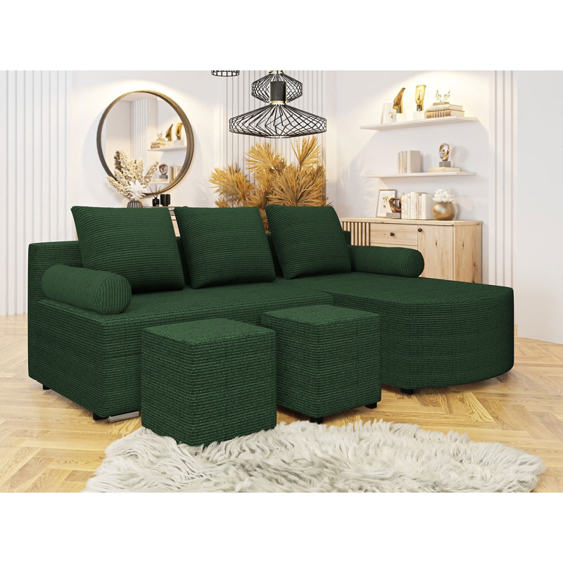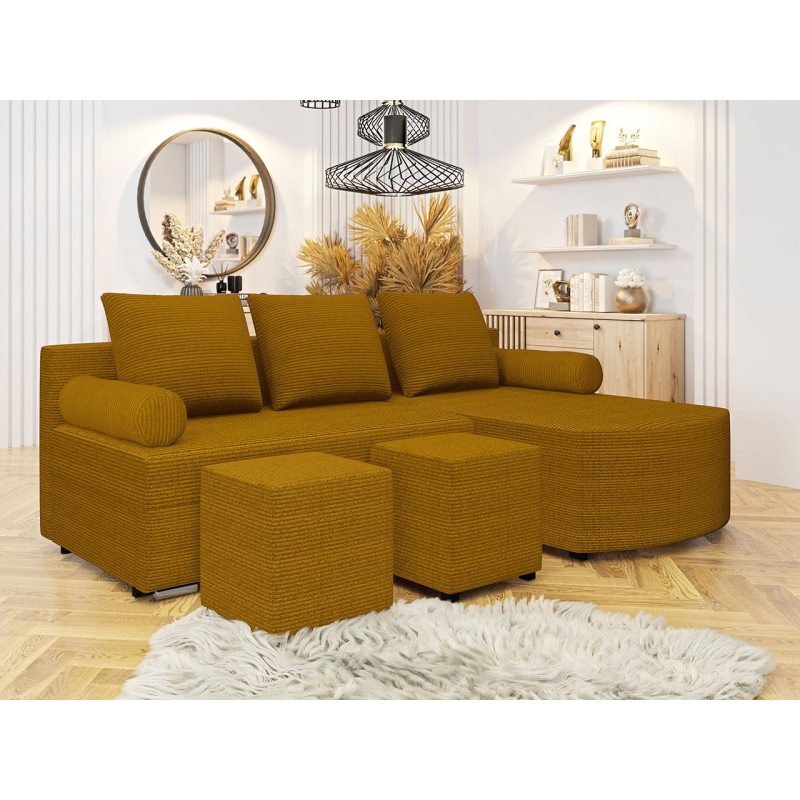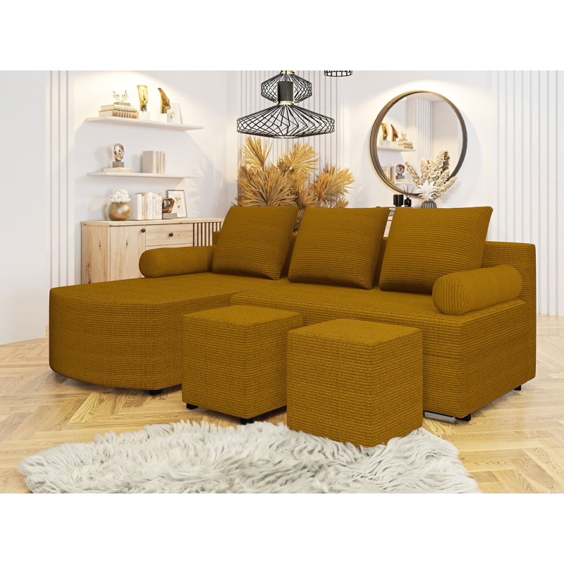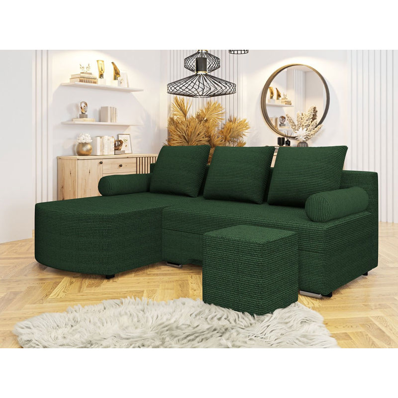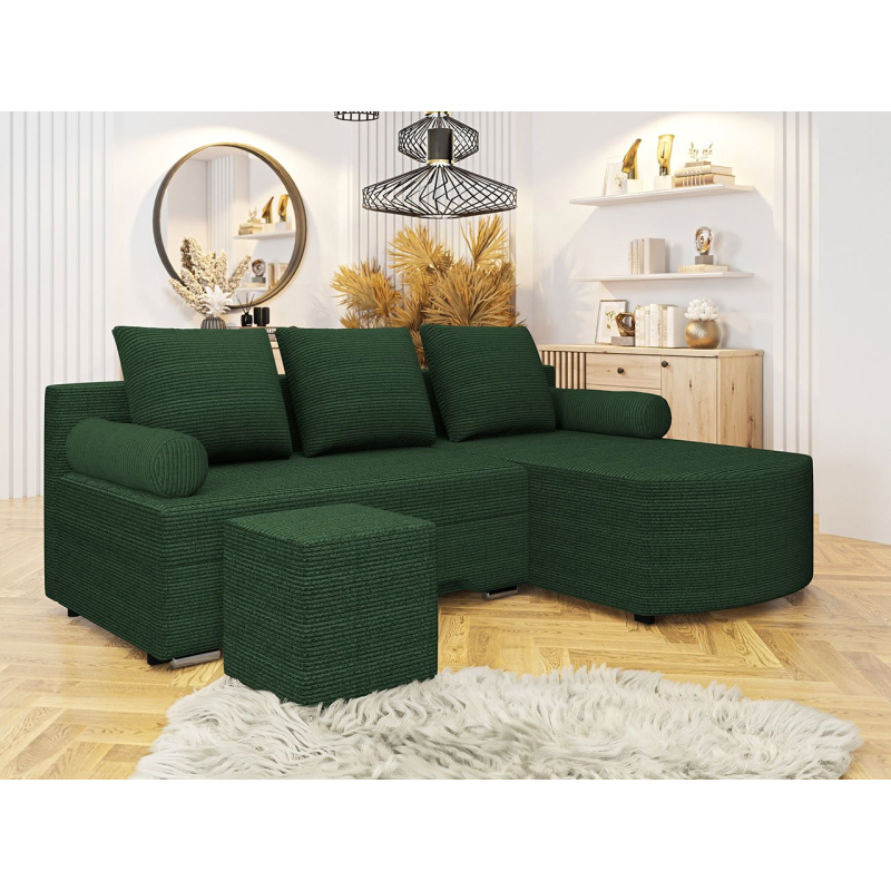 Neobvyklým dekorativním prvkem v obývacím pokoji bude manšestrová rohová pohovka Oski. Její zajímavý design a módní potahová látka vnesou do interiéru moderní charakter. Široká škála odstínů vám umožní sladit nábytek s uspořádáním obývacího pokoje.