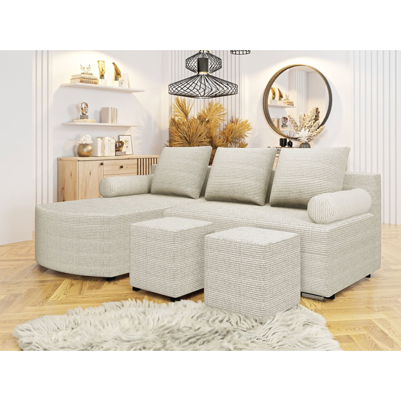 Manšestrová tkanina je nejmódnějším designovým doplňkem této sezóny. Vroubkovaná struktura vypadá na rohové pohovce mimořádně elegantně a stylově. Měkký a na dotek příjemný povrch vám zaručí blaženou relaxaci během odpoledního spánku.