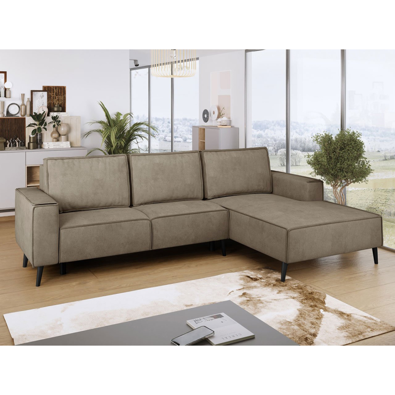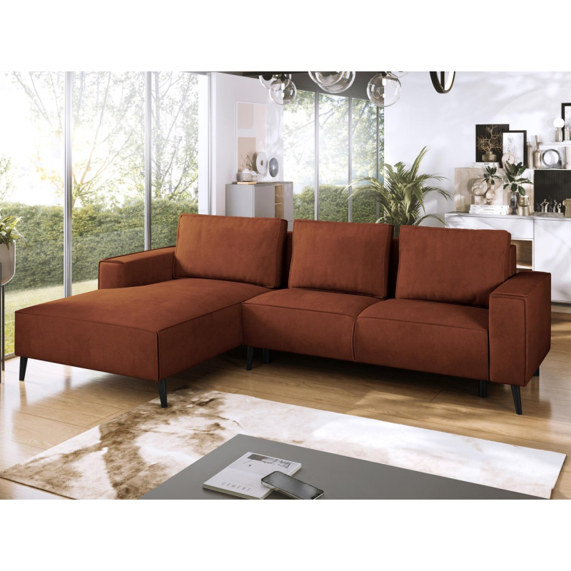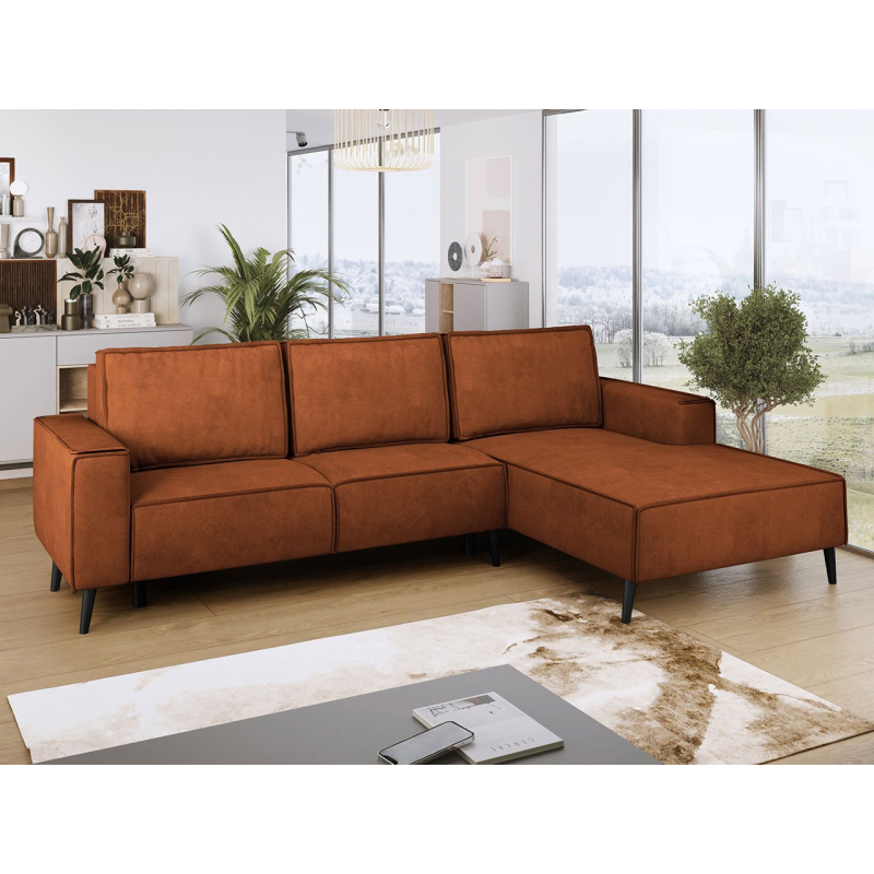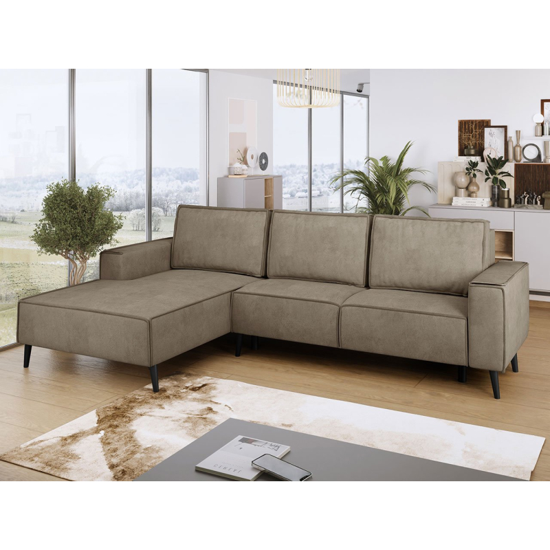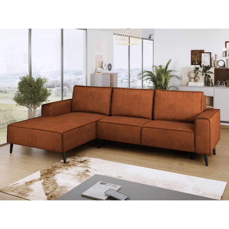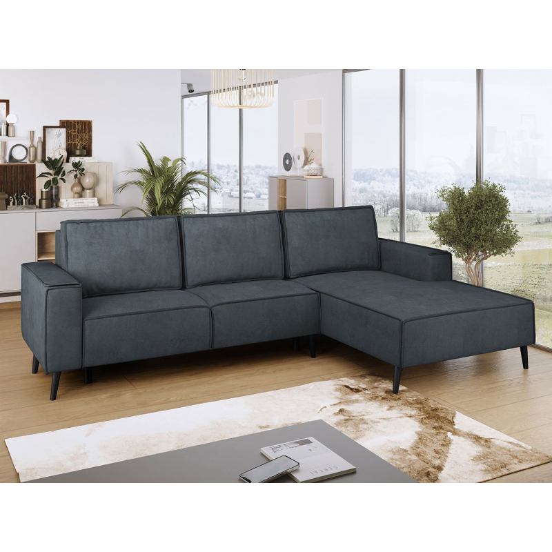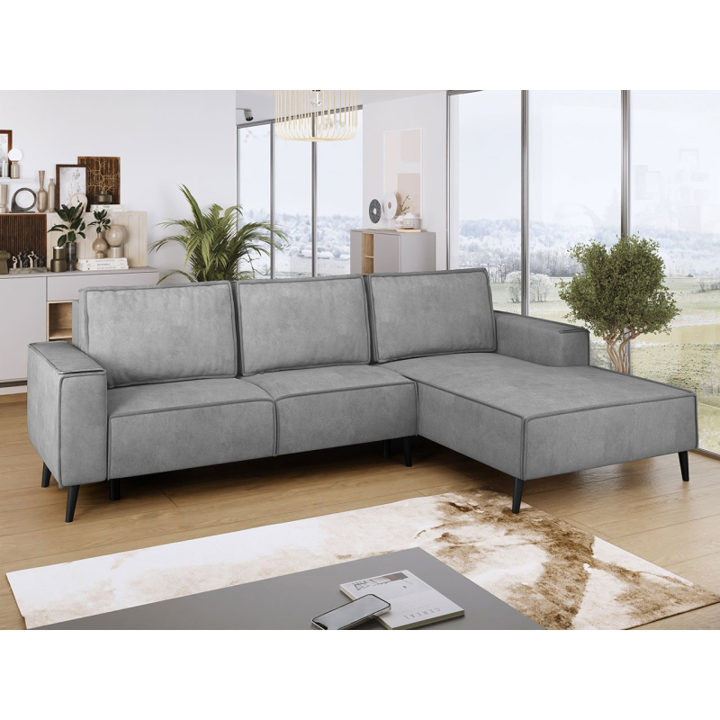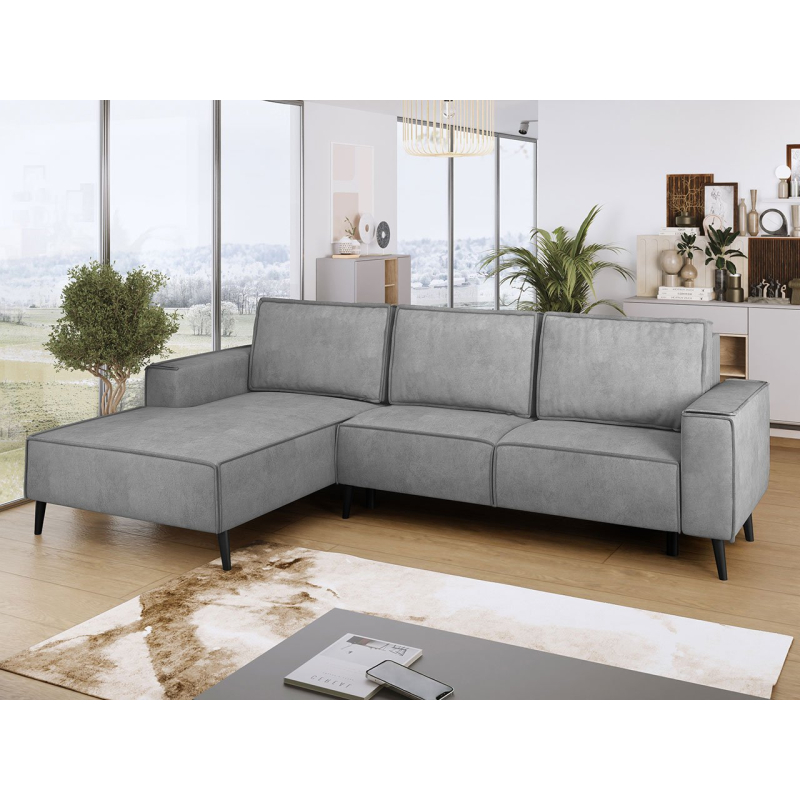 Rozkládací rohová sedací souprava s funkcí spaní je nejen ideálním místem pro relaxaci a odpočinek, ale také dokonalým řešením pro návštěvy. Model je navíc vybaven úložním prostorem na lůžkoviny. Do prostorného úložného prostoru lze uložit přikrývky, polštáře a dokonce i další předměty. Sedací souprava je vyrobena ve volně stojícím provedení. Umístěte ji do centrální části obývacího pokoje a užijte si pohodlnou relaxační zónu. Dodejte svému obývacímu pokoji třídu a funkčnost společně s Motelosem.