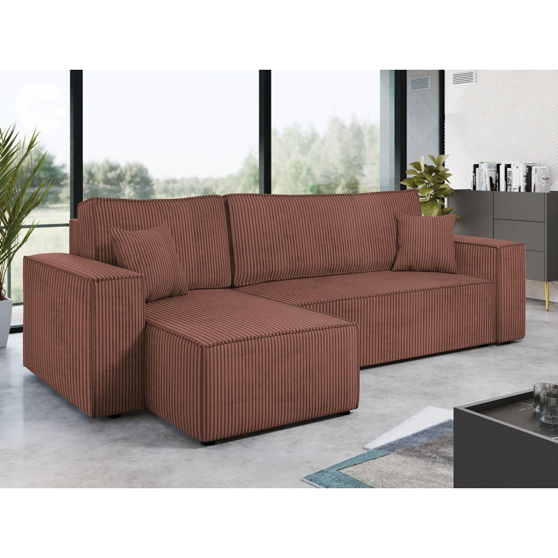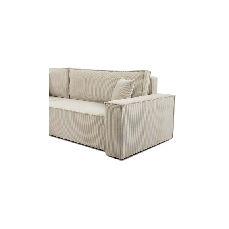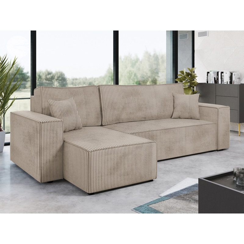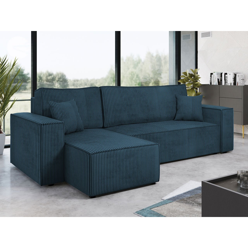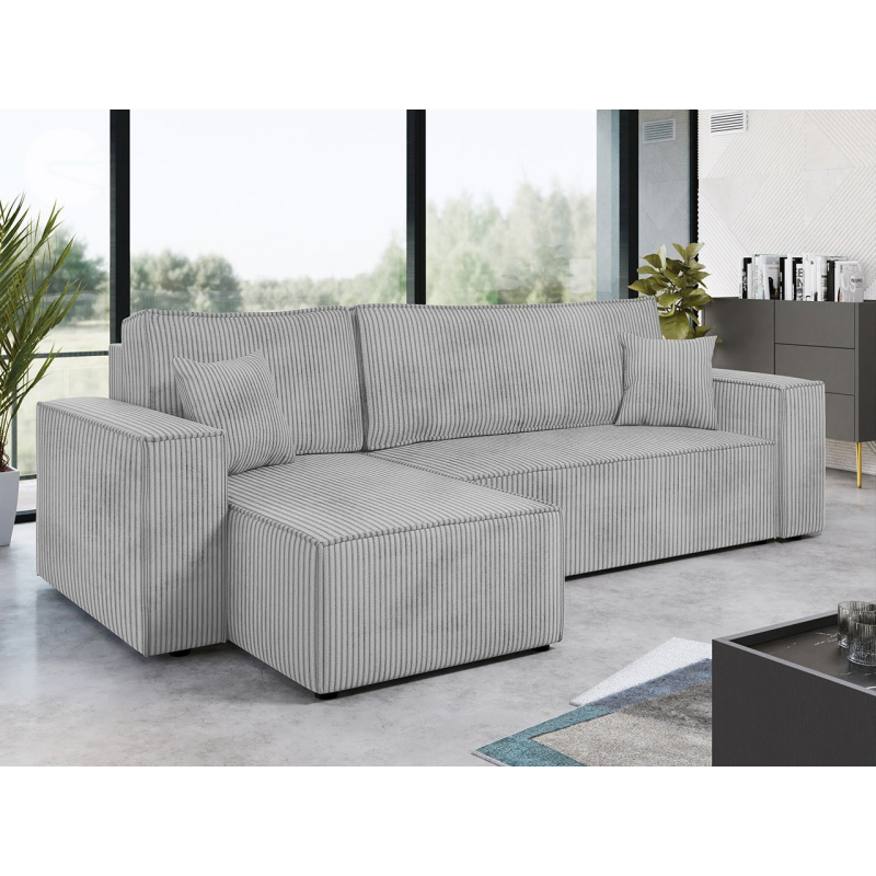 To však není všechno! Stačí jen chvilka, abyste tuto rohovou sedací soupravu proměnili na prostornou postel, která vám poskytne místo pro regenerační spánek. Takto si můžete užívat pohodlí nejen během každodenních chvil odpočinku, ale také během dlouhých a pohodových nocí. Tato varianta byla vybavena úložným prostorem na lůžkoviny, který vám umožní uložit přikrývky, polštáře a další potřebné věci. Kromě toho bylo opěradlo navrženo ve formě pohyblivých polštářů, které si můžete libovolně nastavit podle svých preferencí.