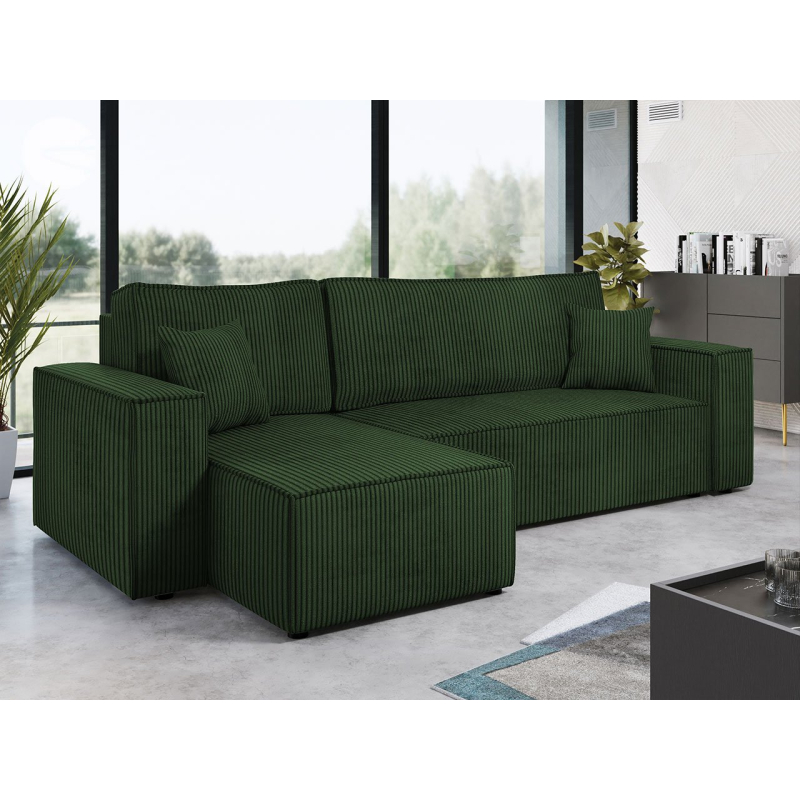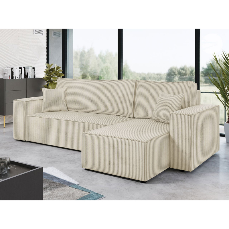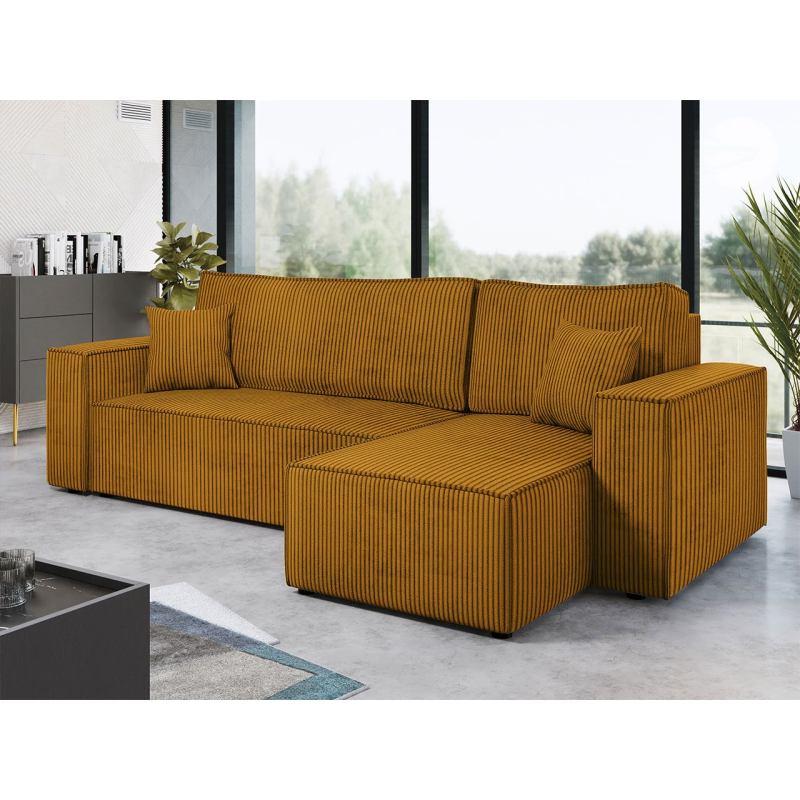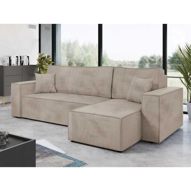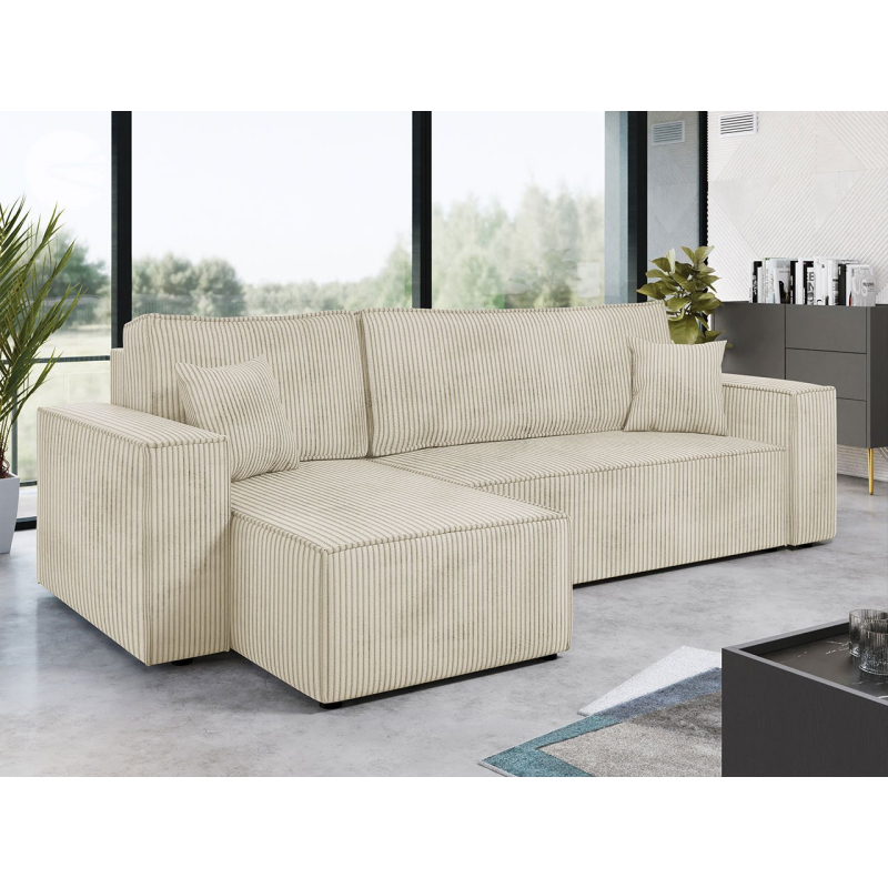 To však není všechno! Stačí jen chvilka, abyste tuto rohovou sedací soupravu proměnili na prostornou postel, která vám poskytne místo pro regenerační spánek. Takto si můžete užívat pohodlí nejen během každodenních chvil odpočinku, ale také během dlouhých a pohodových nocí. Tato varianta byla vybavena úložným prostorem na lůžkoviny, který vám umožní uložit přikrývky, polštáře a další potřebné věci. Kromě toho bylo opěradlo navrženo ve formě pohyblivých polštářů, které si můžete libovolně nastavit podle svých preferencí.