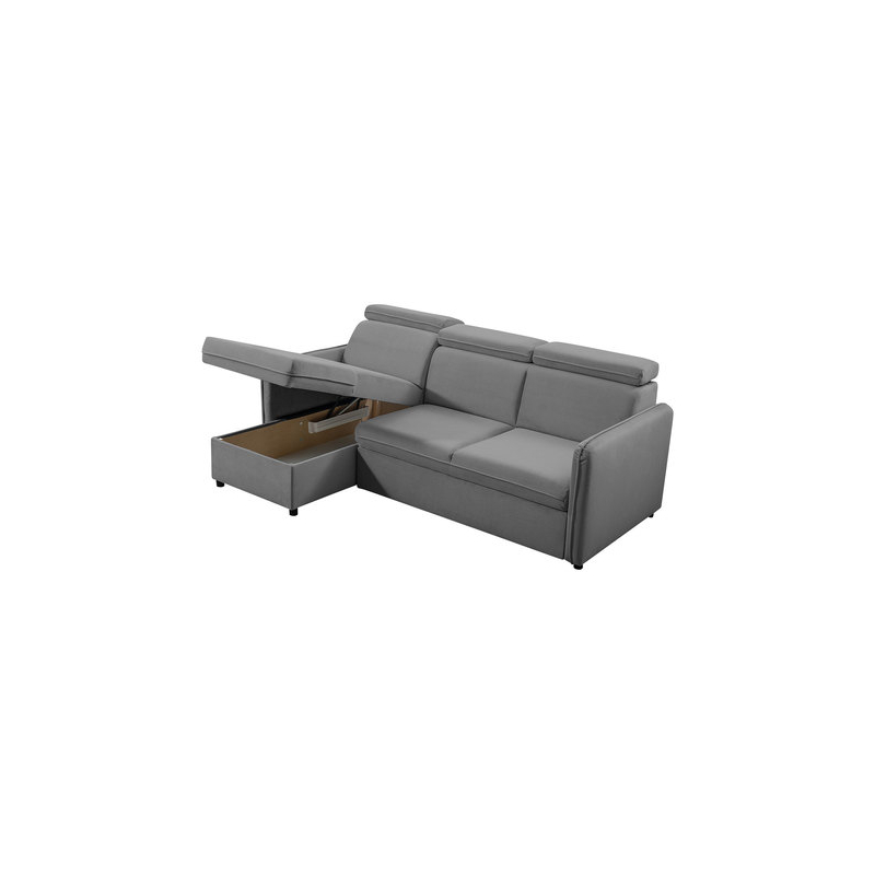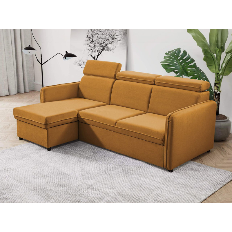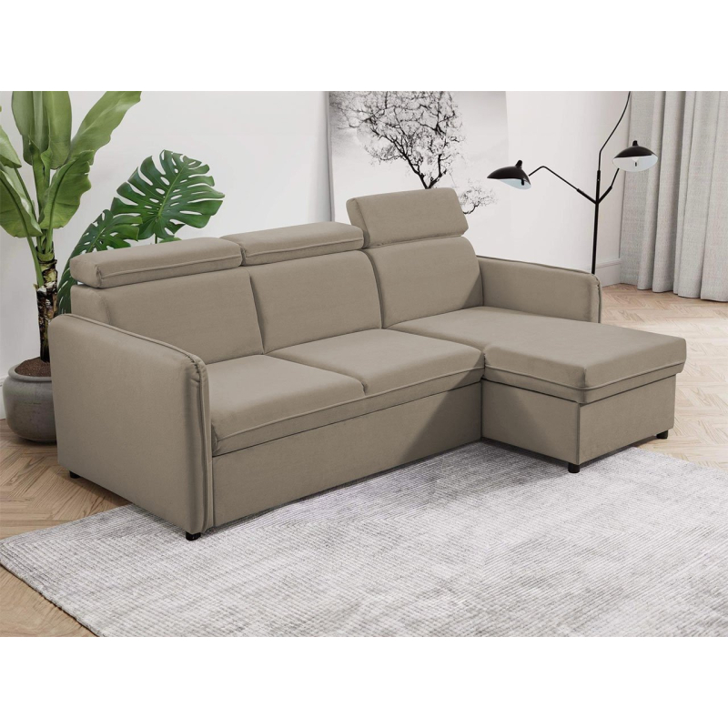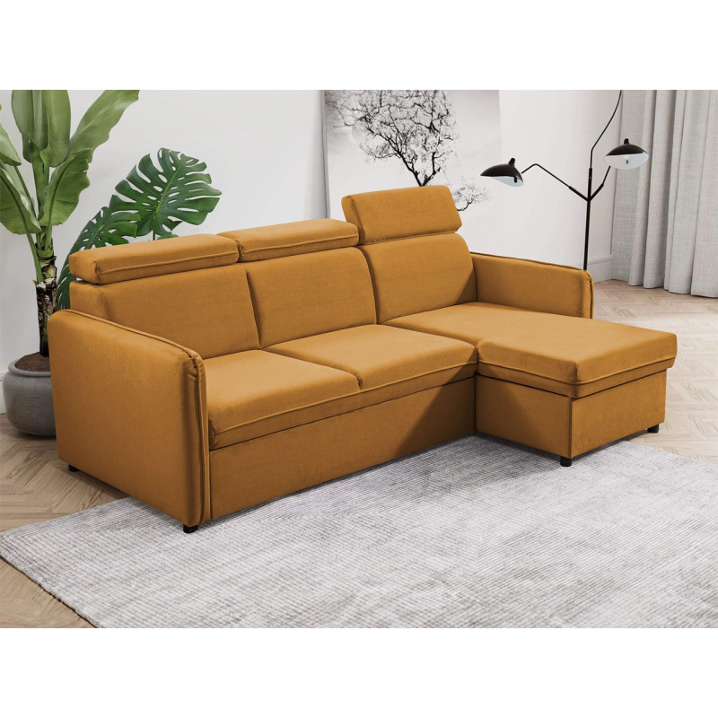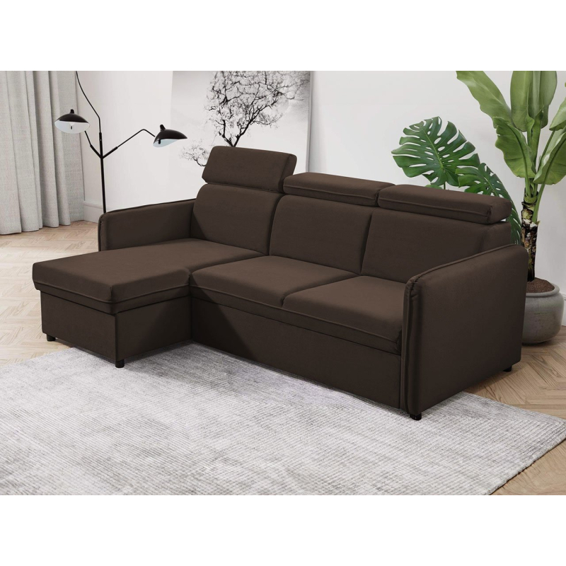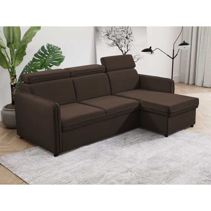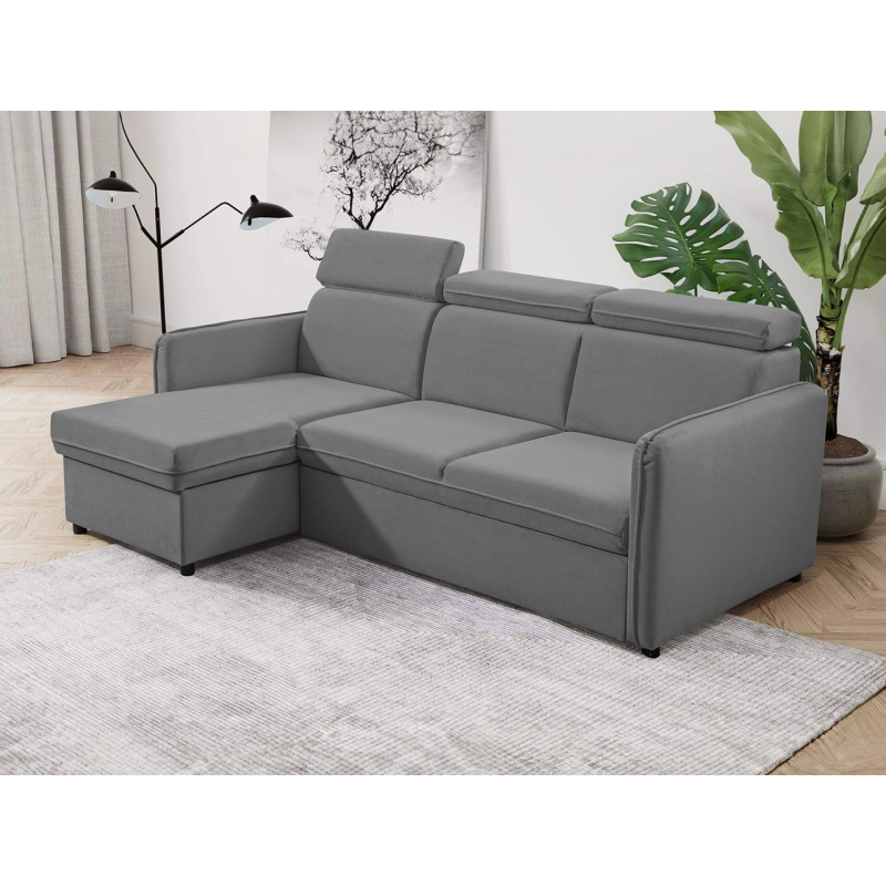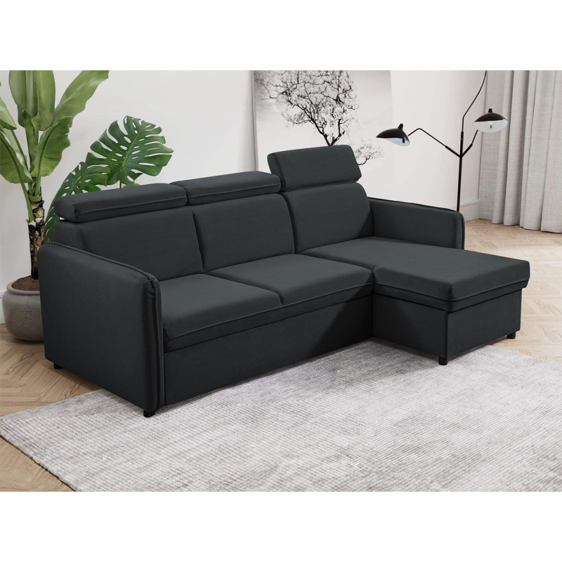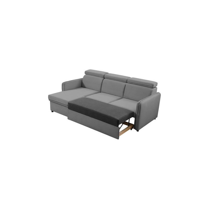 Rozkládací rohová pohovka Nivorra Mini vás zve ke strávení odpoledne odpočinkem v obývacím pokoji. Na dotek příjemná látka a měkký sedák zpříjemňují chvíle na ní strávené. Nastavitelné opěrky hlavy umožňují pohodlné umístění hlavy při sledování televize.