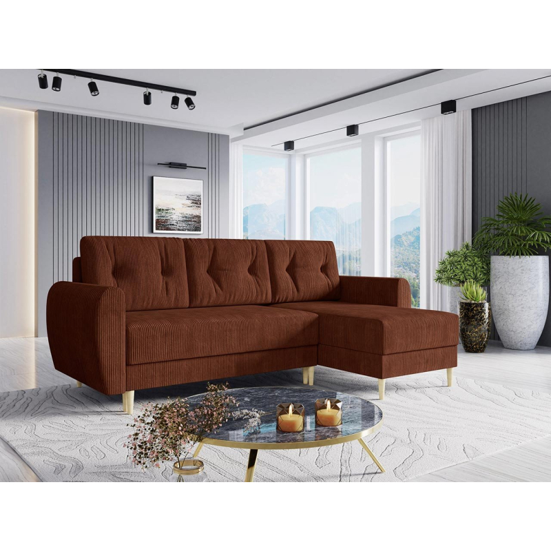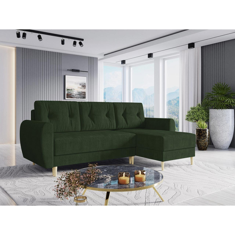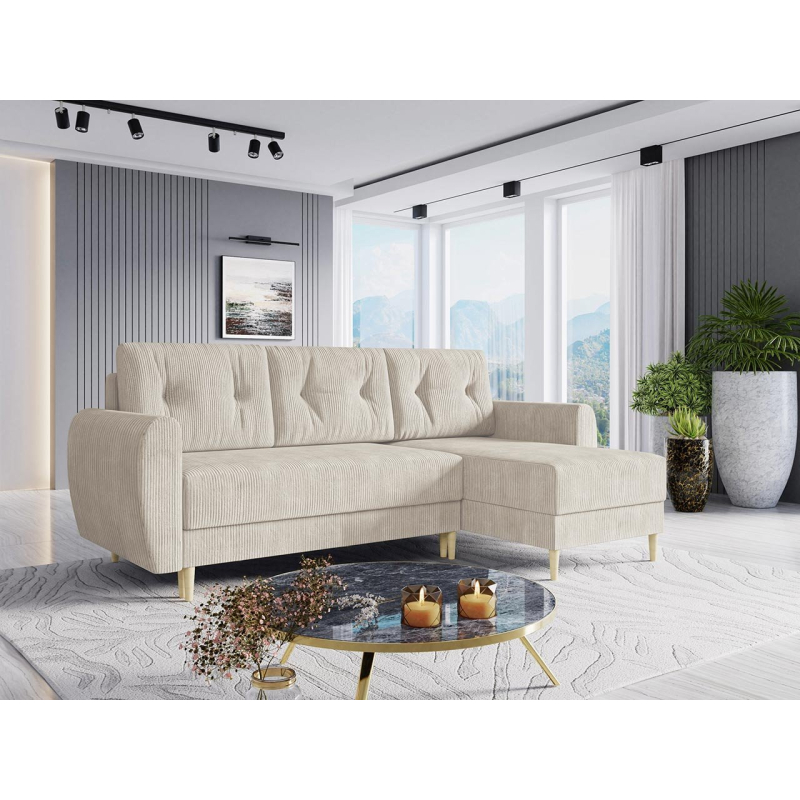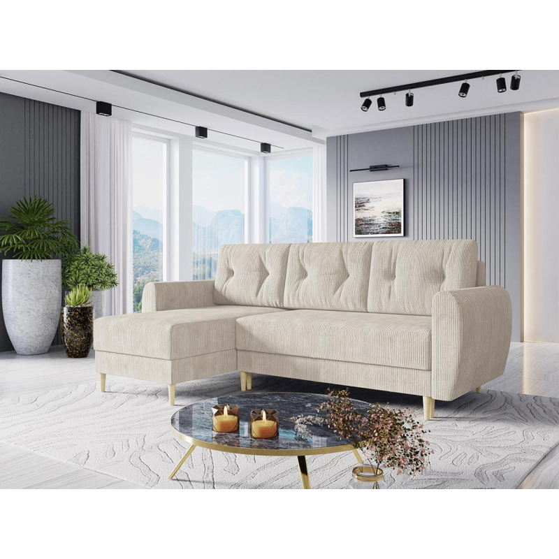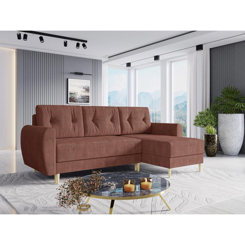 Kromě každodenního pohodlí má mnoho praktických výhod. Je jako stvořená pro hosty k návštěvě, protože jde o rozkládací rohovou pohovku. Dále má zásobník na ložní prádlo, vyšší nožičky a zádovou opěrku sestávající z polštářků na zip. Skvěle se hodí do každého prostředí, neboť se jedná o volně stojící variantu.