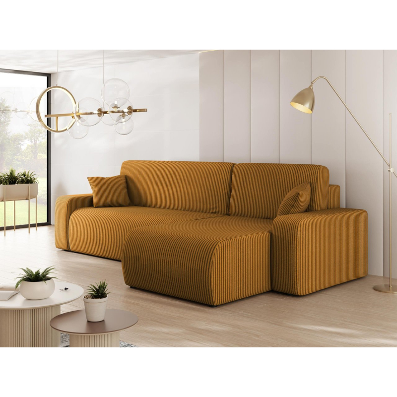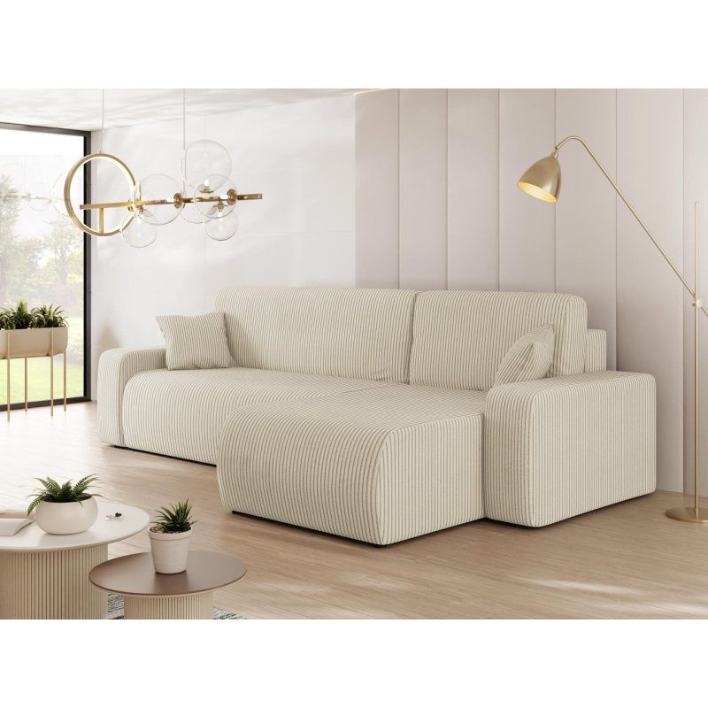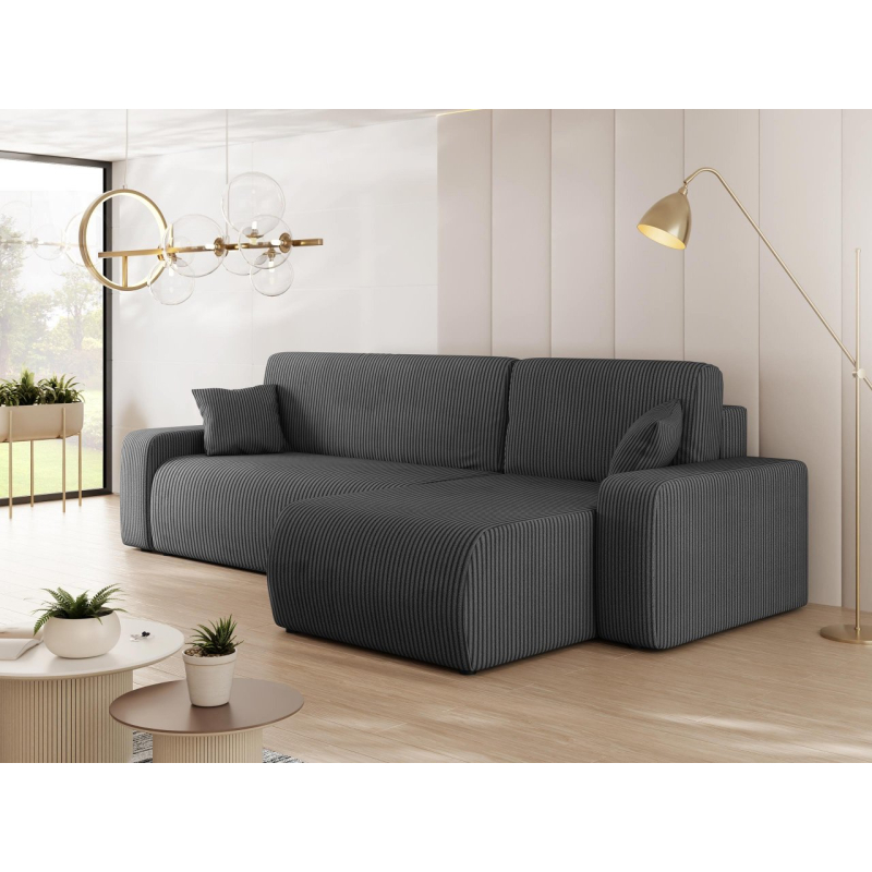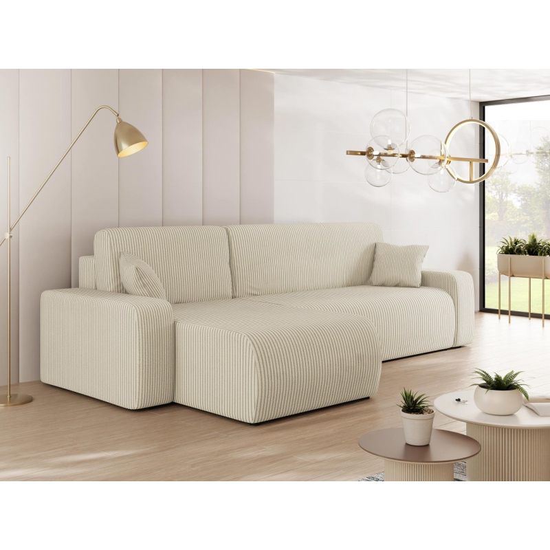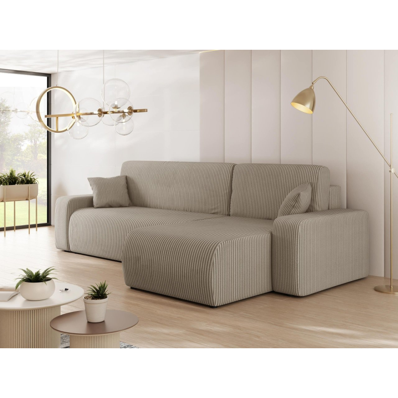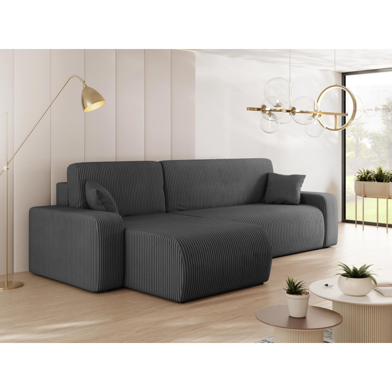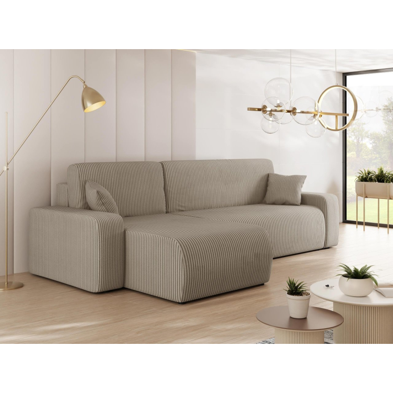 Atmosférická kombinace pohodlí a krásného vzhledu tak lze stručně charakterizovat rohovou sedačku Easton L S s funkcí spánku. Při pohledu na tento model vám okamžitě padne do oka podmanivá manšestrová látka. Jedná se o materiál s měkkou strukturou s charakteristickými drážkami, které zpříjemní každodenní používání.