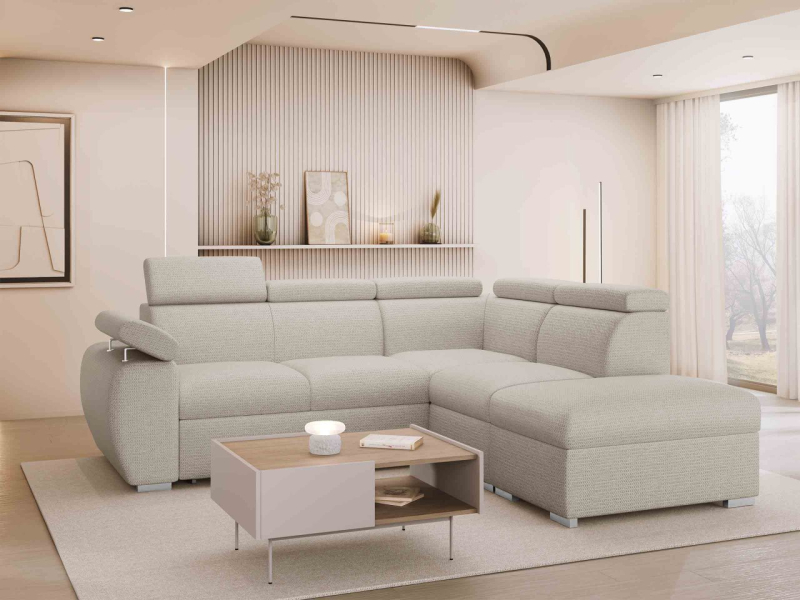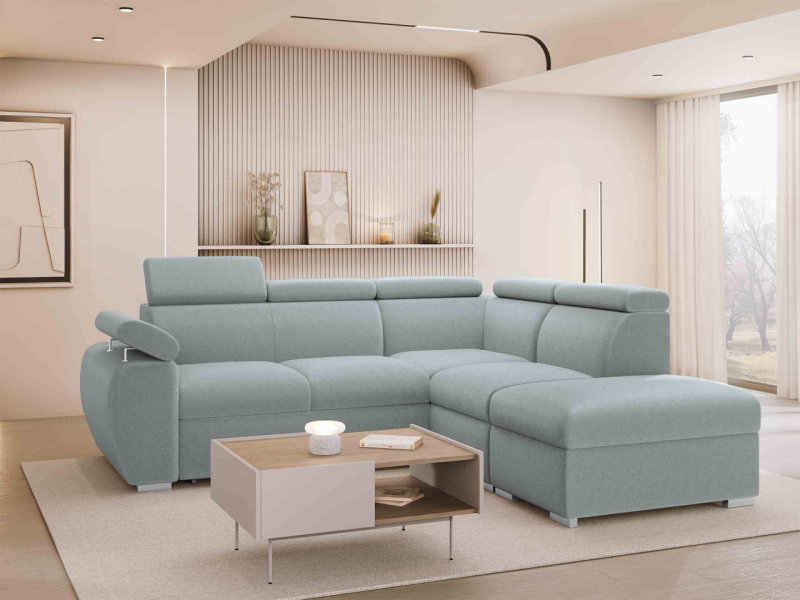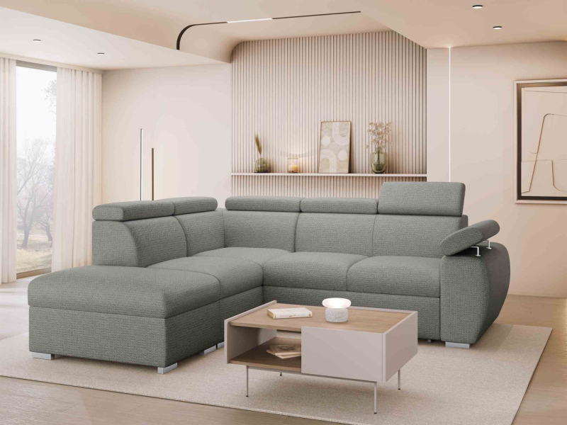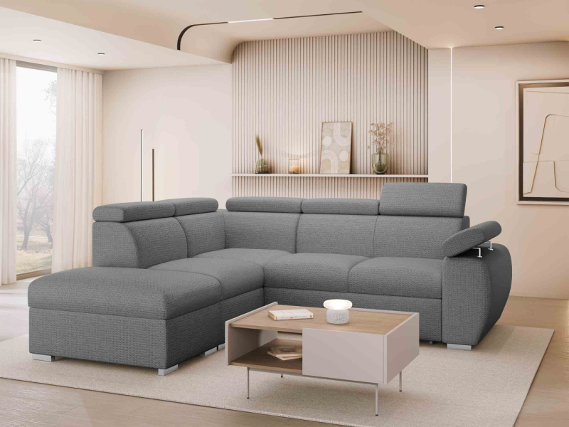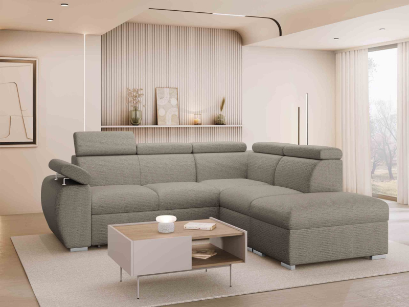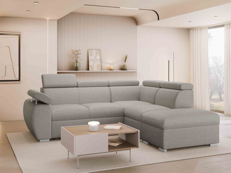 Tato pohodlná rohová rozkládací pohovka je praktickou volbou. Díky své funkci na spaní je také ideální do menších bytů, kde slouží jako postel v noci. Pro větší obývací pokoj je dobrým řešením pro další přenocování hostů. To ovšem není vše, co model Giza 2RR1P nabízí! Pohled dovnitř odhalí dva prostorné úložné prostory na ložní prádlo, přikrývky a polštáře. Jako by to nestačilo, tato varianta je vybavena nastavitelnými opěrkami hlavy pro větší pohodlí.