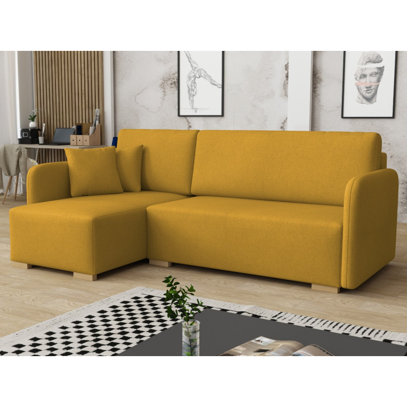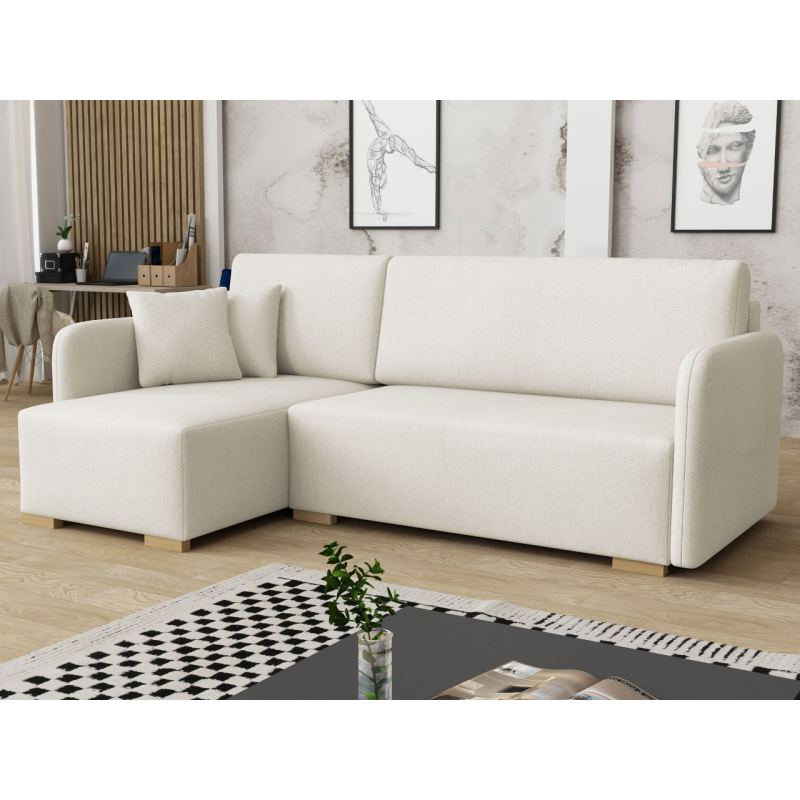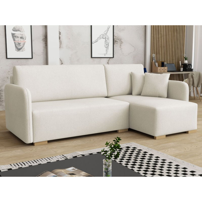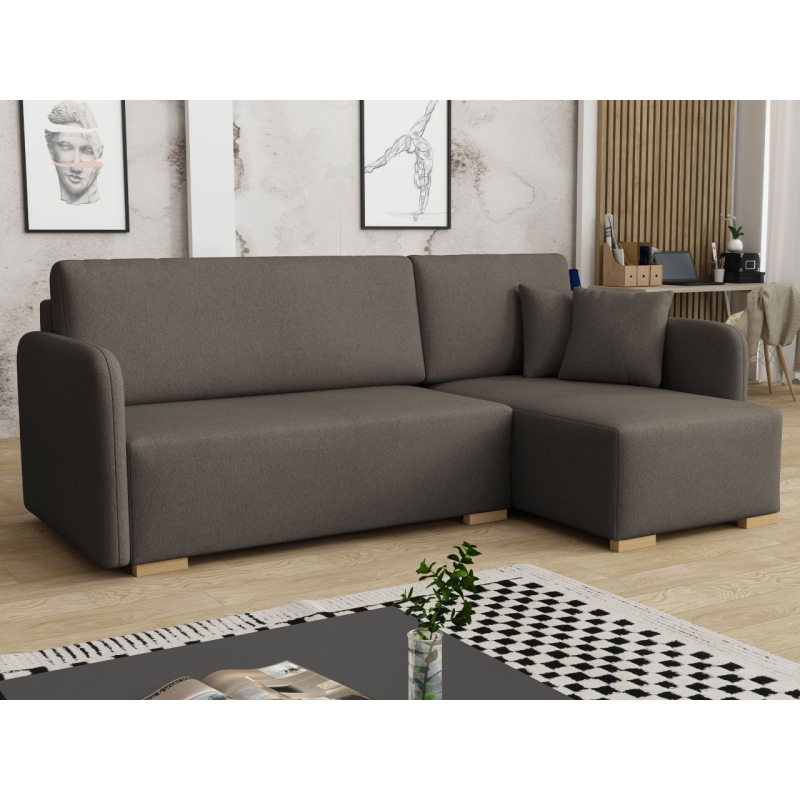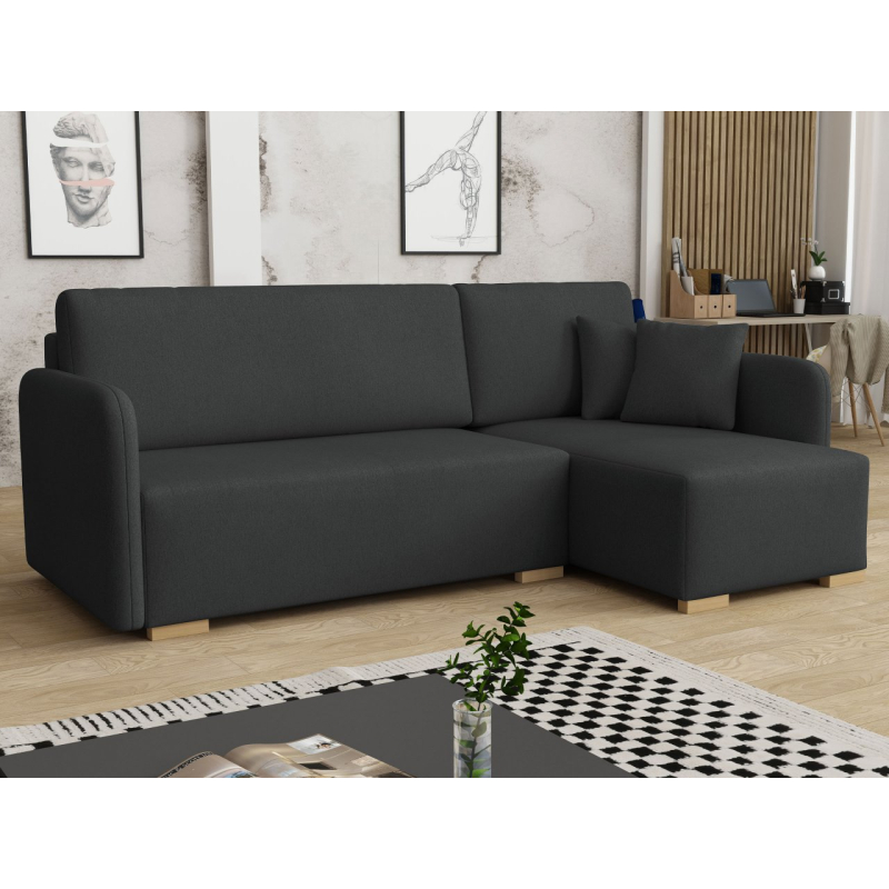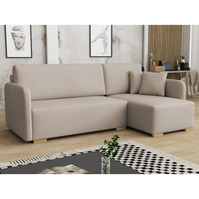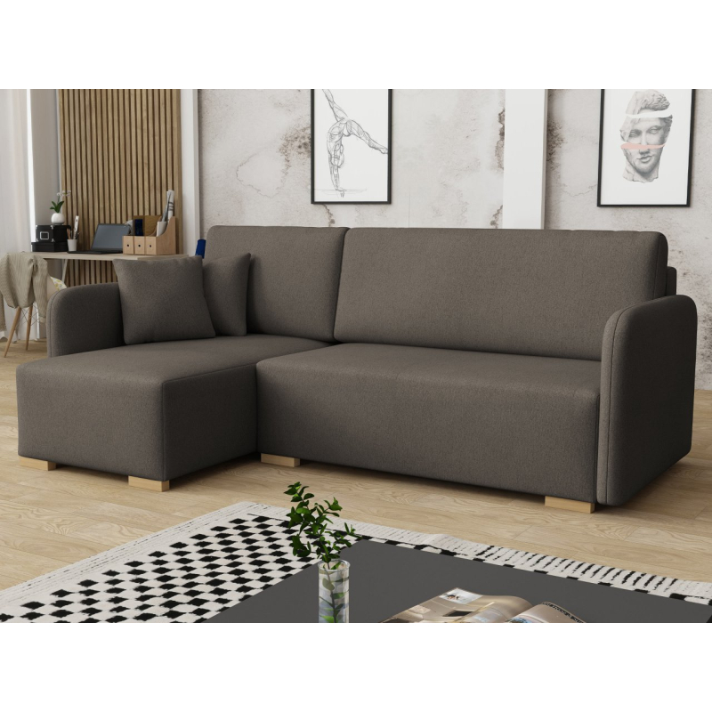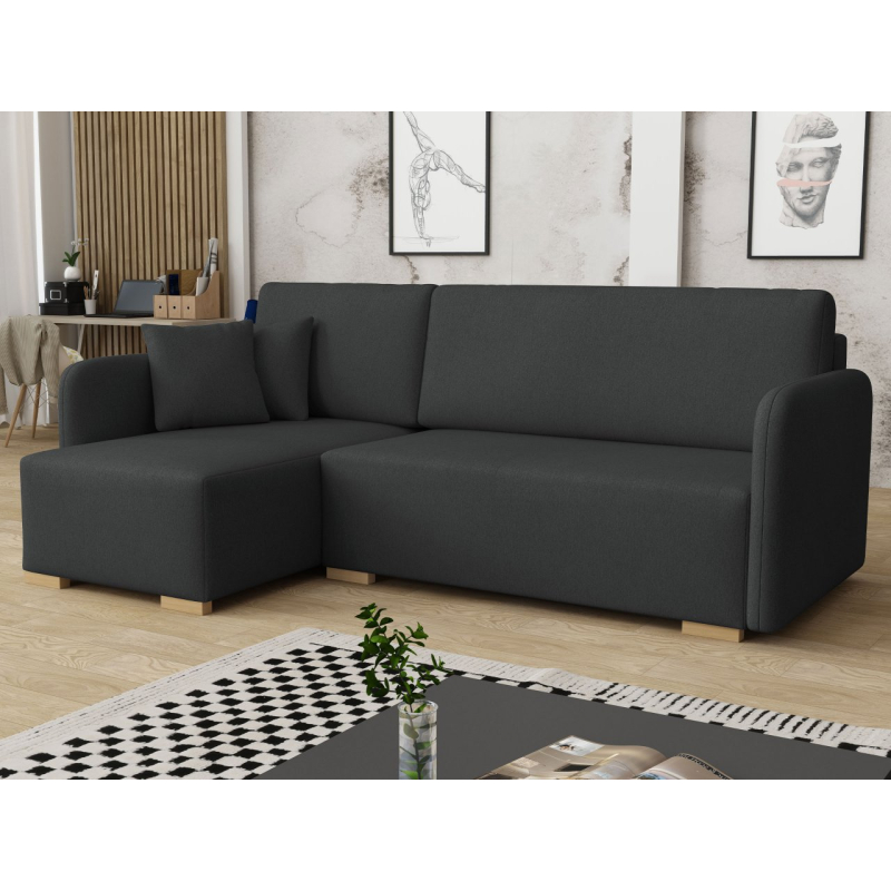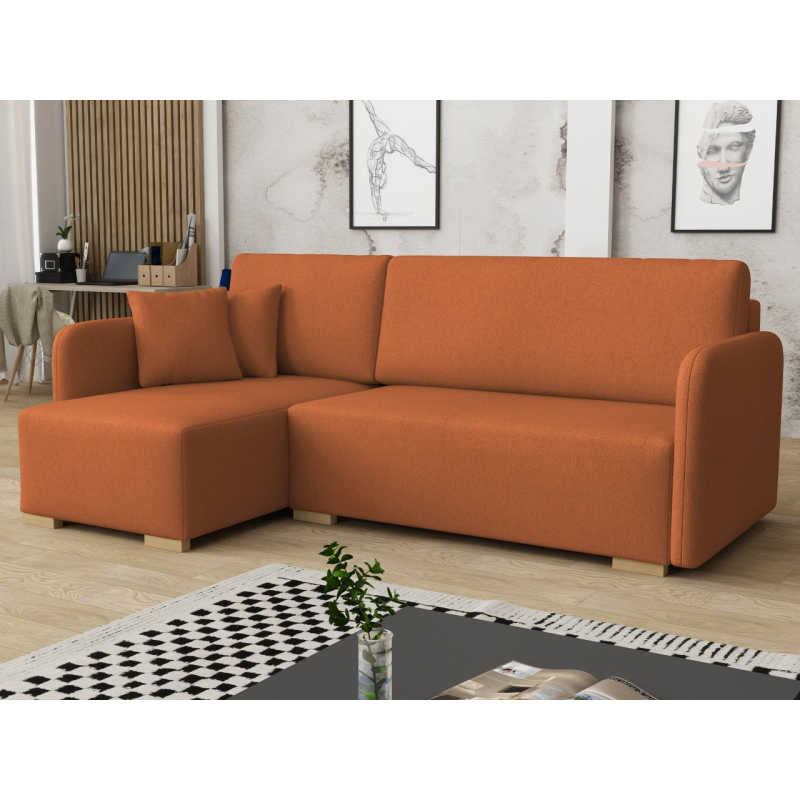 Tato pohodlná rohová pohovka má také funkci spaní, díky čemuž je ideální jako další místo k přenocování hostů. Má také úložný prostor, ideální pro uložení polštářů nebo přikrývky.