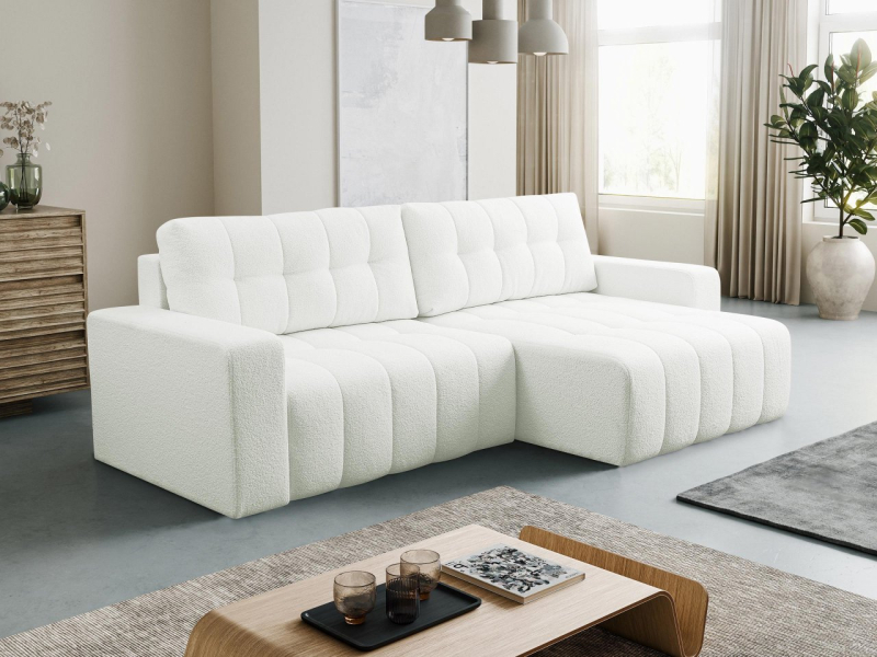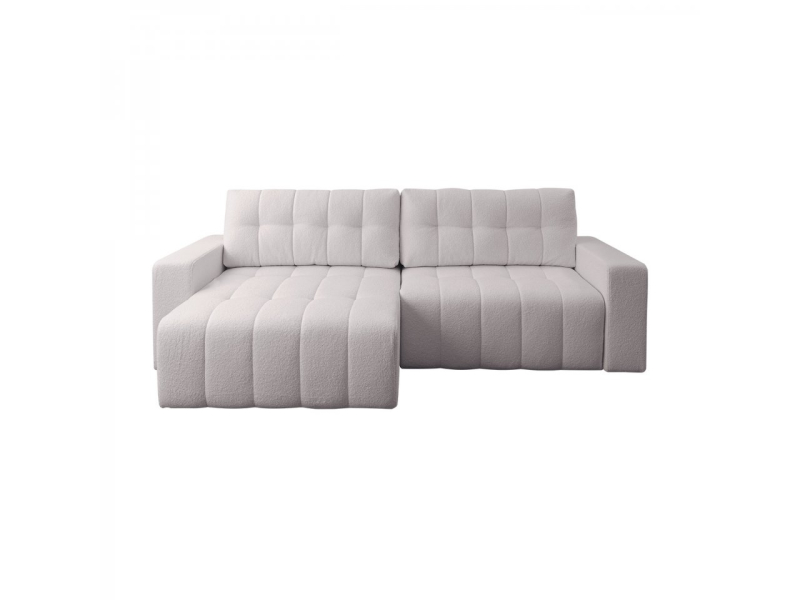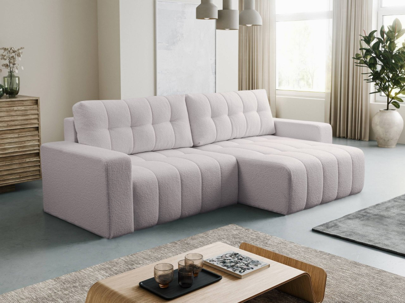 Minimalistický tvar této rohové pohovky se perfektně hodí do moderních prostor. Je ideální jak pro prostorné obývací pokoje, tak i pro intimnější interiéry. Klíčovou výhodou tohoto modelu je její rozkládací funkce, která nabízí prostornou spací plochu pro dvě osoby. Pohodlné sedák je ideální pro občasné spaní i pro každodenní relaxaci.
