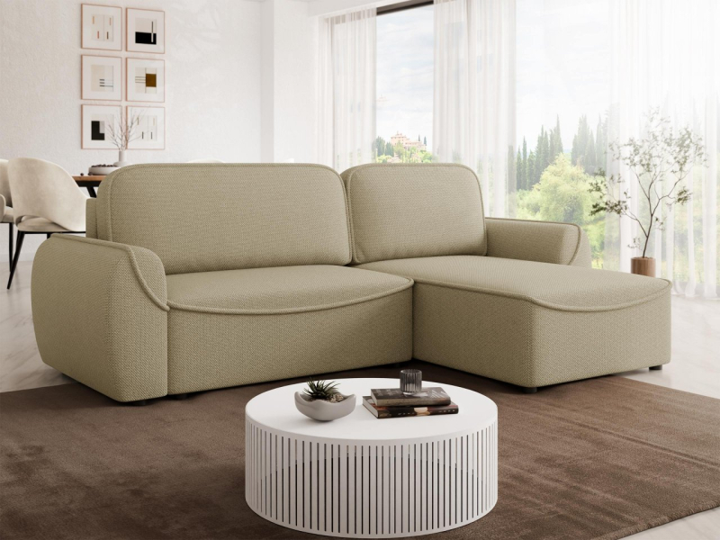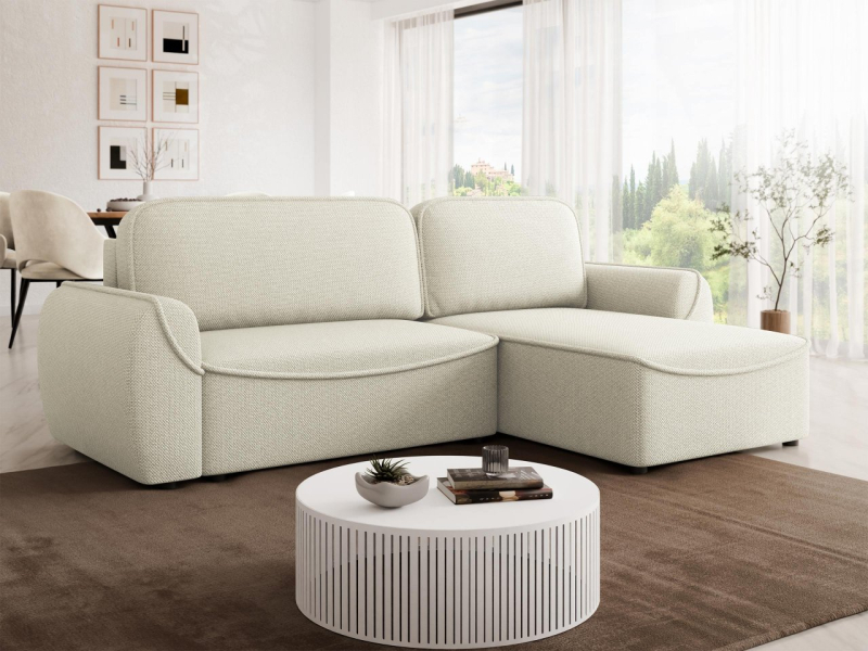 Rohová rozkládací sedačka Zareo upoutá pozornost svým jednoduchým, harmonickým tvarem a rafinovanými detaily. Měkké linie a ozdobné lemování jemně zvýrazňují tvar nábytku a dodávají mu moderní charakter.