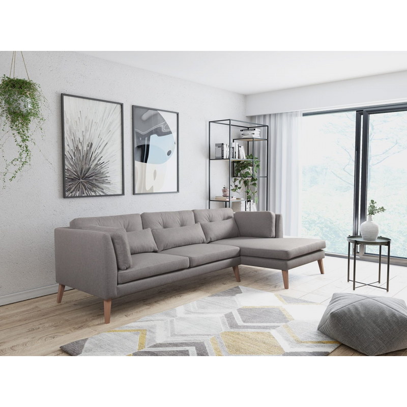 Nerozkládací rohová pohovka Fiknes I do obývacího pokoje je v retro stylu a preciznosti v exkluzivní edici. Rohová pohovka Fiknes působí elegantně a stylově díky ornamentům použitým na opěradle. Odkazují na károvaný prošívaný vzor. Druhým dekorativním prvkem jsou vysoké kulaté dřevěné nohy. Zejména díky nim získává rohová pohovka retro nádech. Dalším charakteristickým znakem pohovky Fiknes je dvojitý sedák, vyrobený z pohodlné čalounické pěny. Jsme přesvědčeni, že tento rohový model udělá váš obývací pokoj elegantním a stylovým. Přesvědčte se o tom sami!