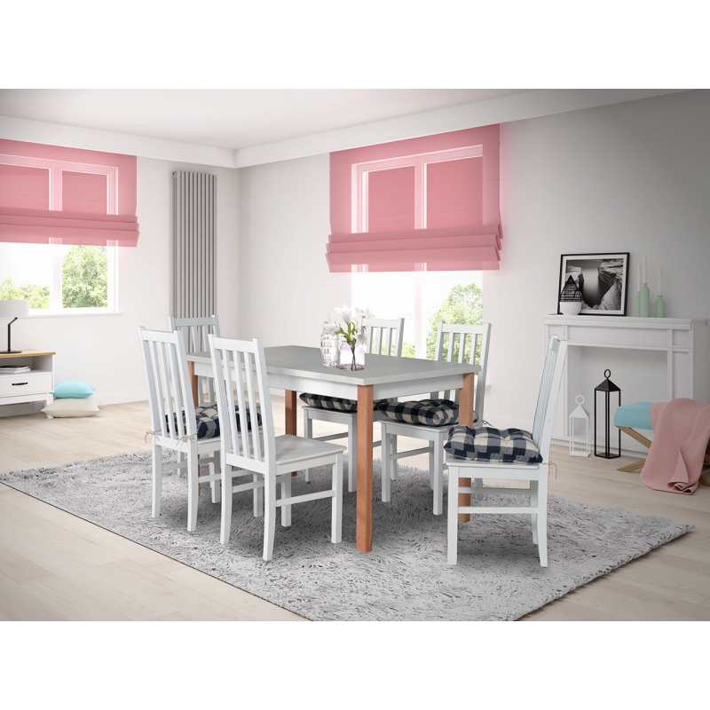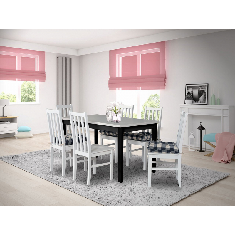 - na ilustračním obrázku stůl v barvách: vrchní část - bílá, nohy - přírodní buk, černá - barvu nohou je možné zvolit výše