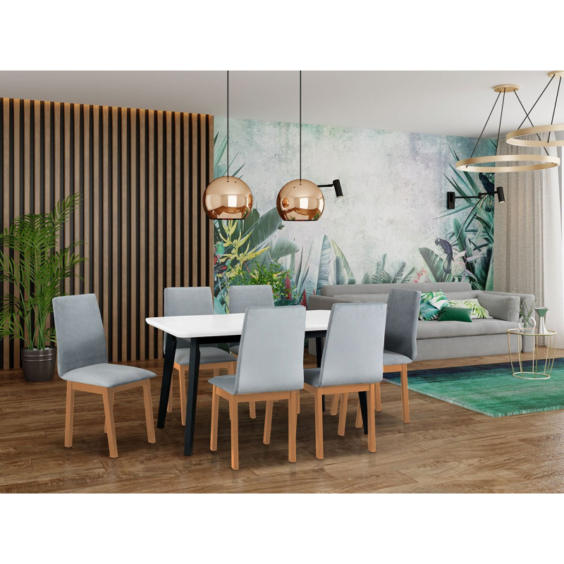 - na ilustračních obrázcích stůl v barvách: dřevo: vrchní část - bílá, přírodní dub, nohy - přírodní buk, černá - barvu nohou je možné zvolit výše