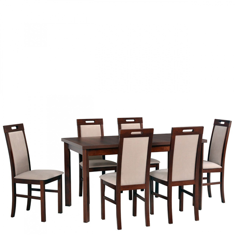 Stůl AL35 se 6 židlemi je dokonalým doplňkem moderní jídelny. Kuchyňská sestava se vyznačuje jednoduchou linií, která dokonale doplňuje moderní aranžmá. Stůl je vyroben z masivního bukového dřeva a laminátové desky. Okraje stolové desky jsou navíc vyztuženy ABS dýhou. Standardní délka stolu je 140 cm, který lze rozložit na 180 cm.