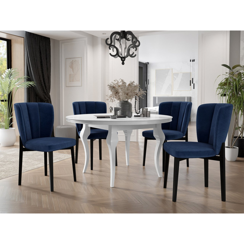 Kulatý set stolu Julia s čalouněnými židlemi ST106 je módním doplňkem pro domácí jídelny, restaurace a kanceláře. Optimálně velká deska stolu poskytuje pohodlné místo pro každodenní stolování, slavnostní obědy i večeře s přáteli. Stylový vzhled nábytku podtrhují nohy a originální povrchová úprava desky stolu.