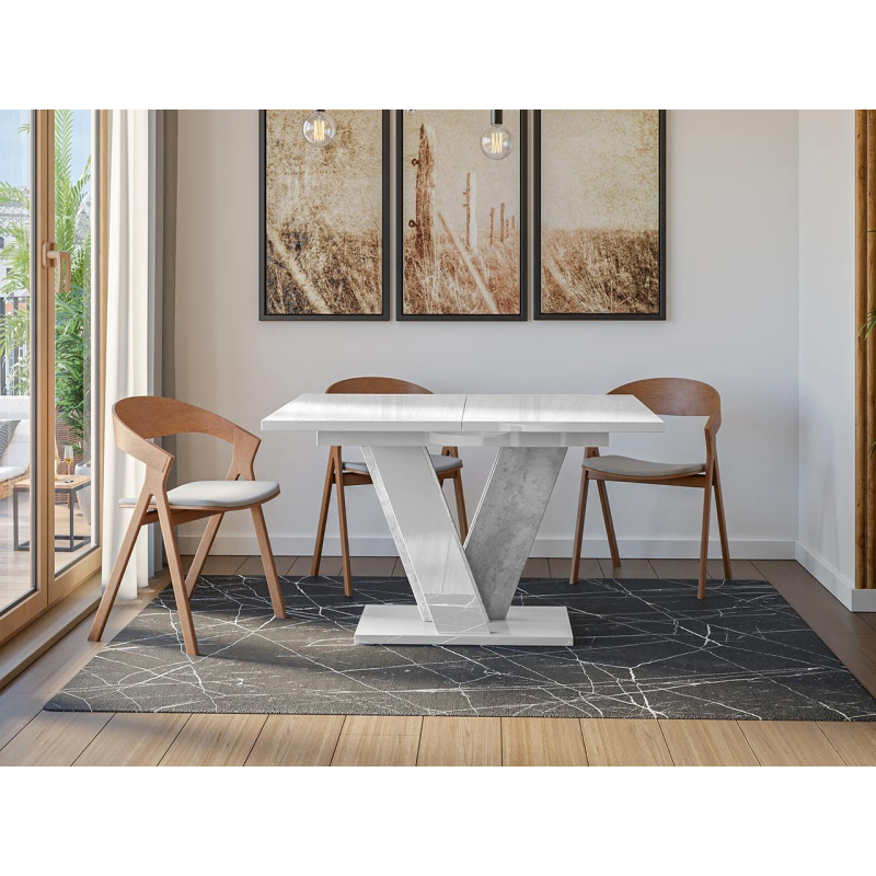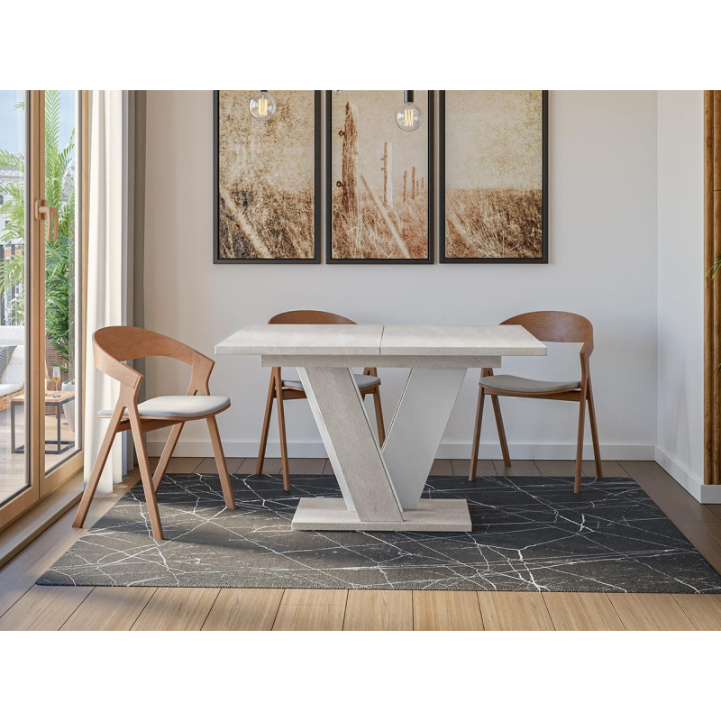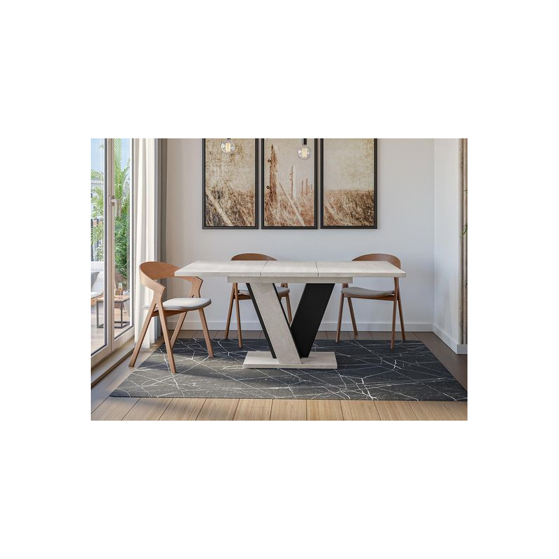 Hledáte moderní stůl do obývacího pokoje nebo jídelny? Věnujte pozornost modelu Tearyl. Jeho základna byla navržena ve tvaru písmene „V“, což zdůrazňuje modernistický design nábytku. Minimalistická podoba jídelního stolu odpovídá současným trendům aranžování.