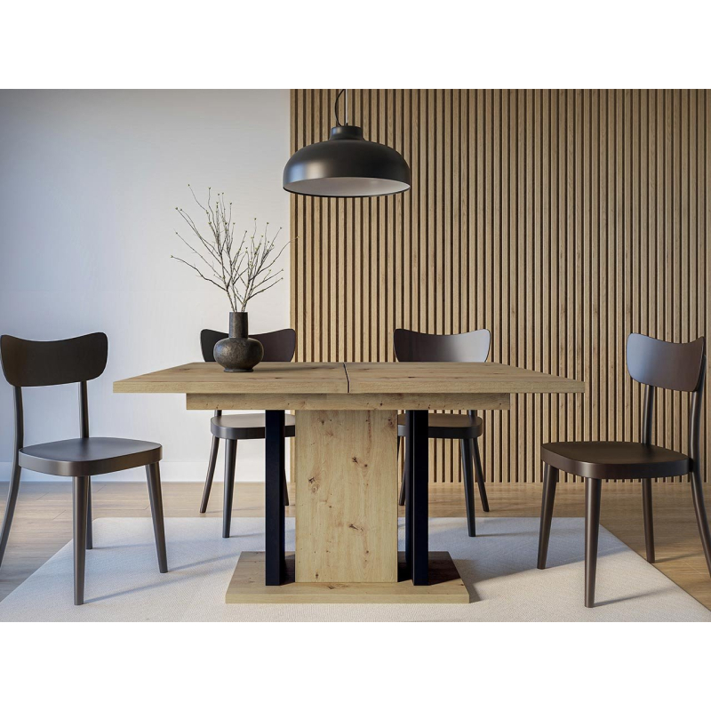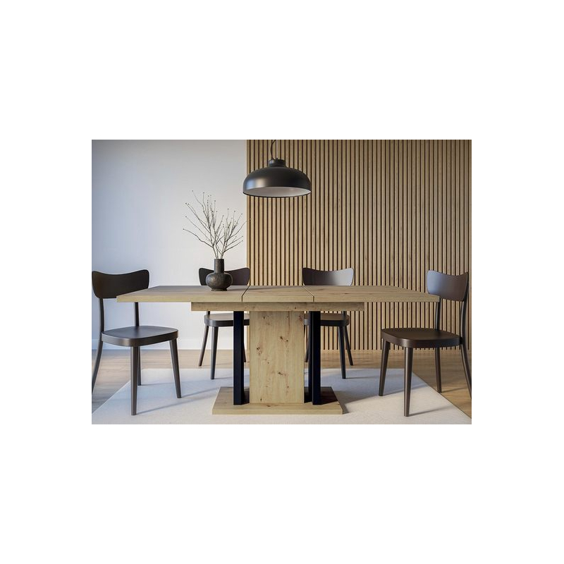 Rozkládací jídelní stůl Giminto poskytne dokonalé zázemí pro setkání s blízkými. Rodinná večeře, káva s přáteli nebo slavnostní večeře jsou ideální příležitostí k otestování jeho schopností. V případě potřeby můžete jeho délku zvětšit až na 160 cm.