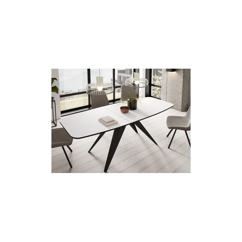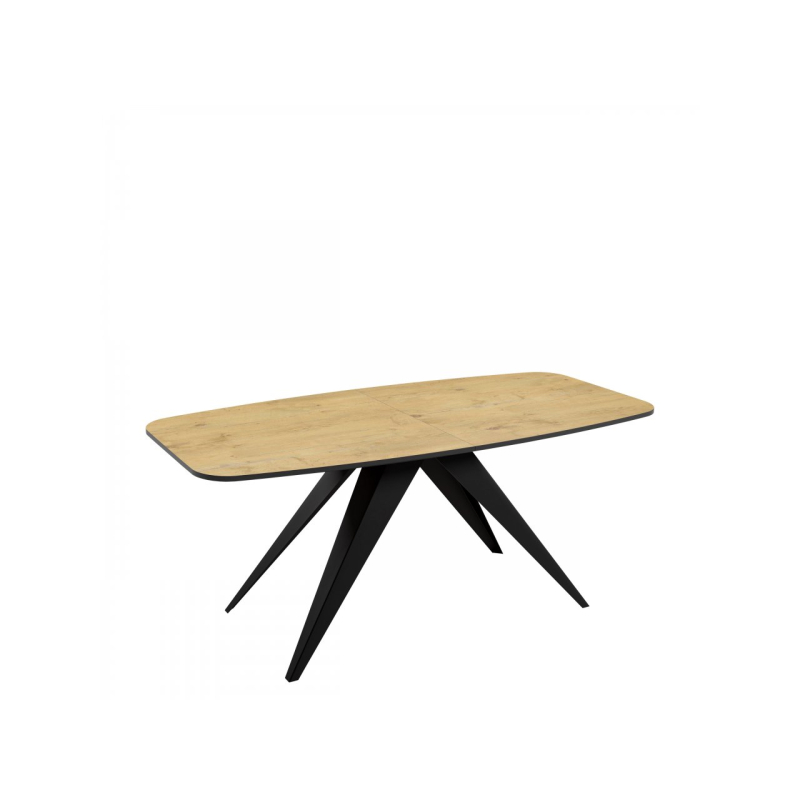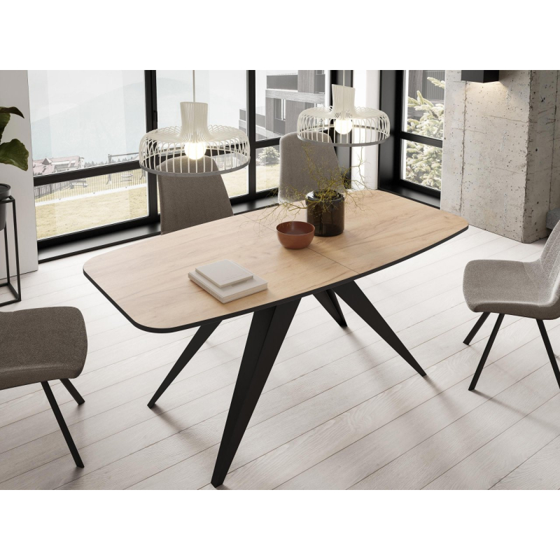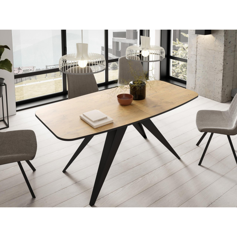 Rozkládací mechanismus založený na ložiskovém vedení umožňuje rychle a snadno zvětšit povrch pracovní desky. Roztahovací jídelní stůl je vybaven také ozdobnýma nohama z oceli, které zajišťují moderní vzhled nábytku a zajímavou aranžérskou dekoraci.